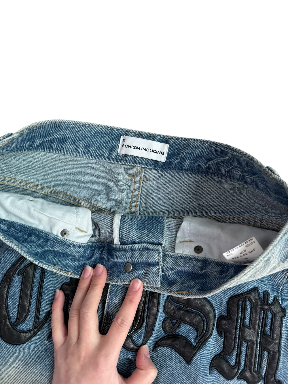 Schism inducing denim pants