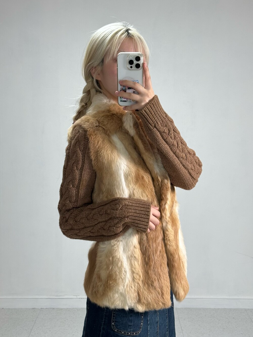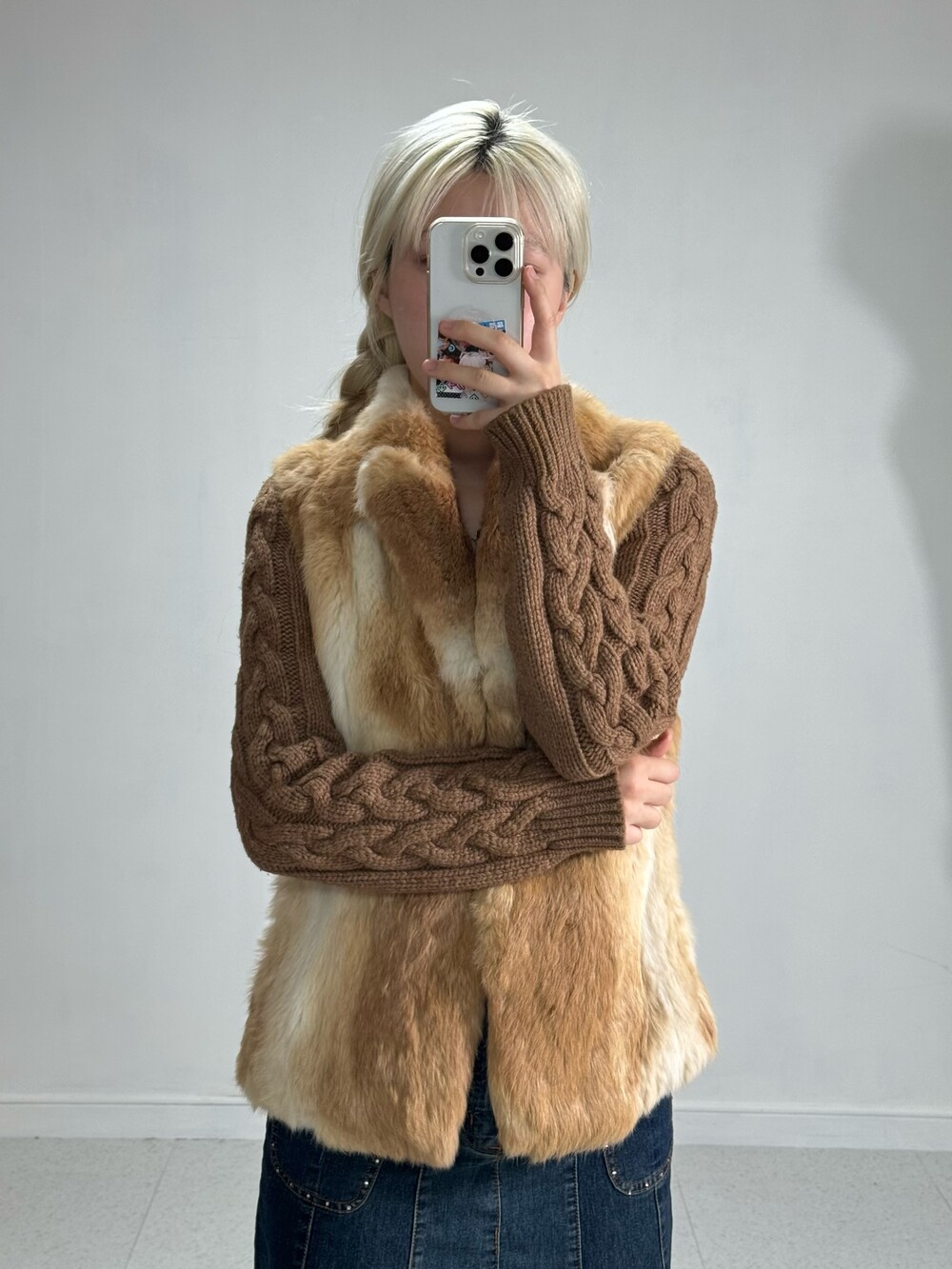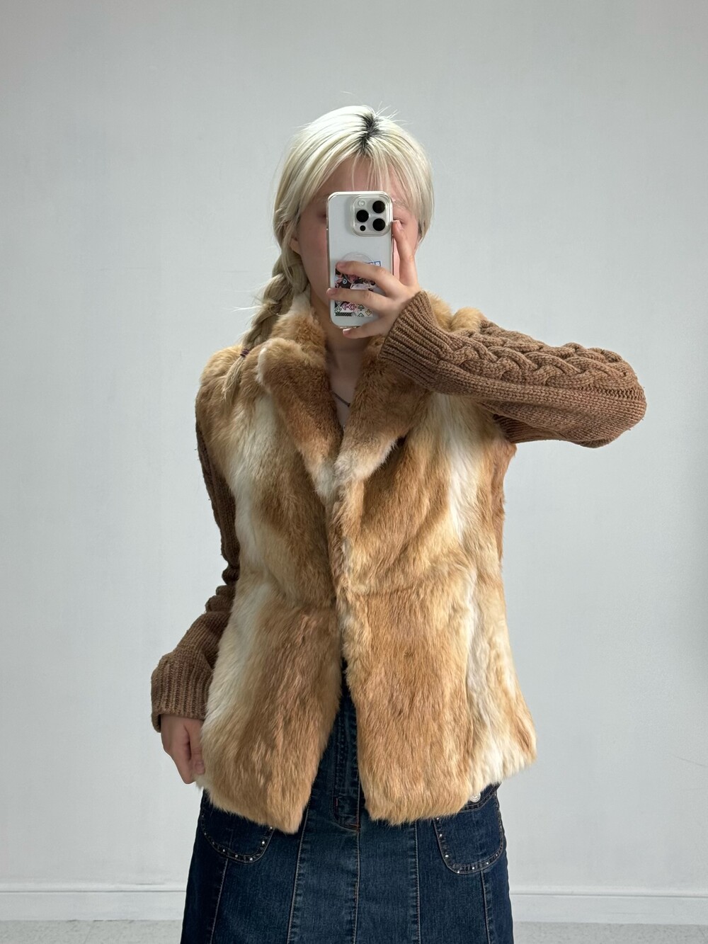 •토끼털+니트원단 조합은 사랑이죠.. 과하지도 않고 적당한 에스닉한 분위기 내기 좋은 아우터에요 ㅎㅎ 상체를 슬림하게 잡아주는 아주 사랑스러운 제품이에요 🖤