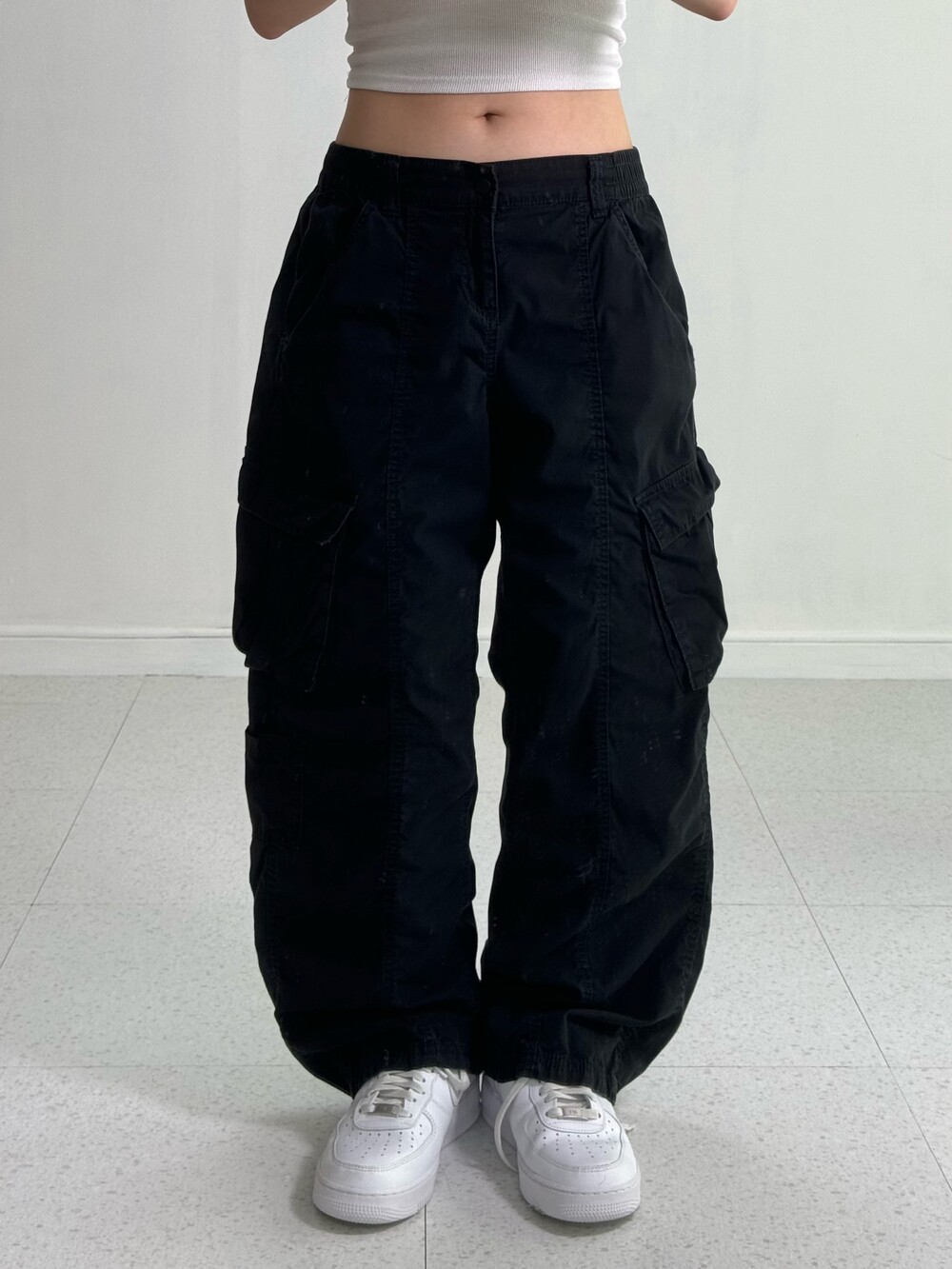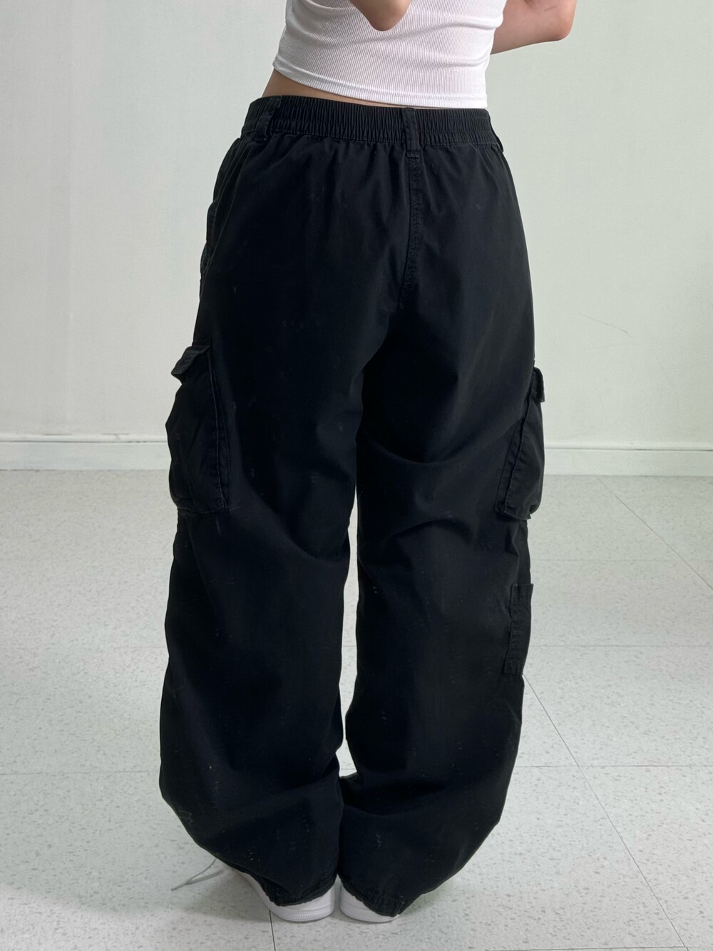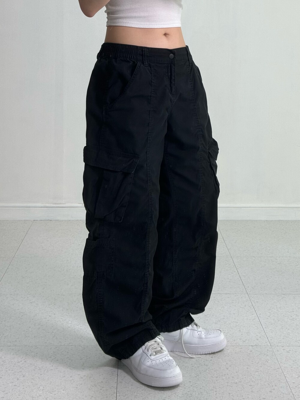 •와이드루즈핏의 블랙 카고팬츠 입니다! 팬츠 자체 디자인이 독특한 편이라 다른 일반 블랙카고랑 느낌이 좀 달라요 ㅎㅎ 올블랙이여도 포인트로 입어준느낌! 심심한 느낌도 없구 핏감도 적당한 루즈핏이라는점-