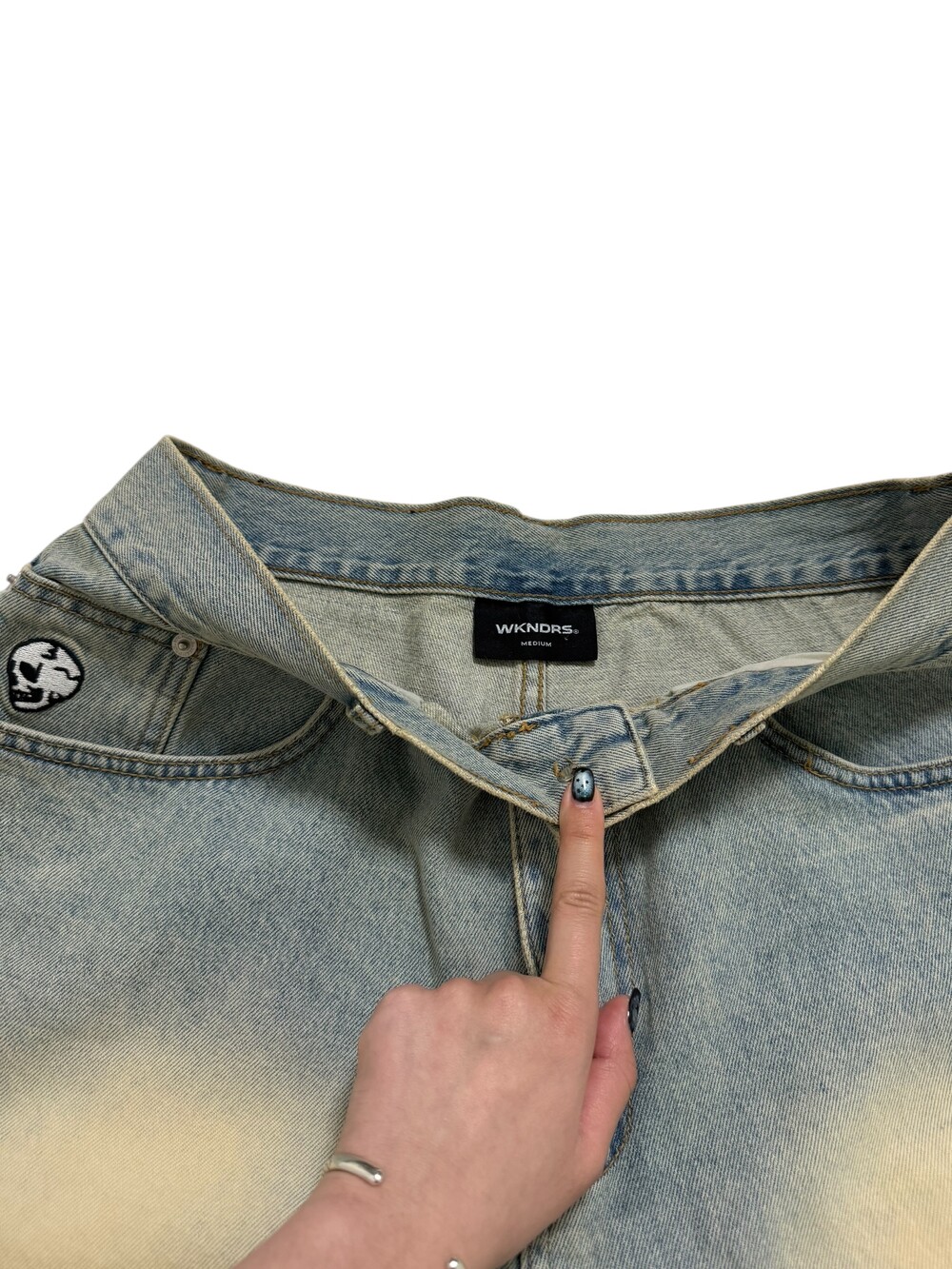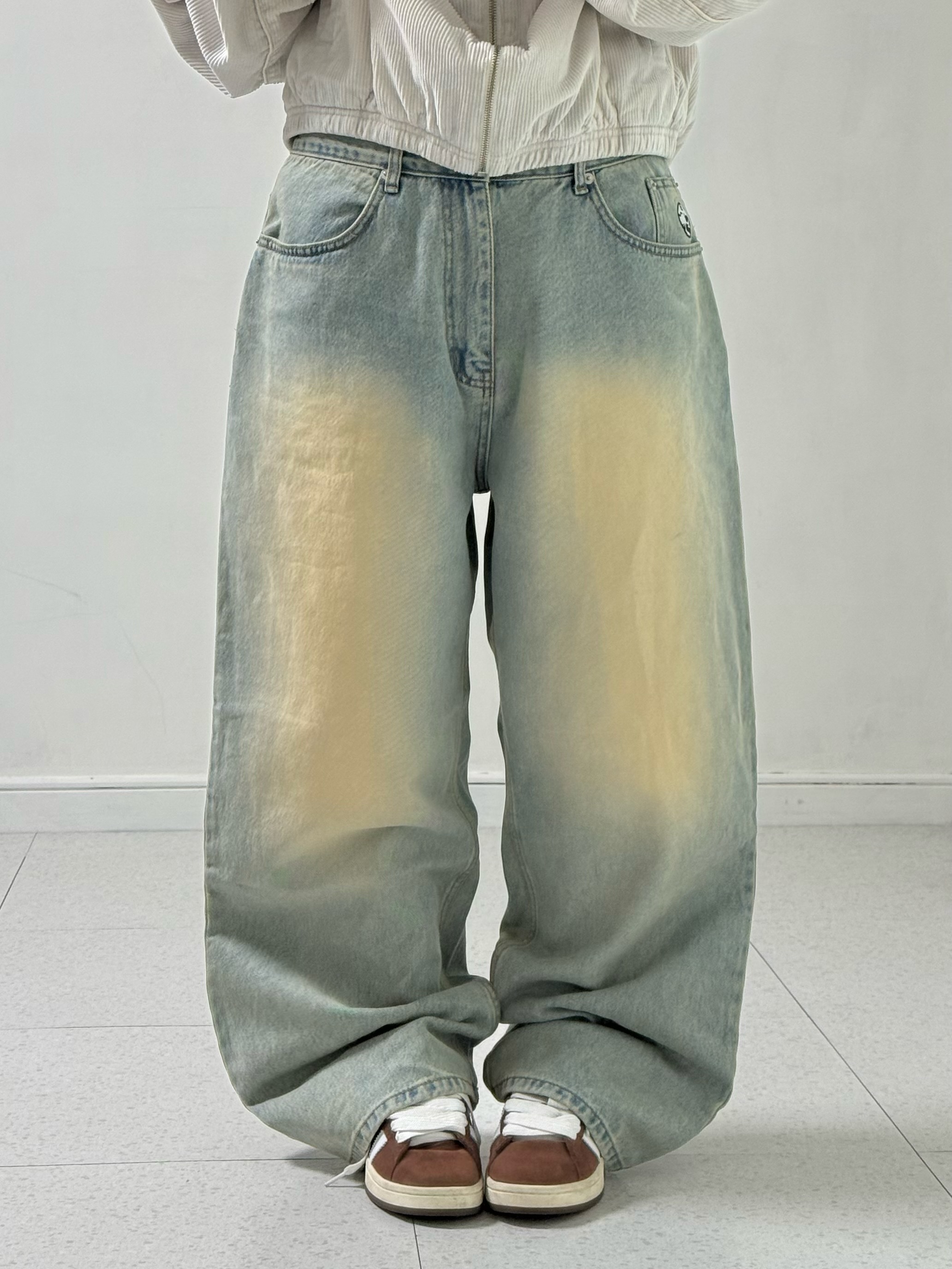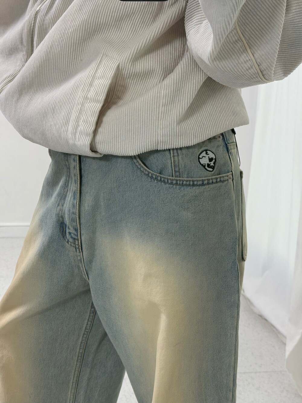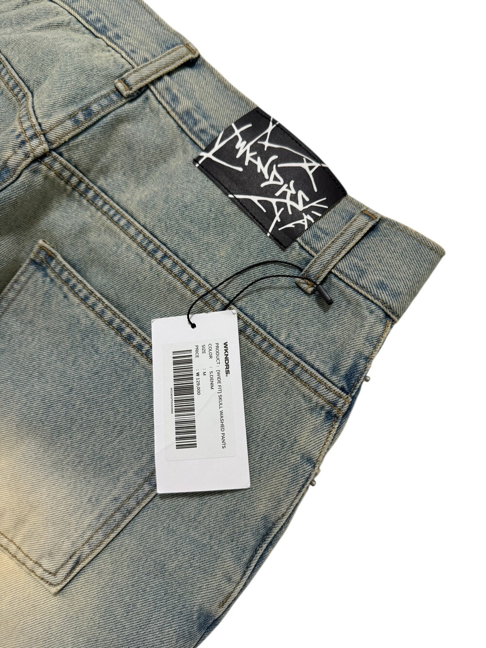 •위캔더스 워싱 데님팬츠 입니다. 스컬 미니 자수가 뽀인트에요! 후리추리 무드로 입어주시면 넘 좋을듯해요👍🏻