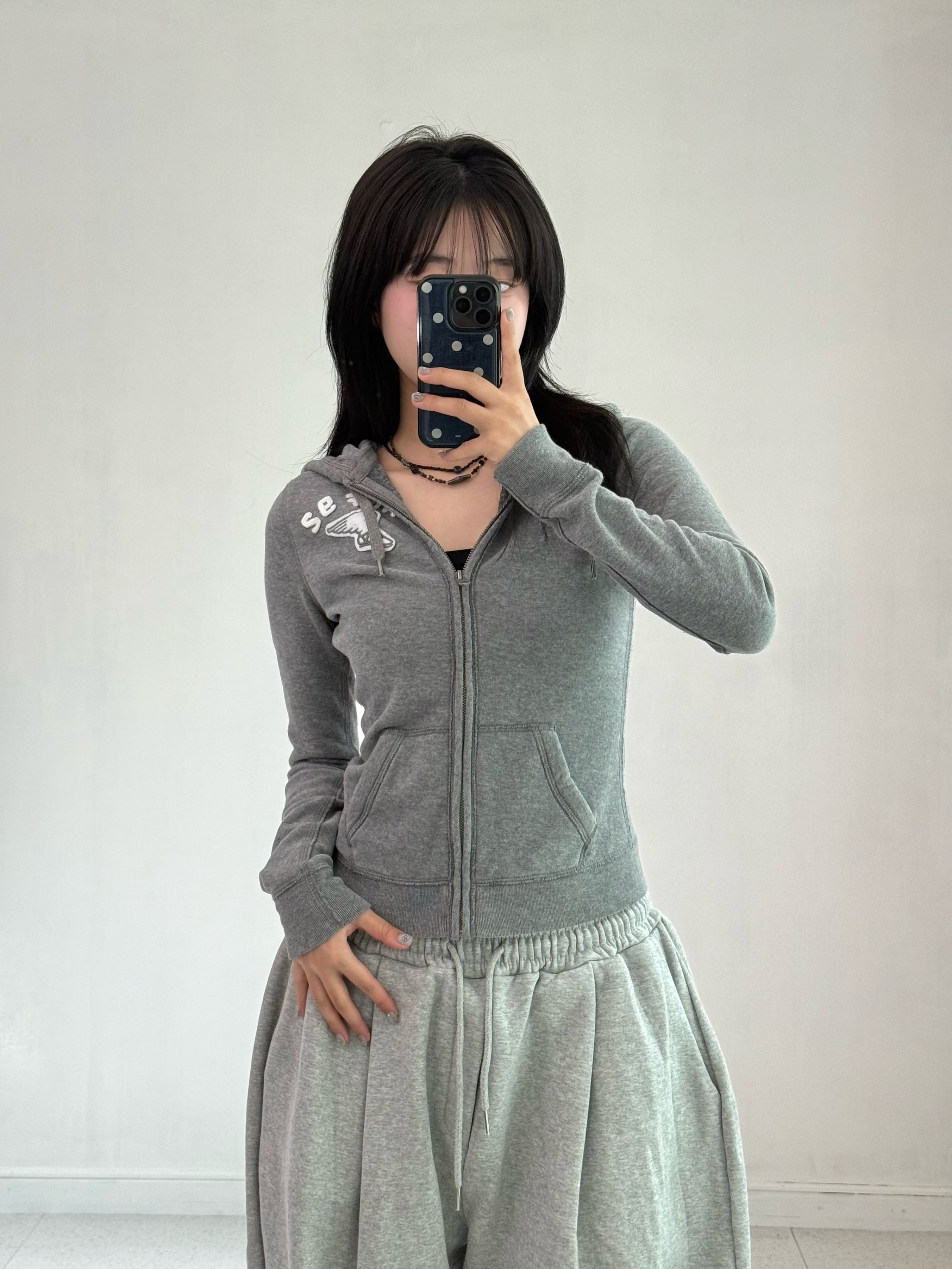 •아베 딱붙 후드집업 입니다!!! 상체를 싹 잡아주는 핏이 넘 맘에 들오