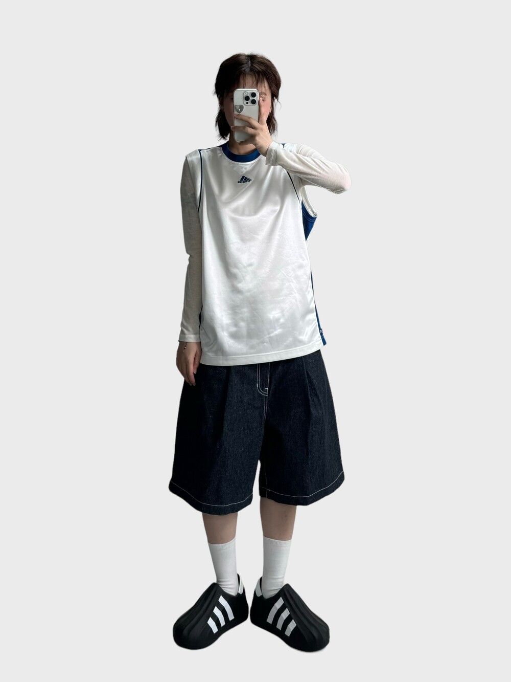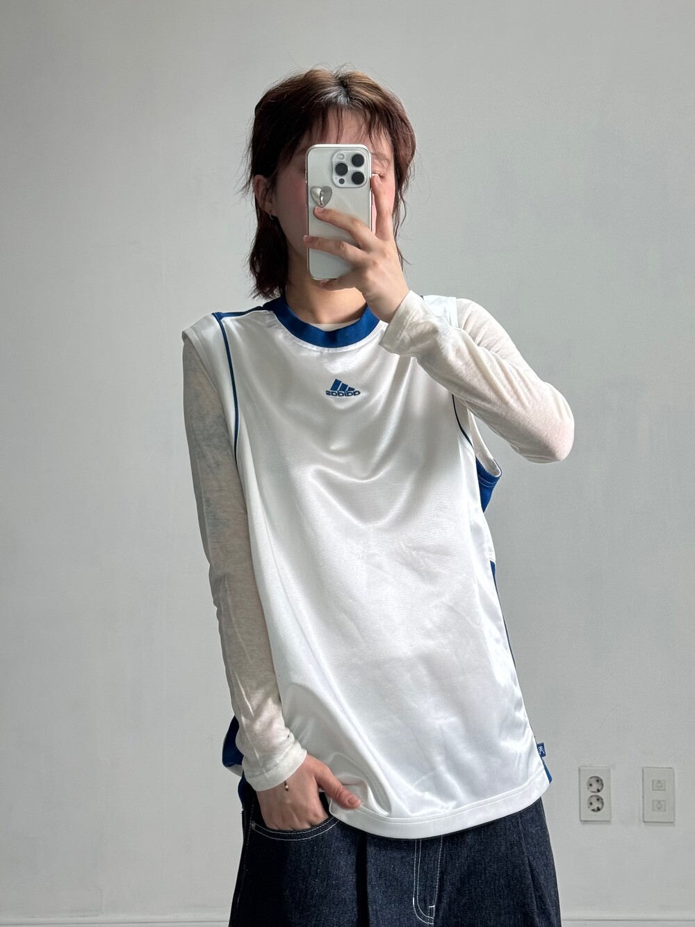 •화이트+블루 청량조합>,< 카반과의 조합도 좋고 데님팬츠랑 입어주셔도 좋은 색감이기에 강강추!
