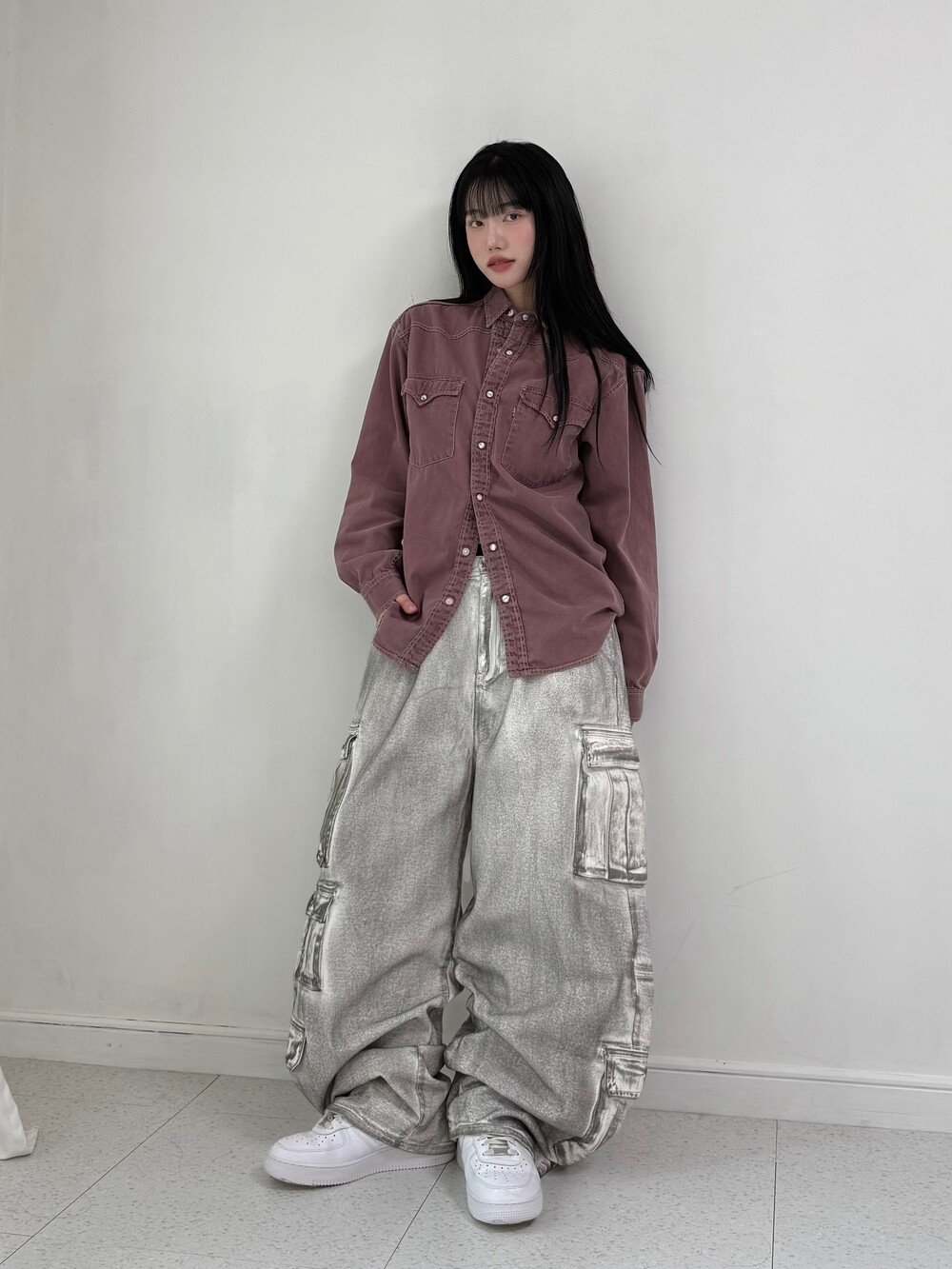 •멀티포켓 디자인의 빈티지스러운 카고팬츠에요! 전체적으로 더티 디자인의 워싱감이 들어가있어 빈티지스러움이 한가득,, 상의는 깔끔하게, 하의로 포인트 주시기 좋은 효자템이옵니다~~🎁