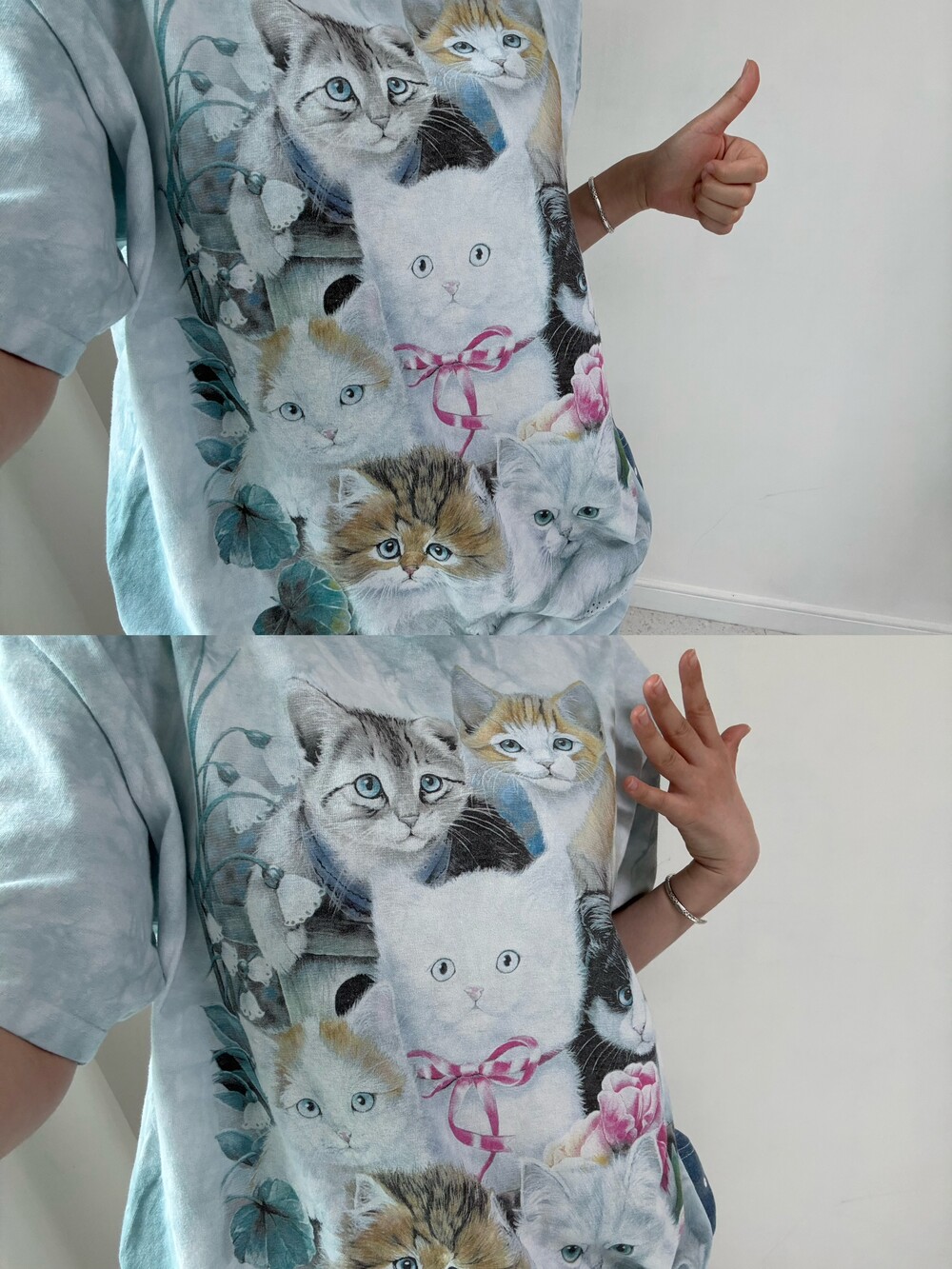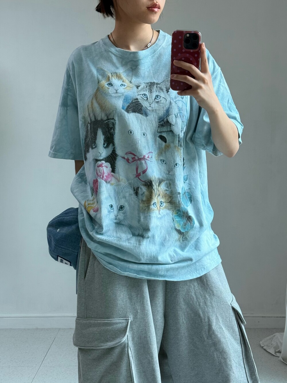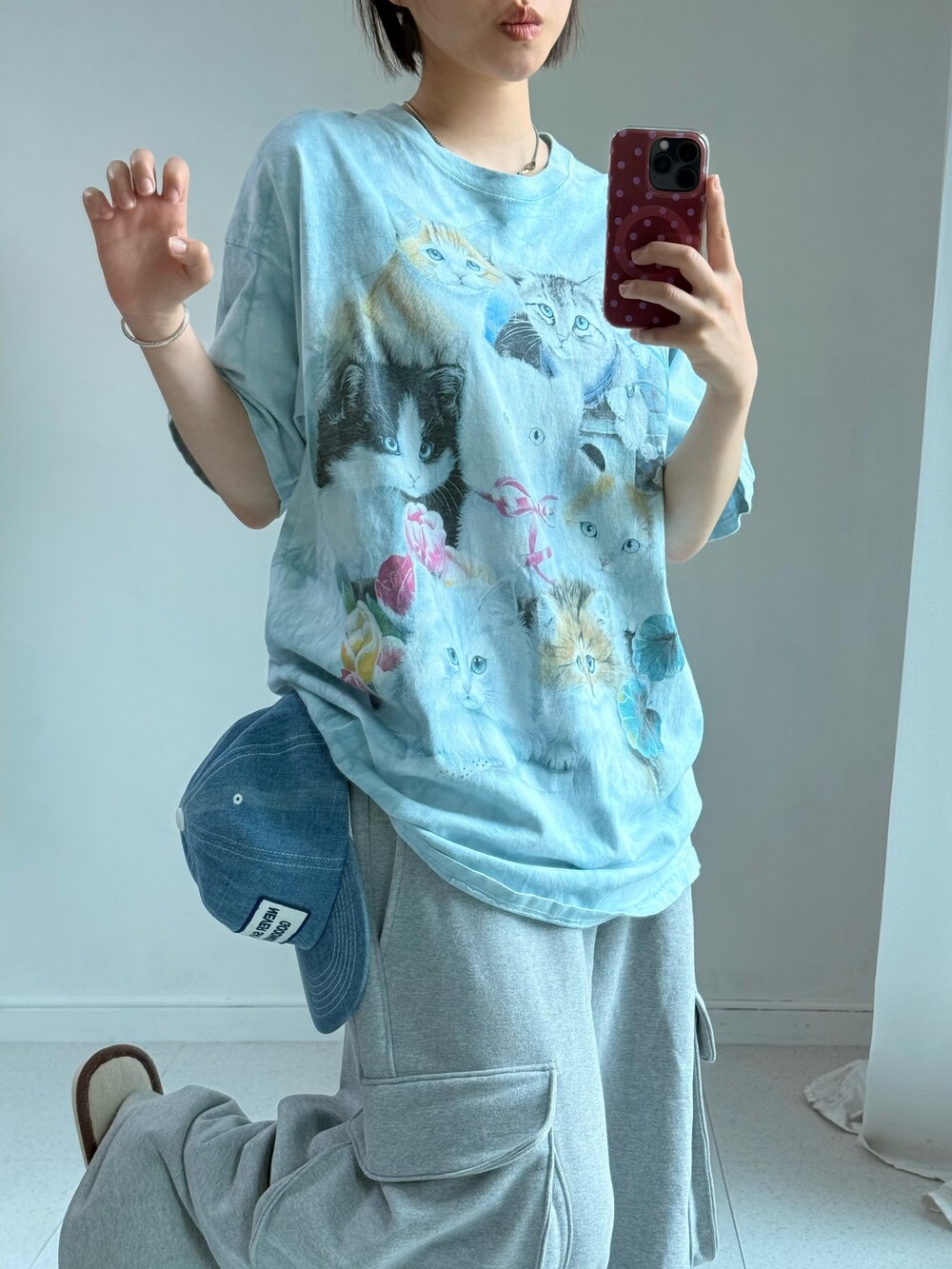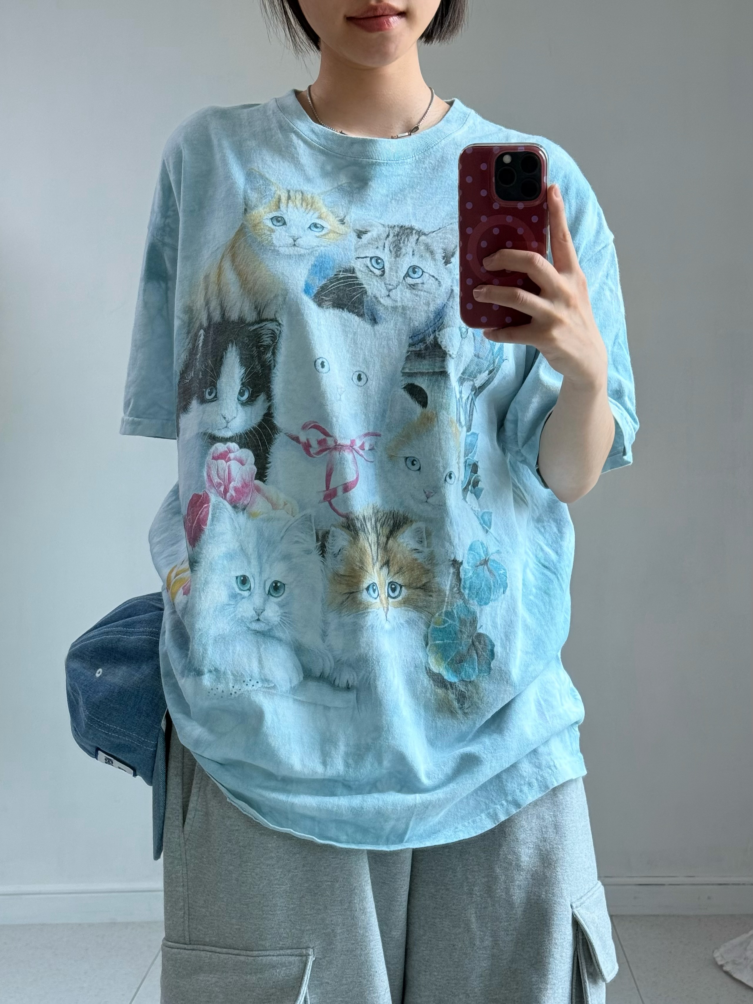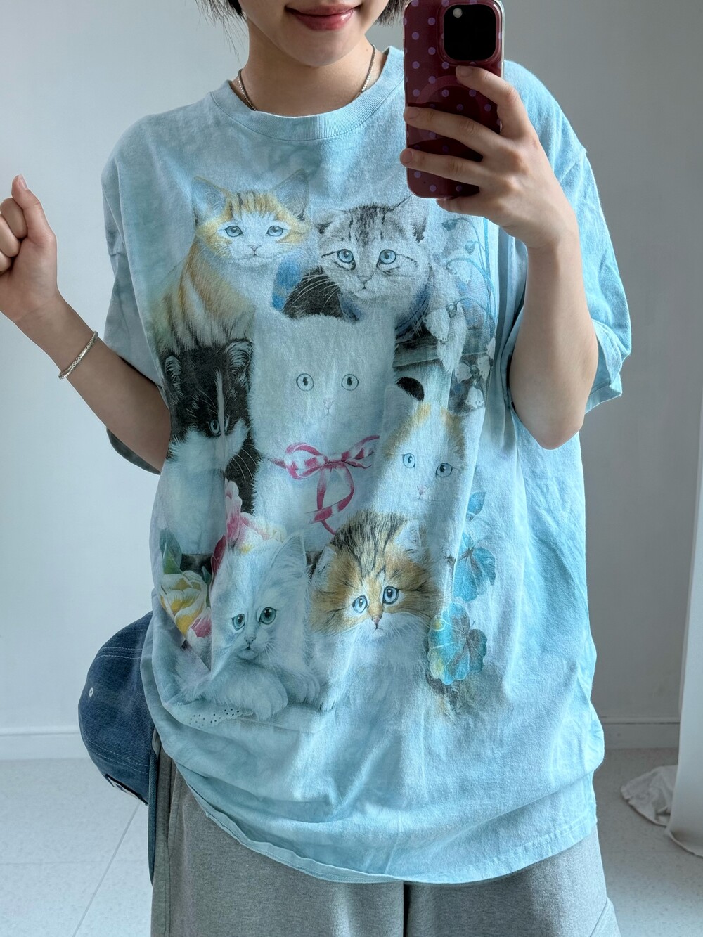 •귀엽콩 고양이들이 한가득 들어가있는 빈티지 타이다이 반팔티 ! 고양이가 세상을 구한다~~