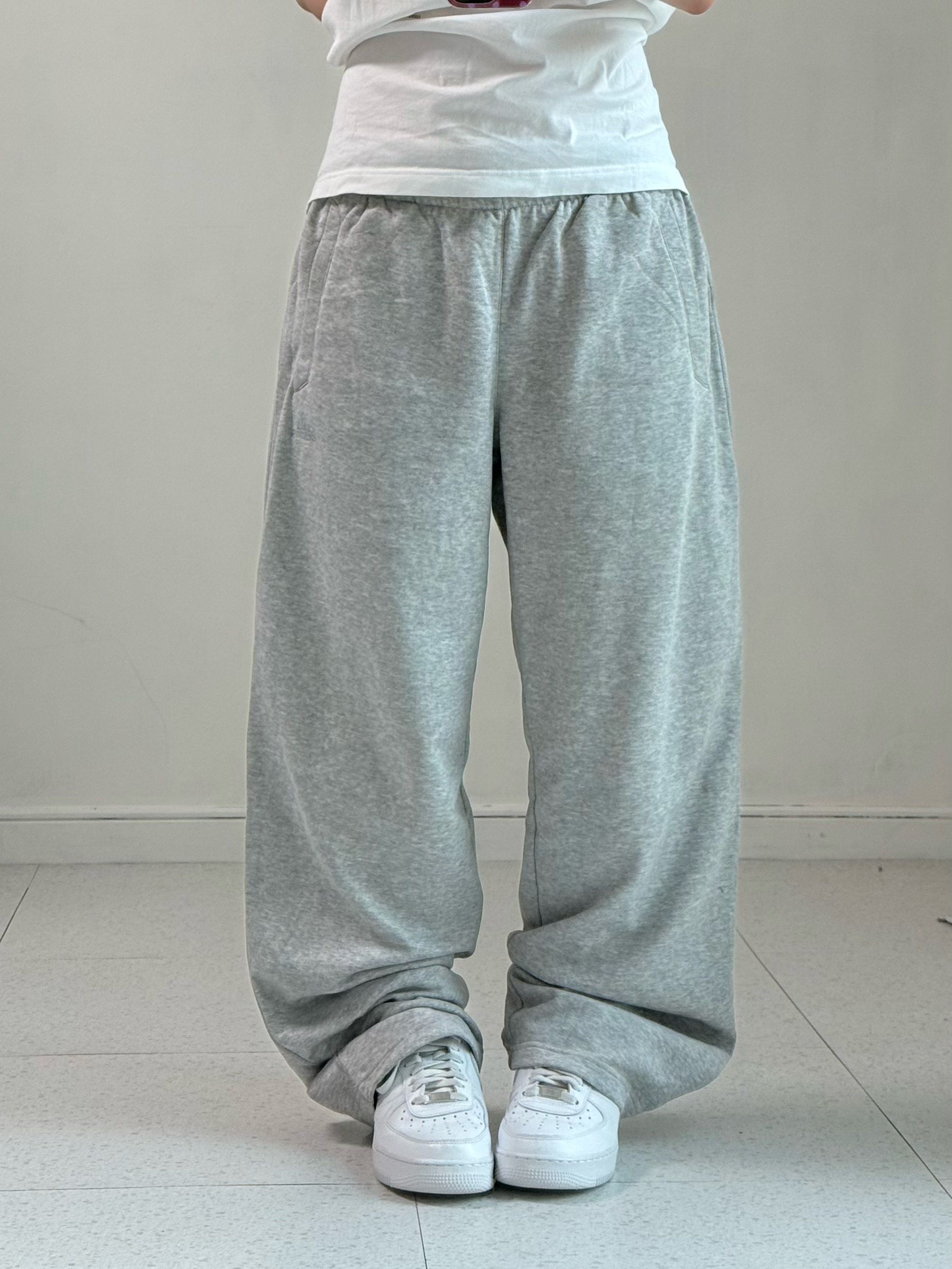 •다가오는 봄,여름에 입어주시기 좋은 가벼우면서도 와이드한 핏이 예쁘게 잡혀있는 그레이 스웻팬츠 입니다.