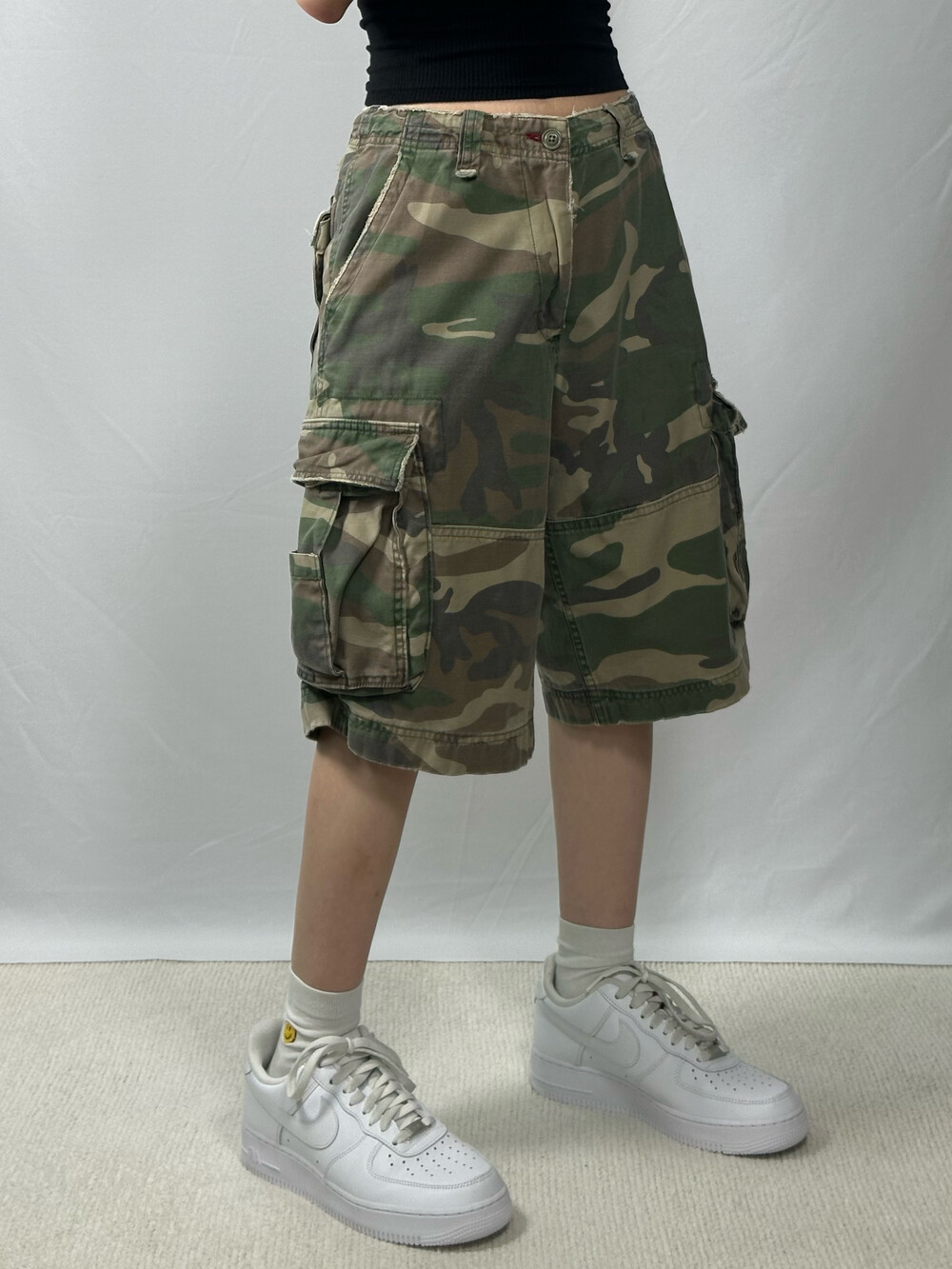 •7부 기장의 카모카고 팬츠입니다.밑단과 허벅지 단면이 널널하여 멋스럽게 착용하기 좋습니다:)