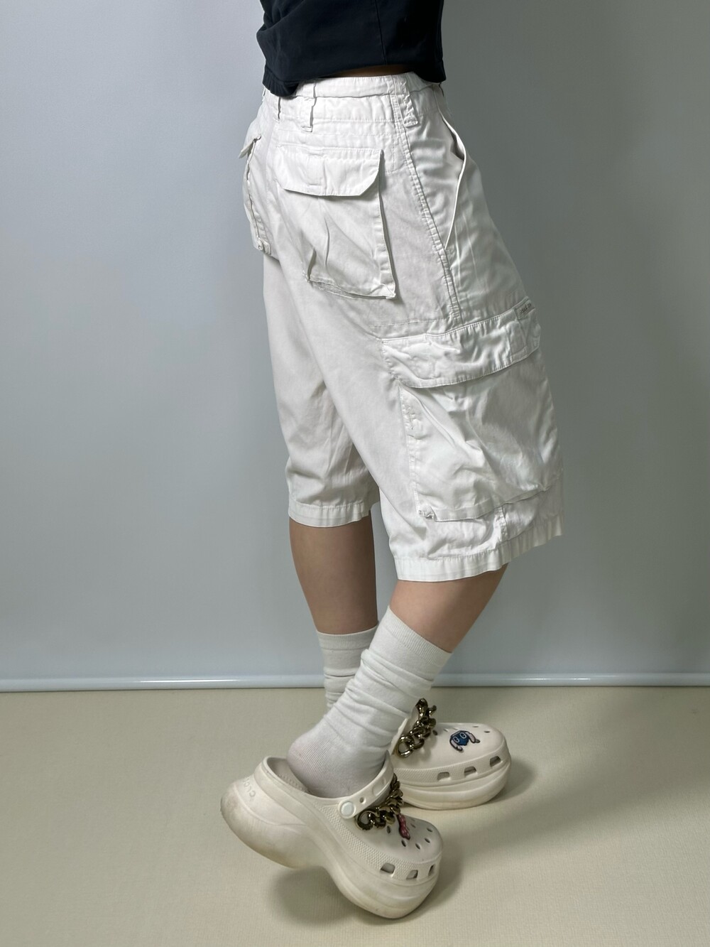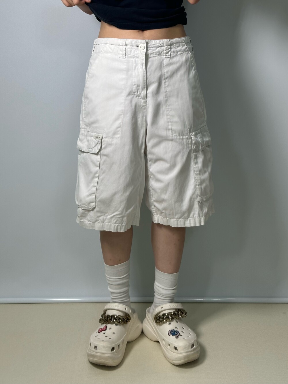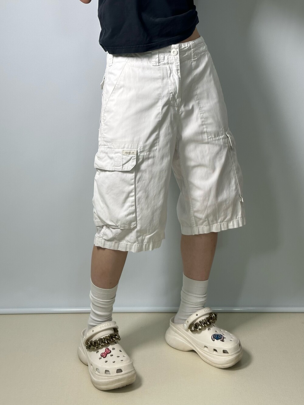 •완전 깔끔한 화이트 카고에요! 무릎을 덮는 낭낭한 기장에 어떤 컬러와 함께 매치해주어도 예쁜 팬츠라는점 ㅎㅎ