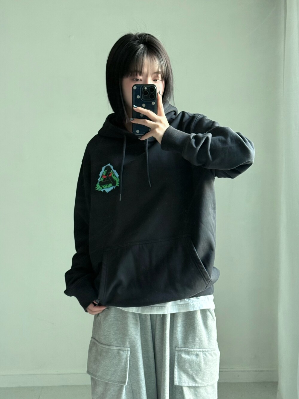 •무오데 유일매물 팔라스 후드티 입니다. 상태 너무 좋구요! 프린팅 까짐 전혀 없습니다. 사이즈도 L이라 넉넉한 오버핏으로 착용해주시기 좋습니다.