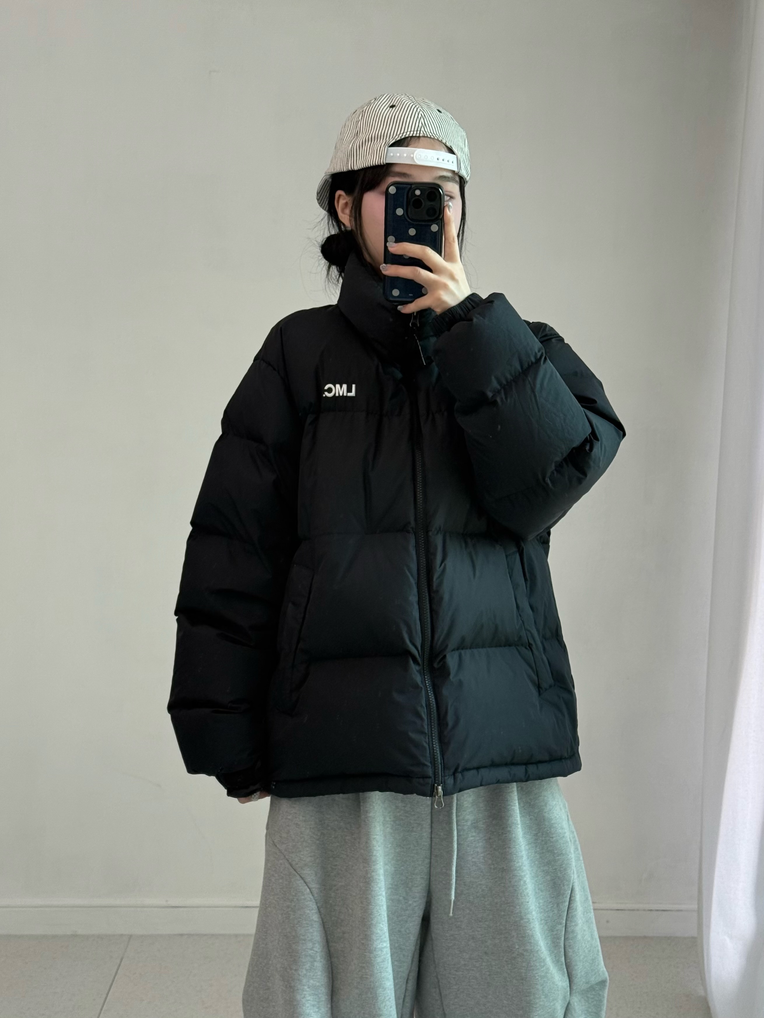 •엘엠씨 덕다운 블랙패딩 입니다.투웨이에 L사이즈라 안에 두꺼운 후드나 맨투맨과 함께 입어주셔도 편하게 입어주실 수 있어요! (정가24만8천원)