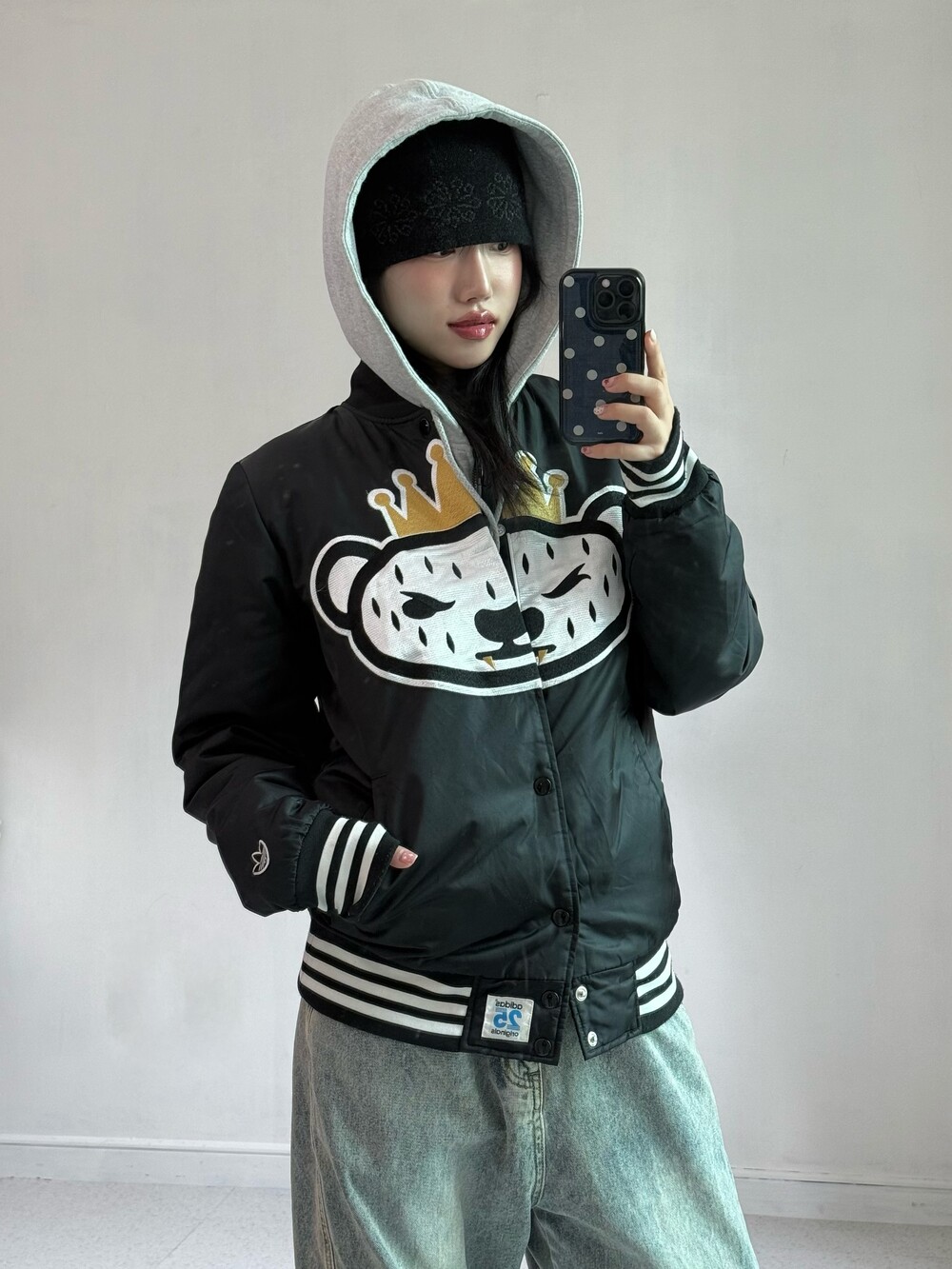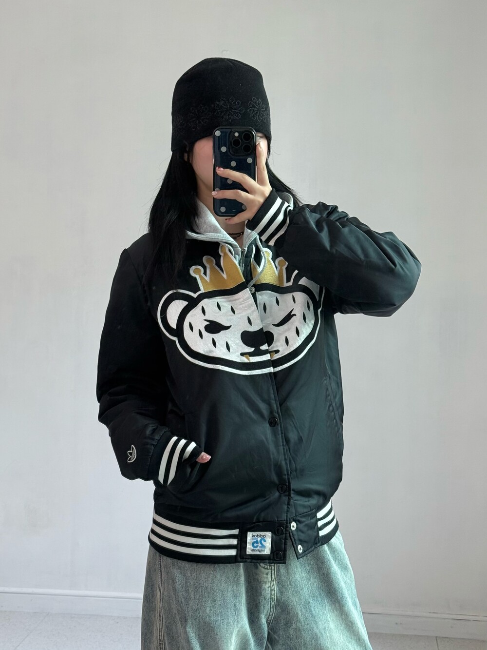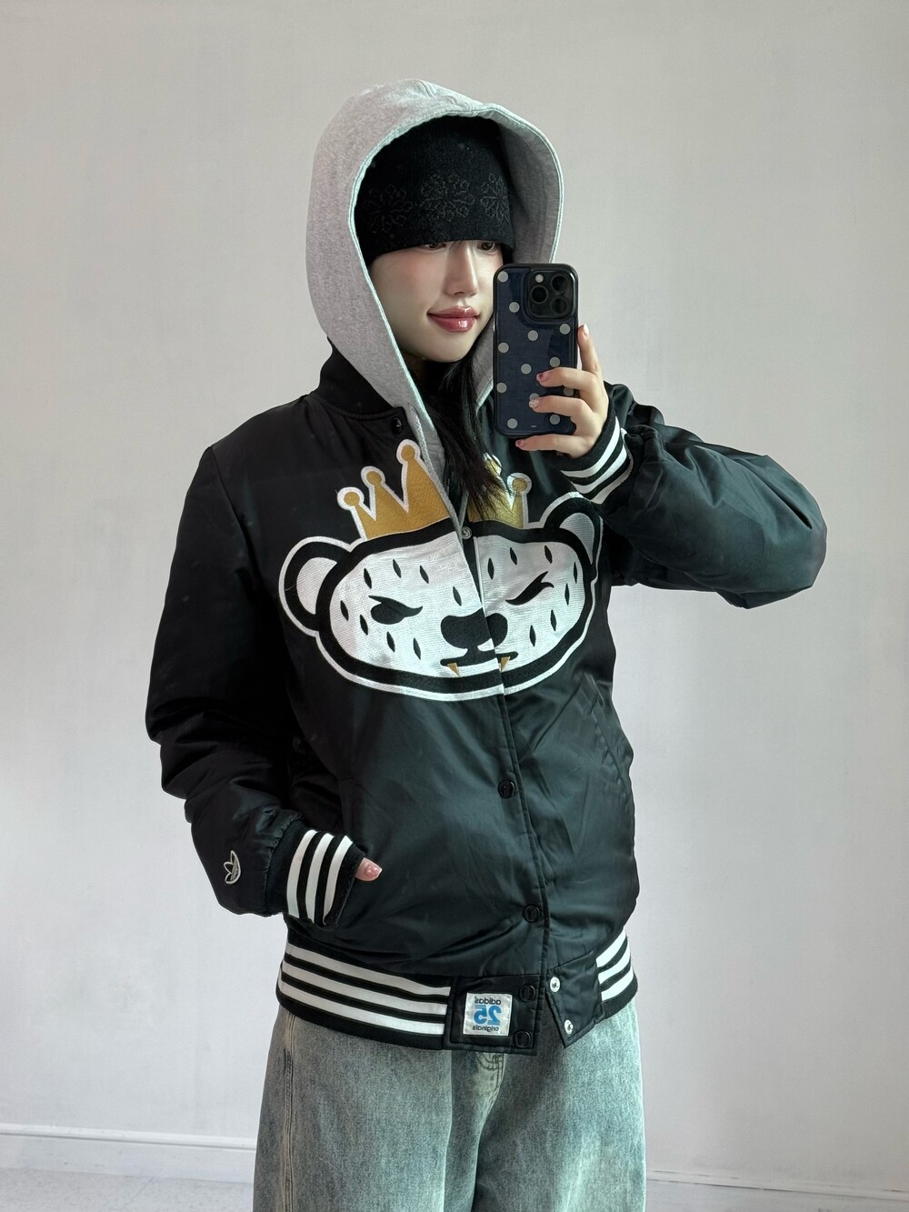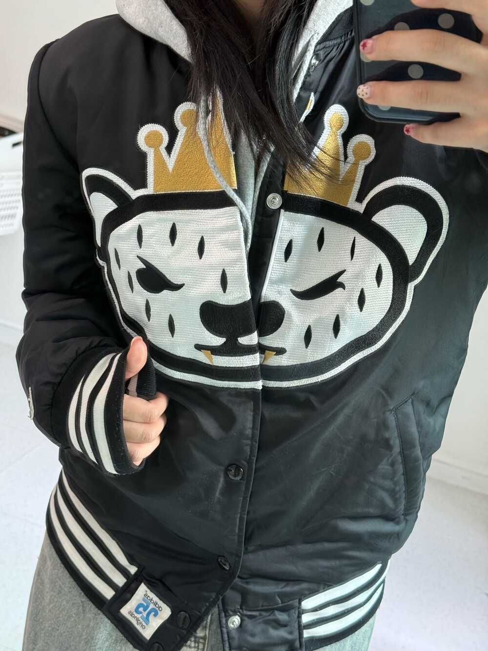 •항상 아디다스 니고베어 져지만 보여드렸었는데,, 대대장 바시티 자켓 들고 왔습니다! 큼지막한 니고베어가 넘 귀여운 아이템이에요ㅠ_ㅠ🖤