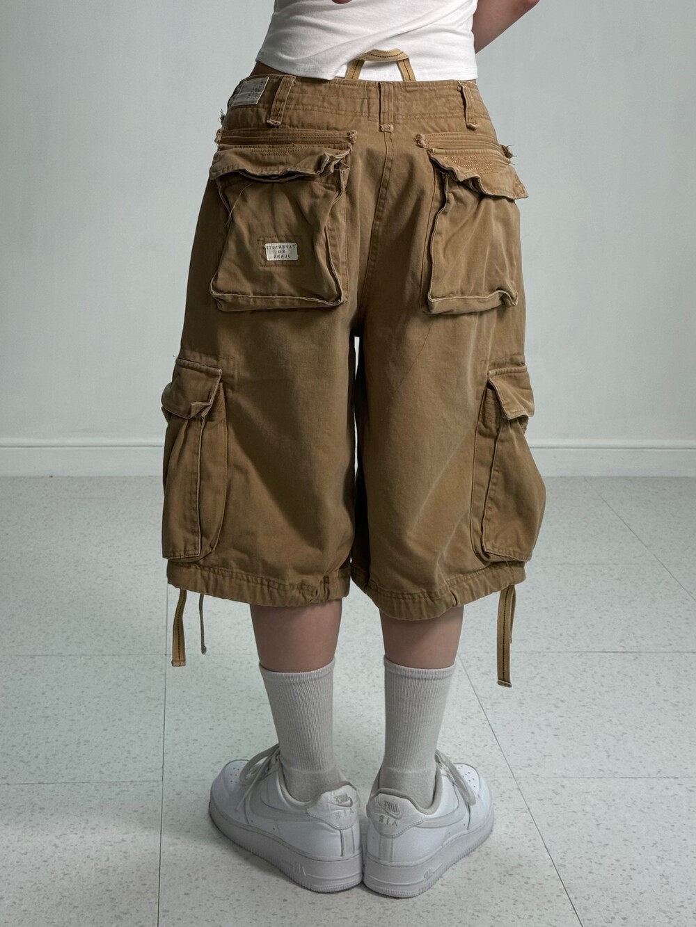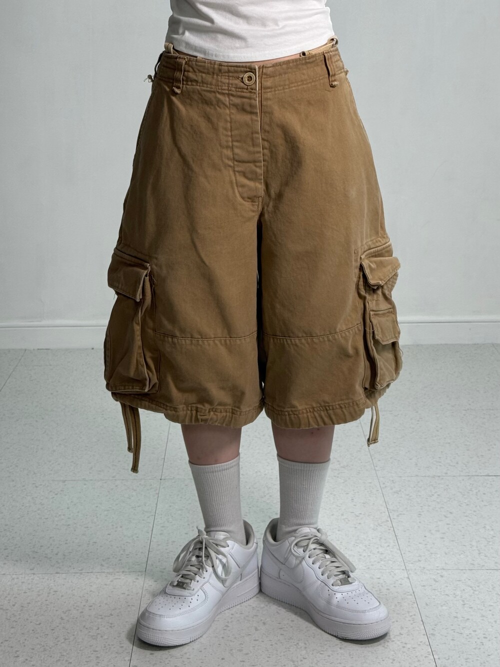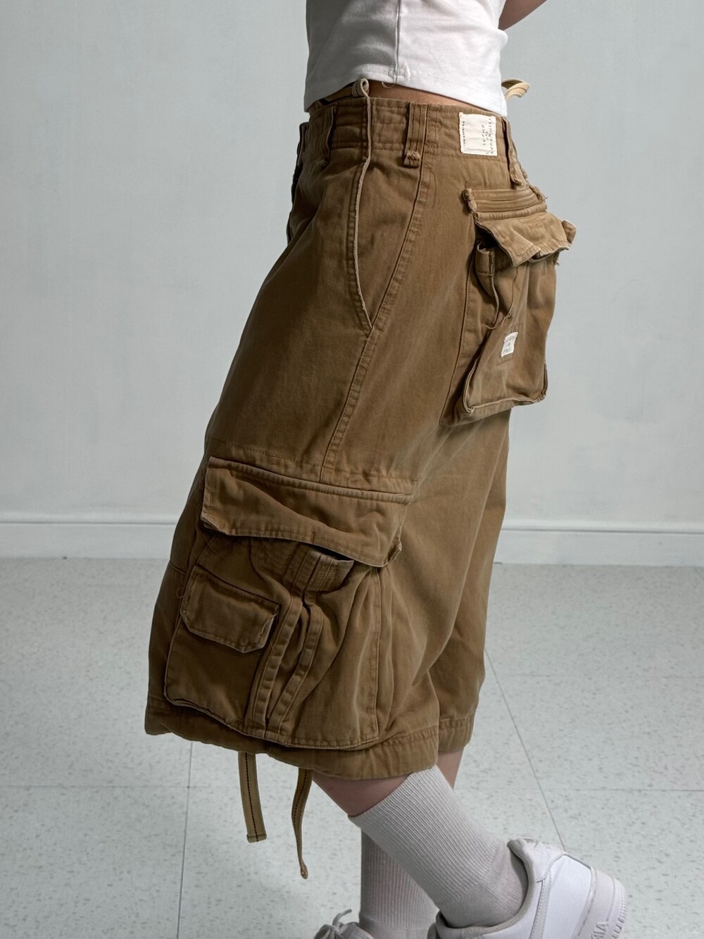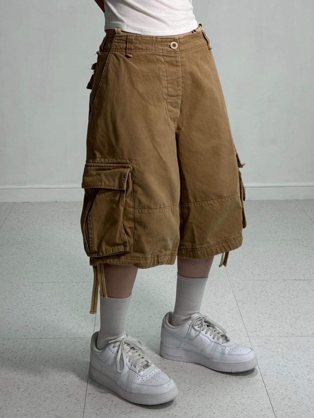 Wide beige half cargo pants