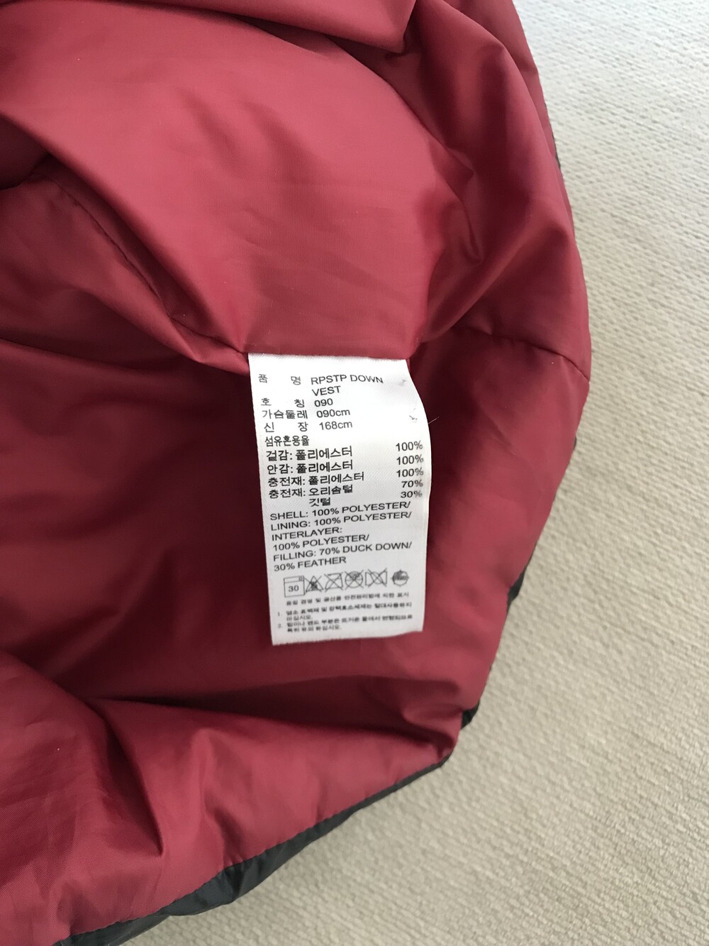 •아디다스 오리털 조끼패딩 입니다. 블랙+버건디 조합이 정말 예쁜 아이템이에요! 다이아몬드 디자인 넘 넘 예뻐요,,🖤