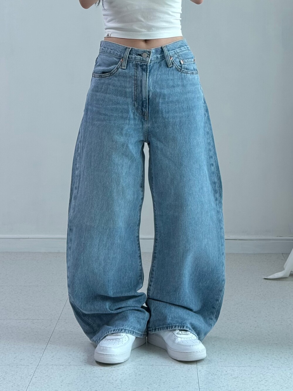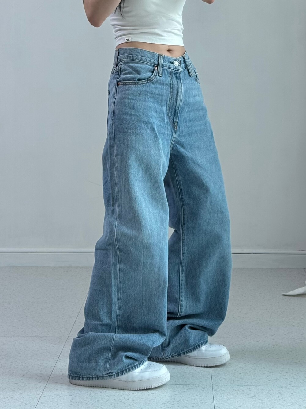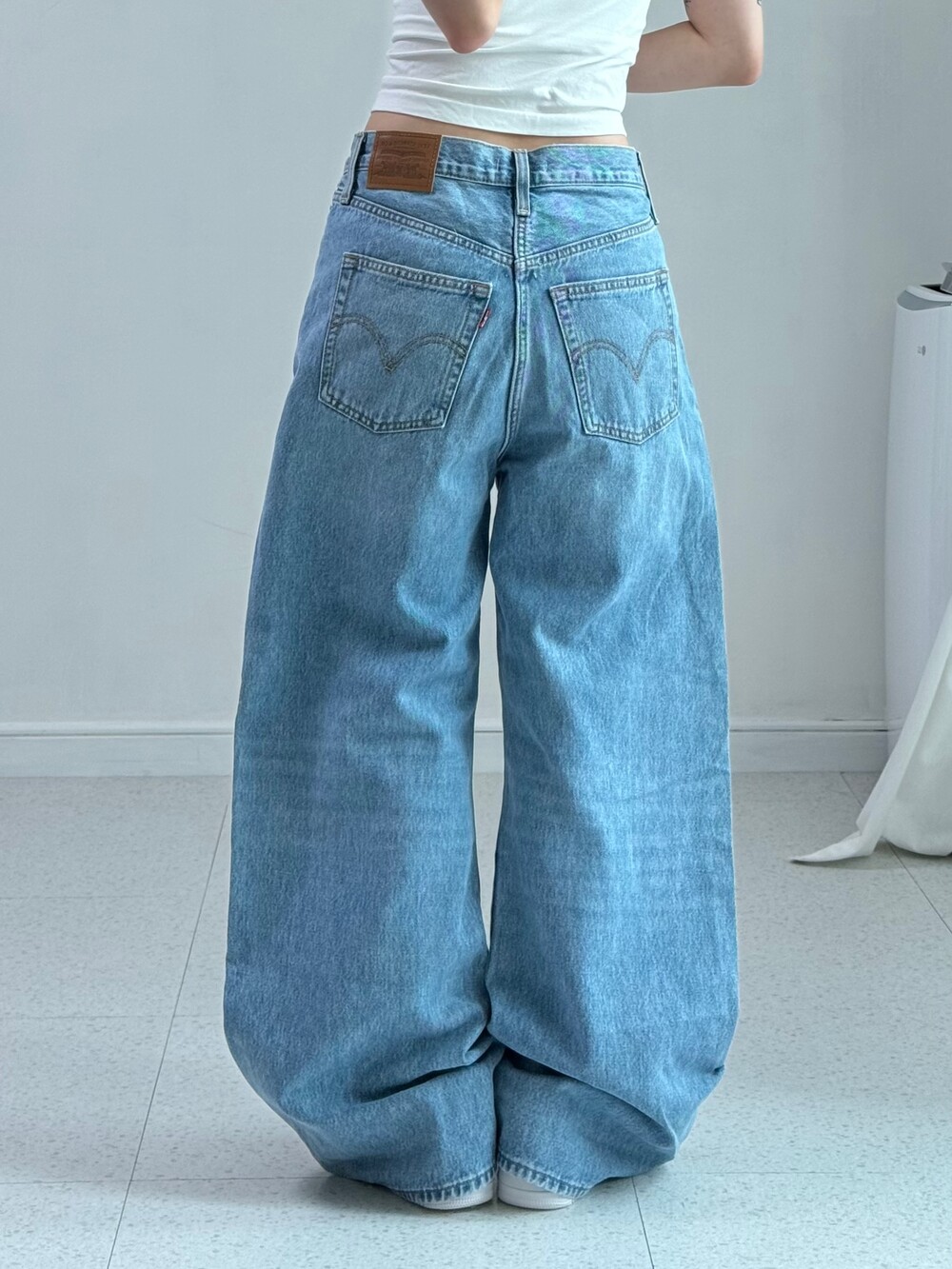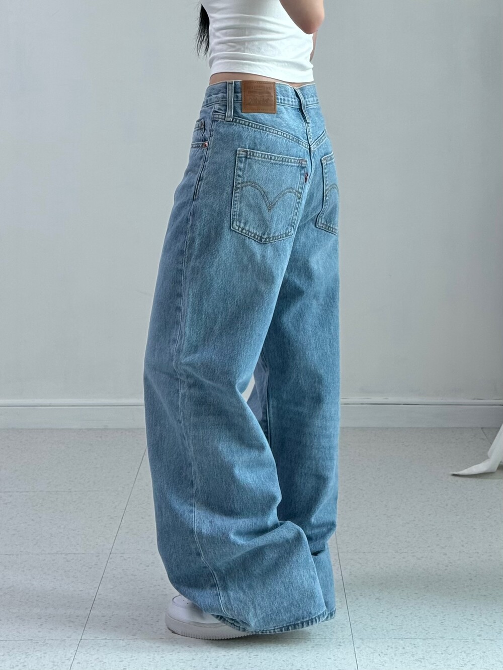 •리바이스 데님 중에서도 제가 제일 좋아하는핏❤️ 깔끔한 와이드핏에 엉덩이 리바이스 로고 스윽 ㅎㅎ 데일리로 마구 입어주시기 좋은 베이직한 팬츠에요!
