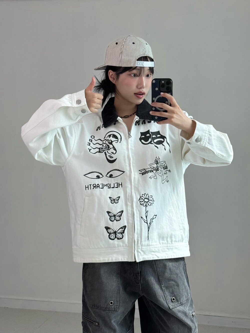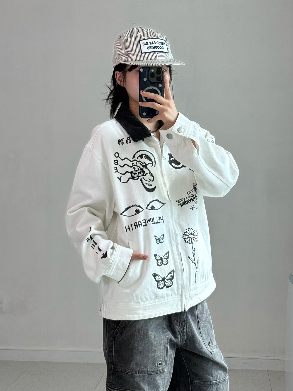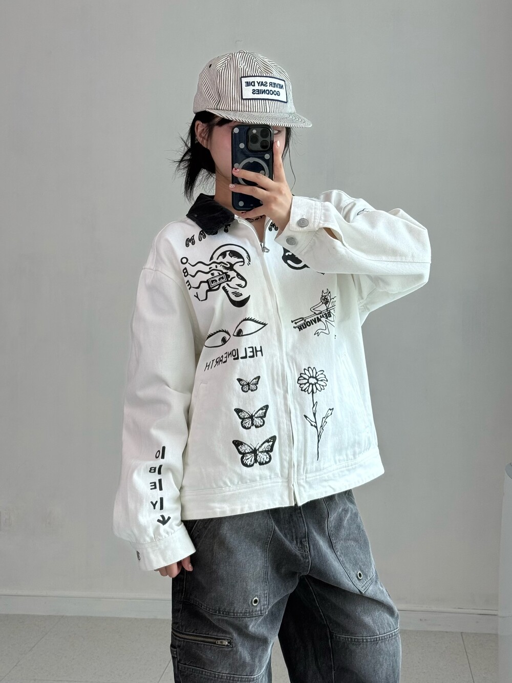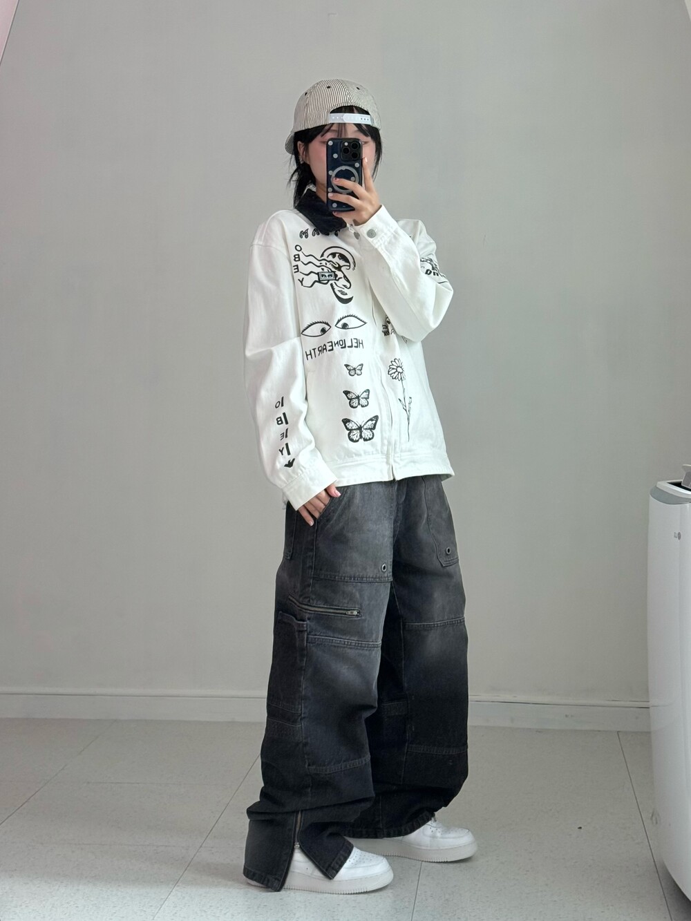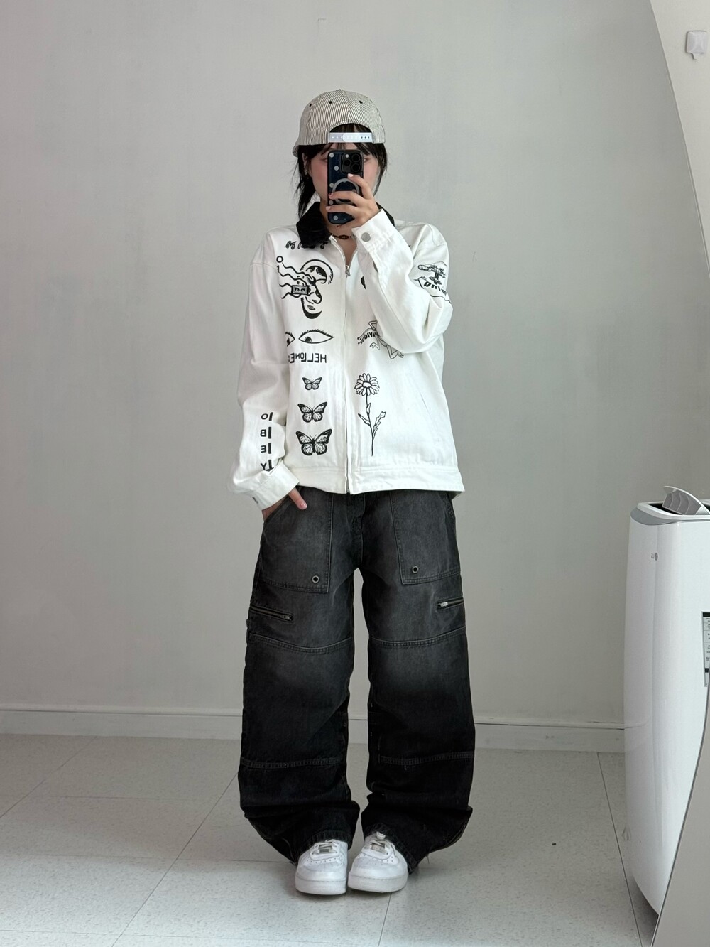 •오베이 화이트 드림팀 데님 자켓 입니다! 유니크한 패턴이 들어가있는 제품이라 포인트로 착용해주시기 좋은 가을 자켓이에요ㅎㅎ 오베이 특유의 멋스러움도 한스푼,,