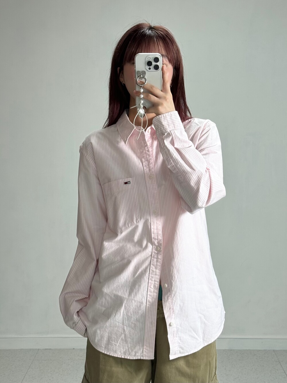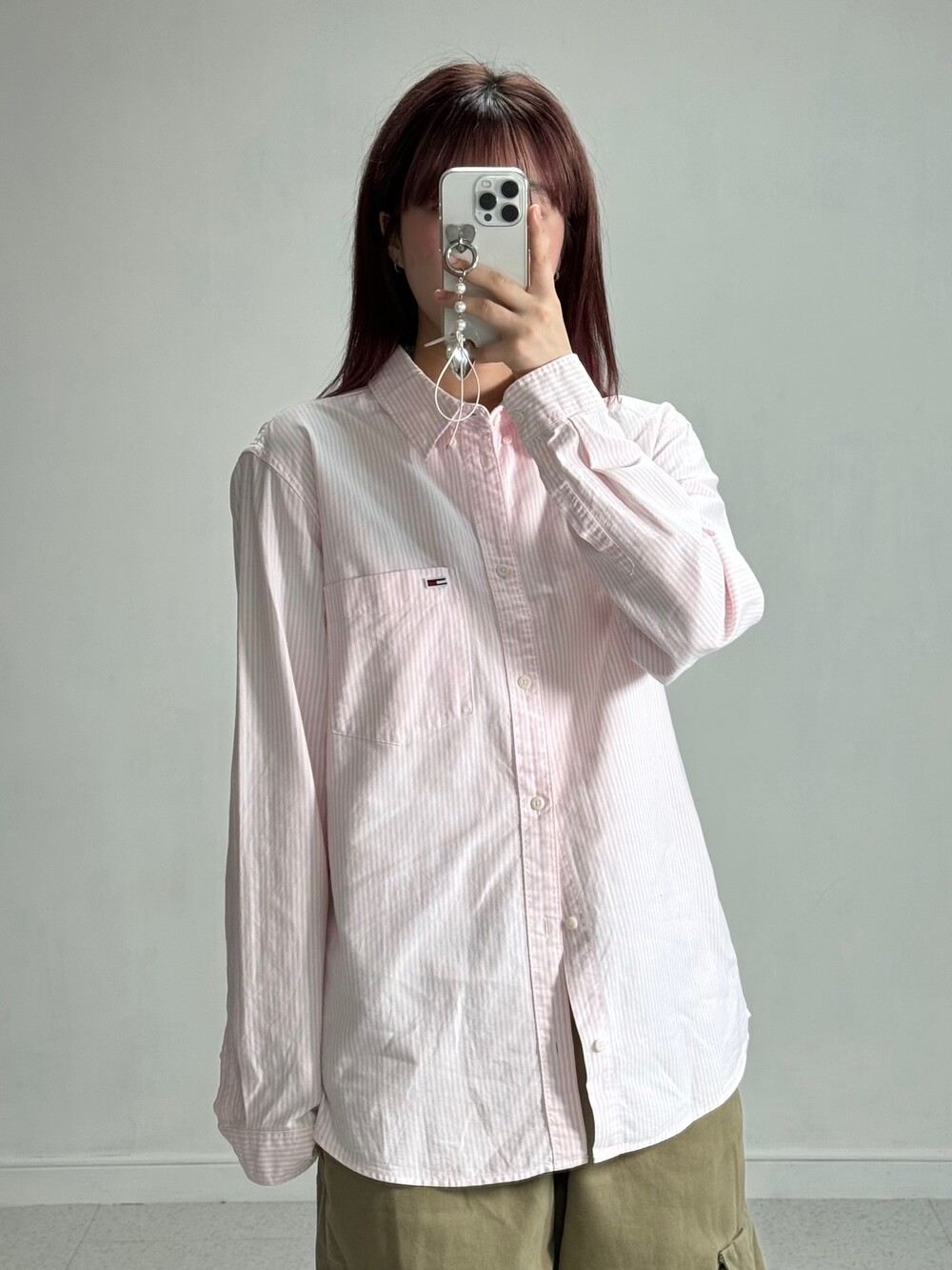 •핑크러버라면 무조건 있어야하는 봄 필수템! 스트라이프 디자인 타미 셔츠에요ㅎㅎ 살짝 루즈하게 입어주는것이 포인투>,<