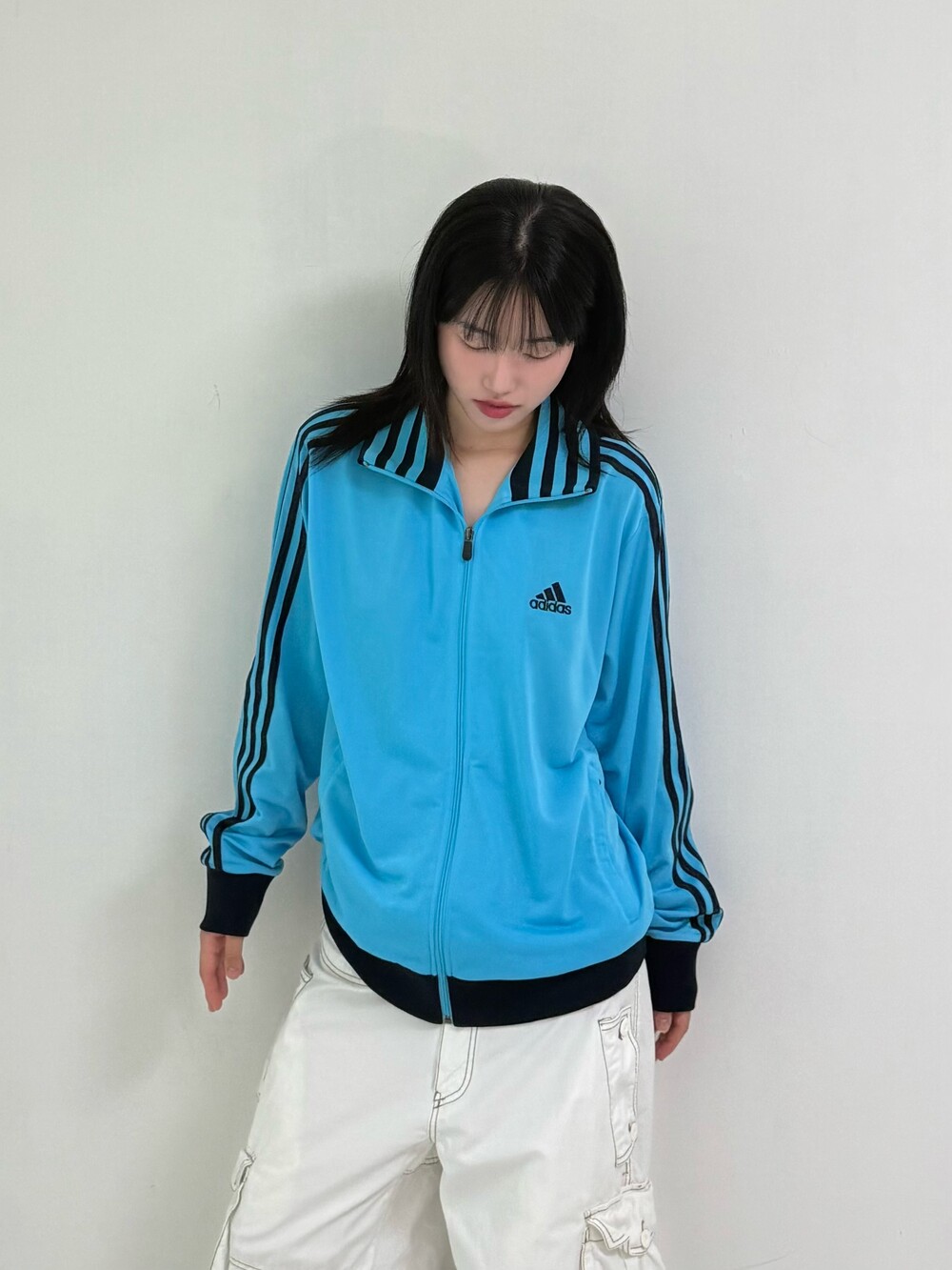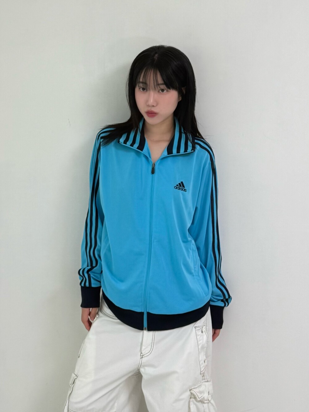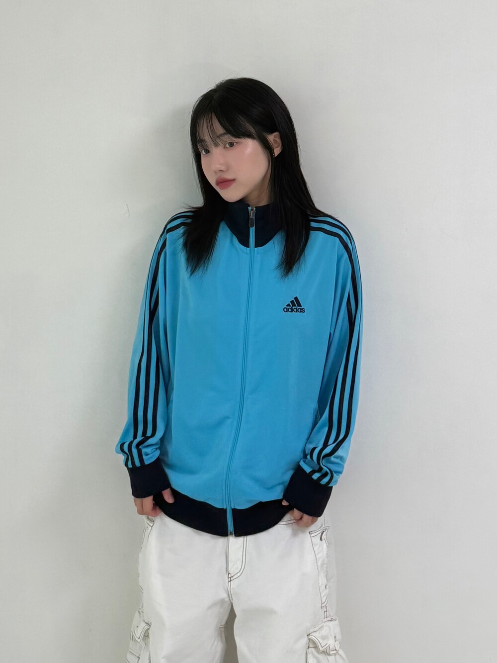 •아디다스 스카이블루 져지 입니다! 루즈핏 실루엣에 색감까지 시원하고 특이해서 넘 마음에 드는거 있죠ㅎ.ㅎ