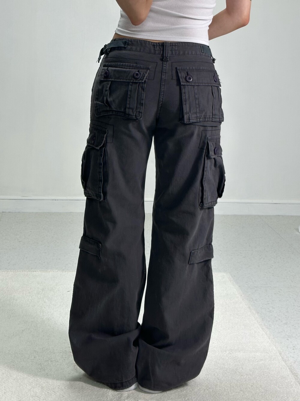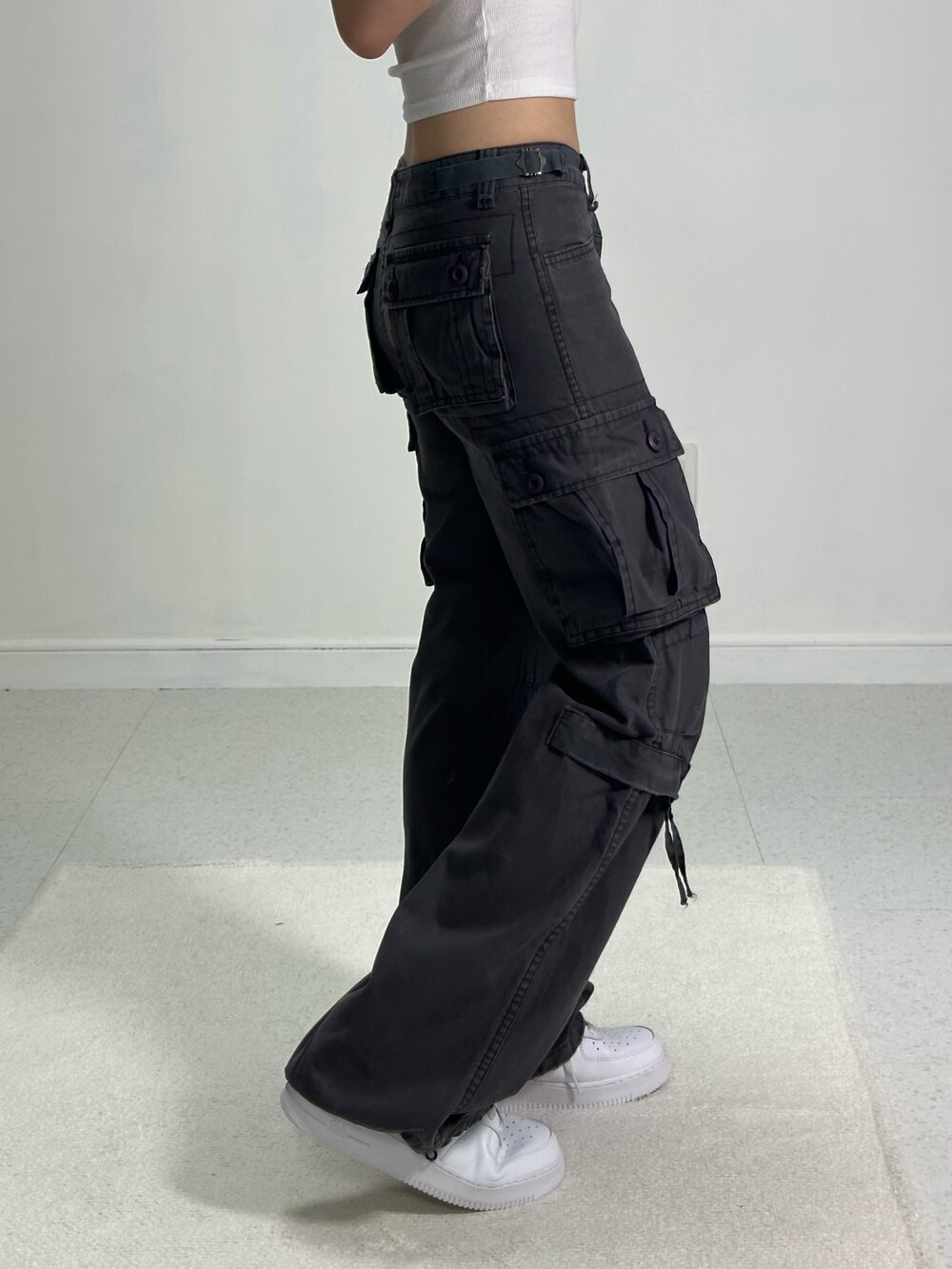 •로우라이즈로 착용해주시는 카고팬츠에요! 무릎쪽에 핀턱 디테일이 있어 잡히는 주름이 더 멋있게 보여지고 살짝 묵직한 원단이라 착용감도 좋습니다 ㅎㅎ 롱다리로 만들어주는 매직카고-