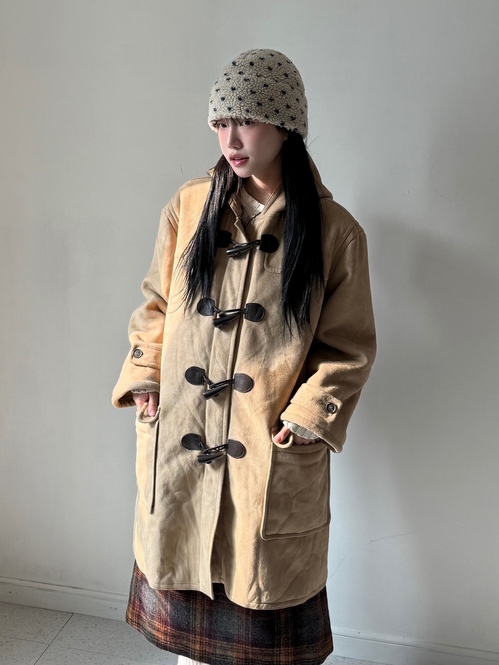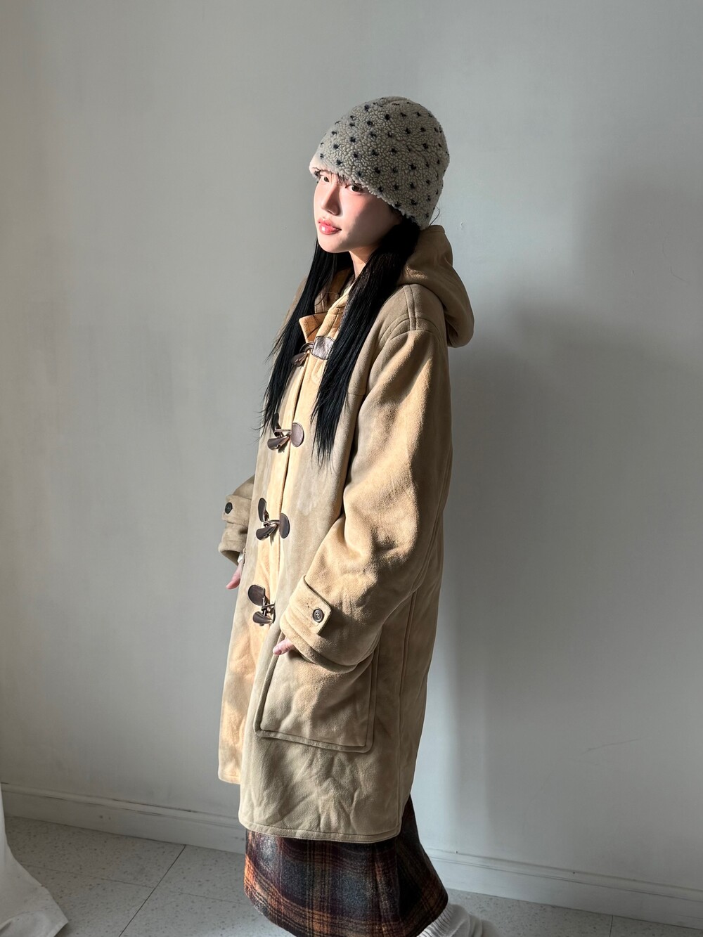 •엠엘비 스웨이드 떡코 입니다! 톤다운된 베이지 컬러에 외부는 스웨이드, 내부는 퍼로 들어가있어 훨씬 따뜻하고 착용감이 좋습니다! 🖤