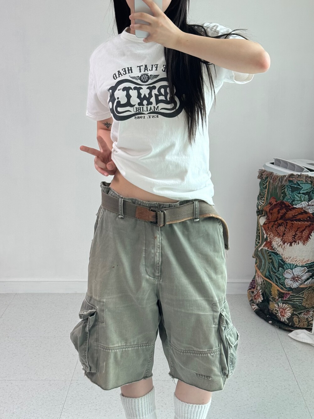 •벨트까지 세트바리인 카반! 멀티포켓 디자인이라 전체적으로 빈티지한 무드가 업✌🏻 묵직루즈핏이라 더욱 더 예쁜듯해요😎
