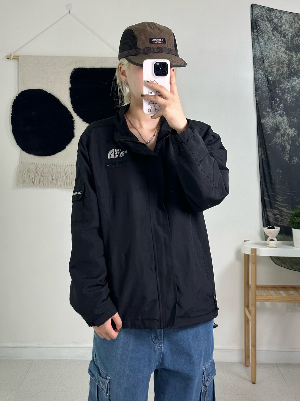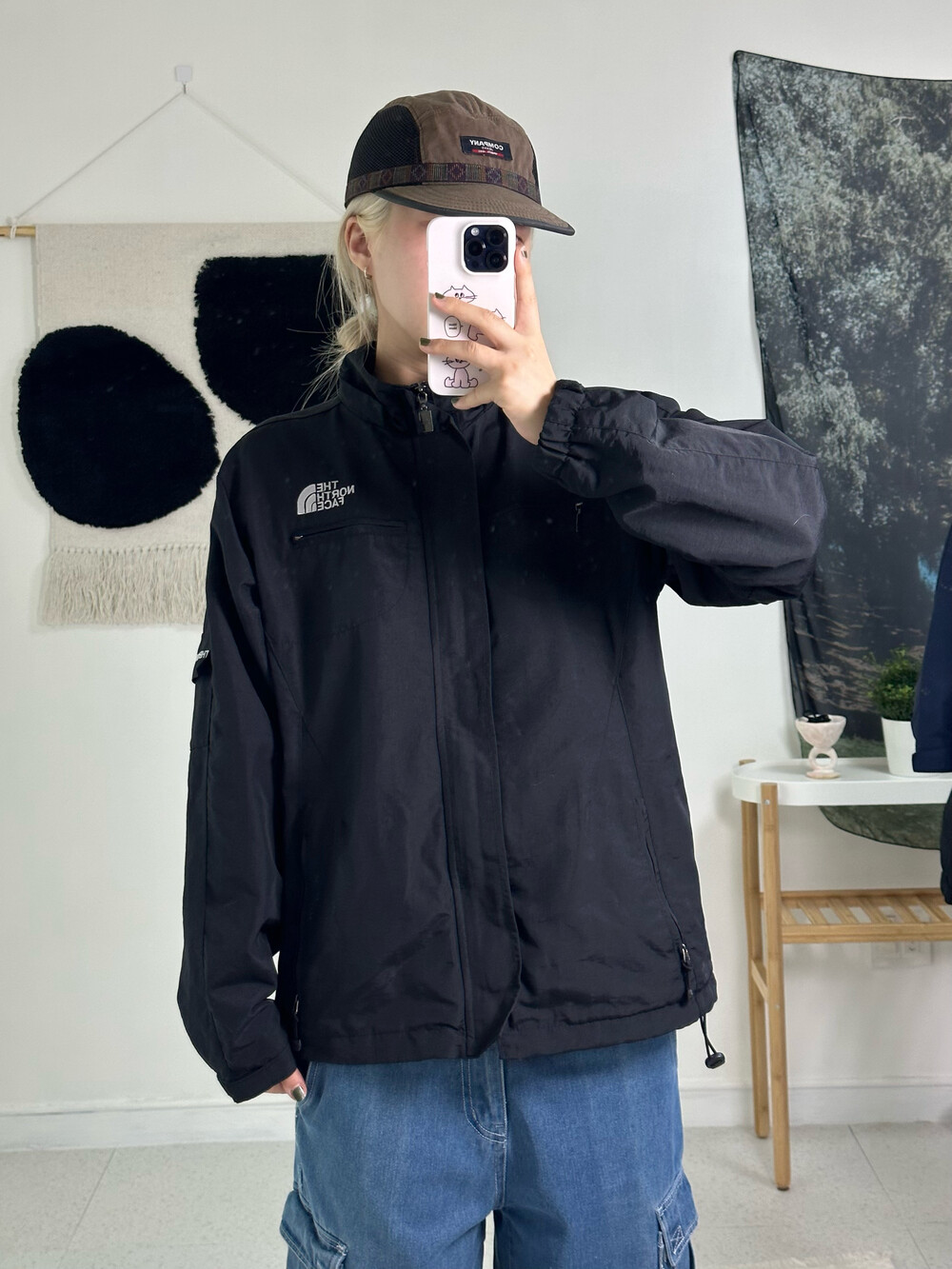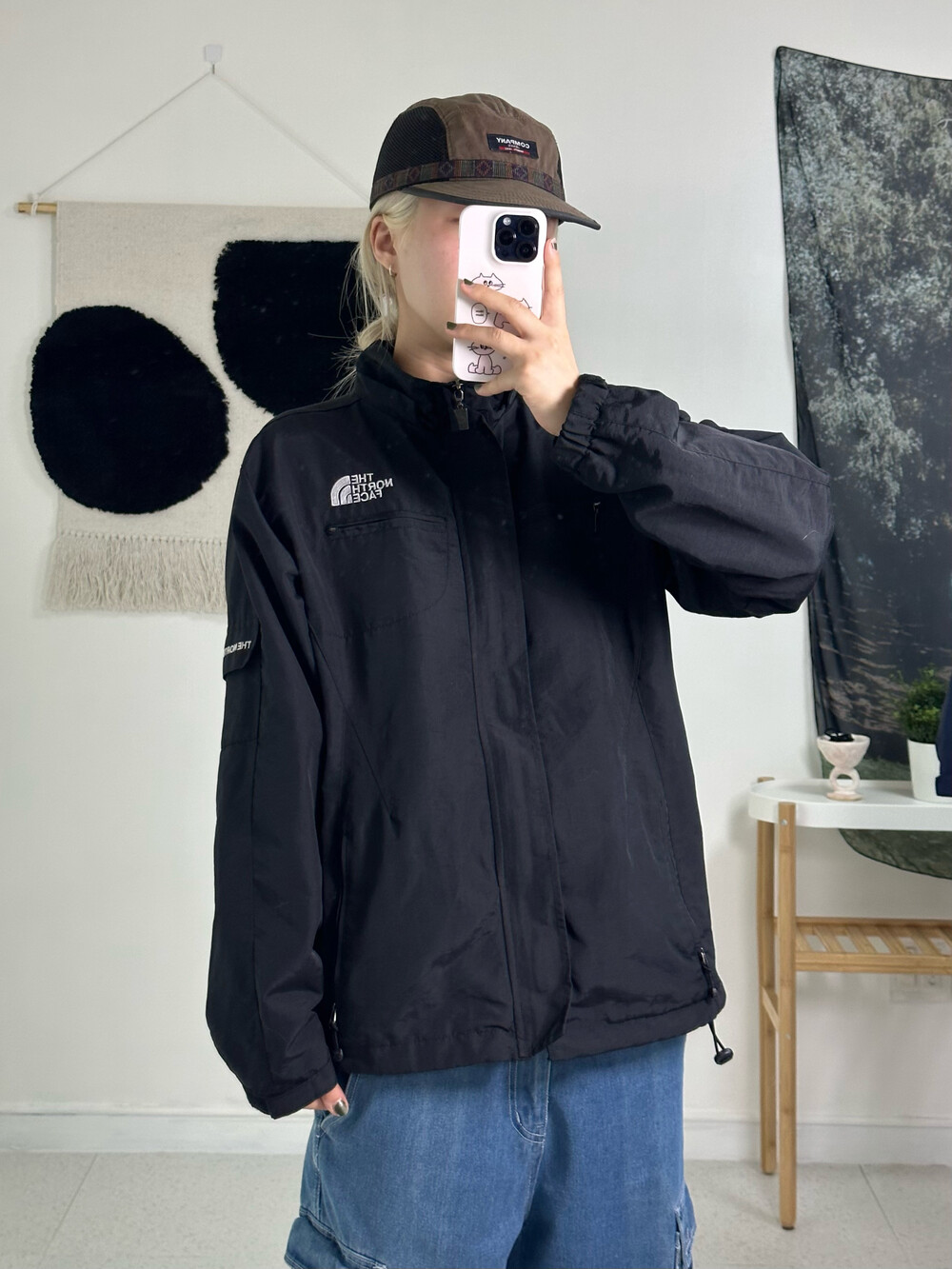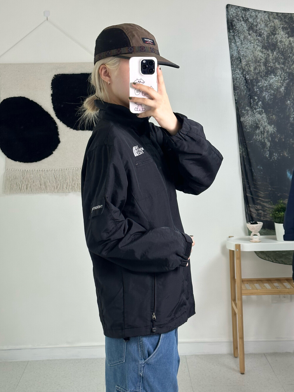 •노스페이스 바람막이에요! 블랙에 화이트 근본 조합이죠? 고프코어룩에 완전 제격>,<