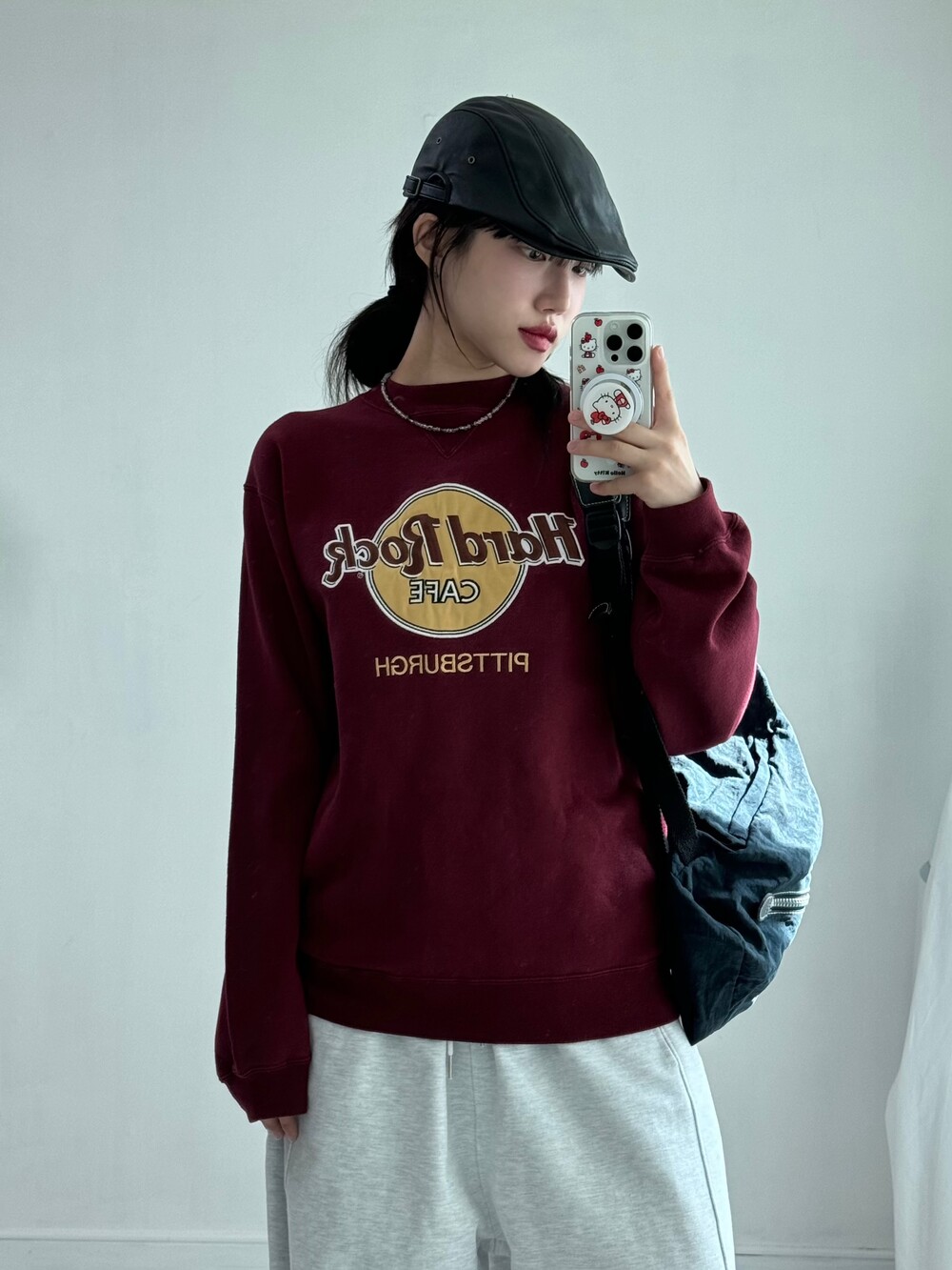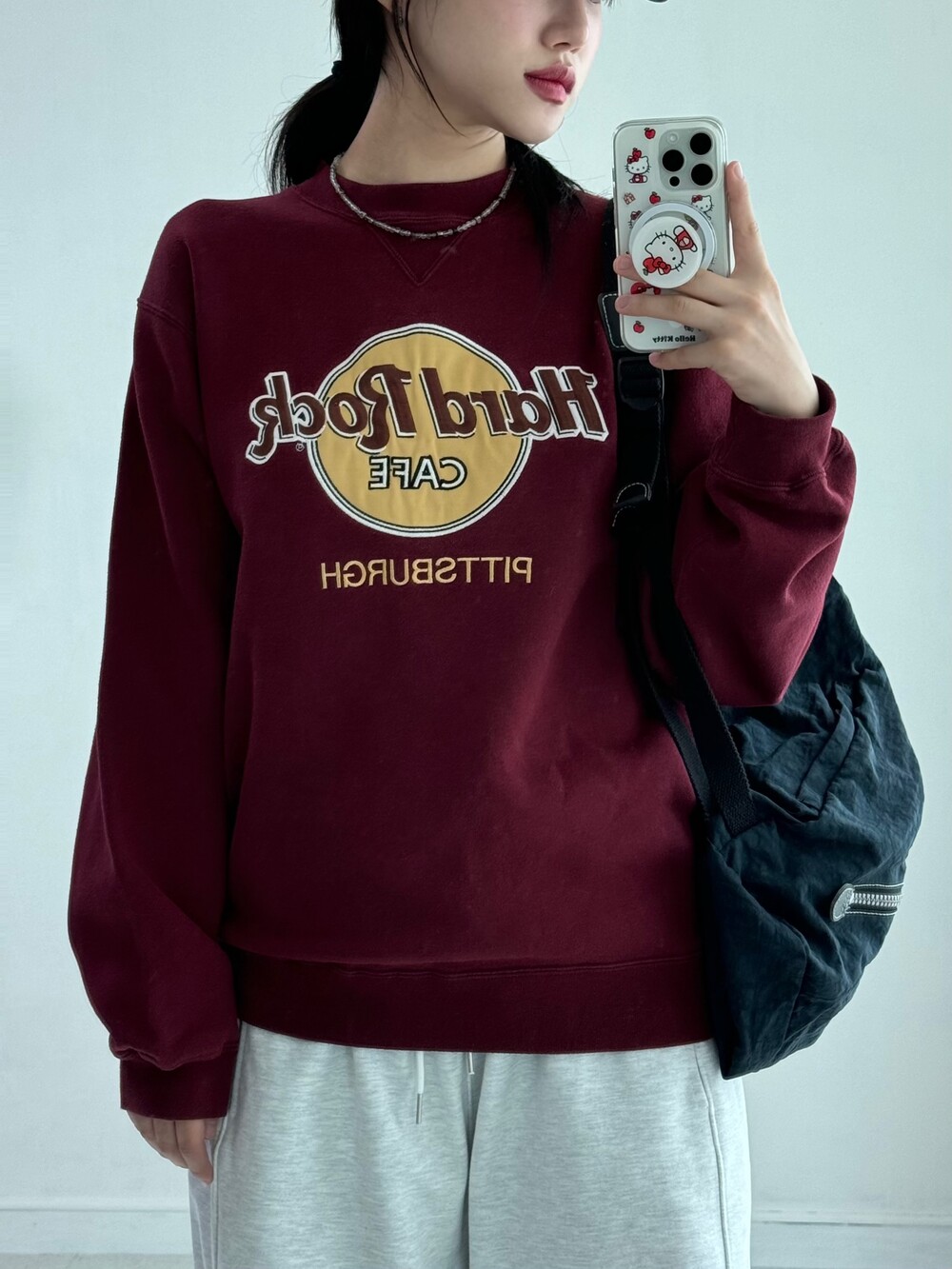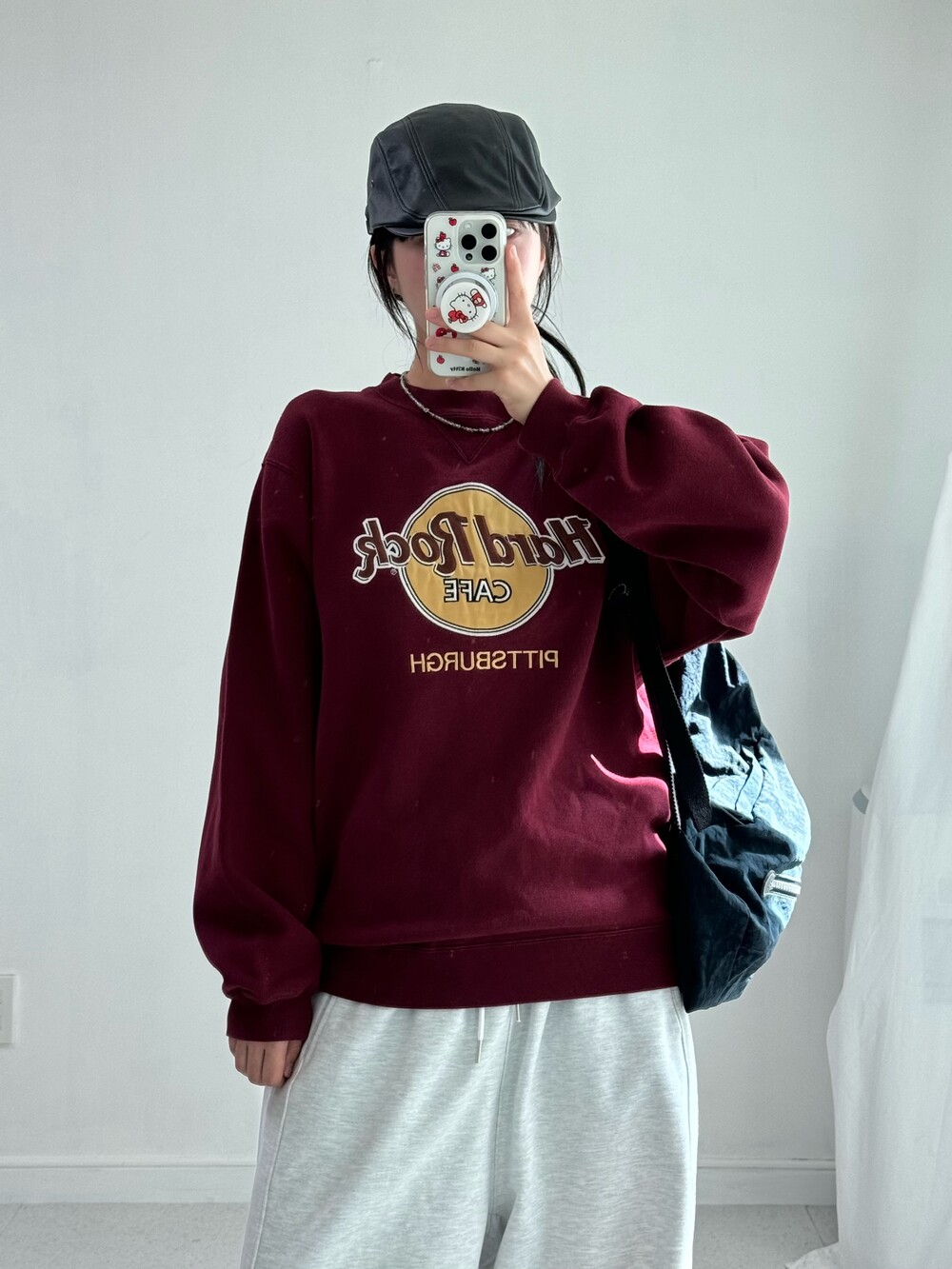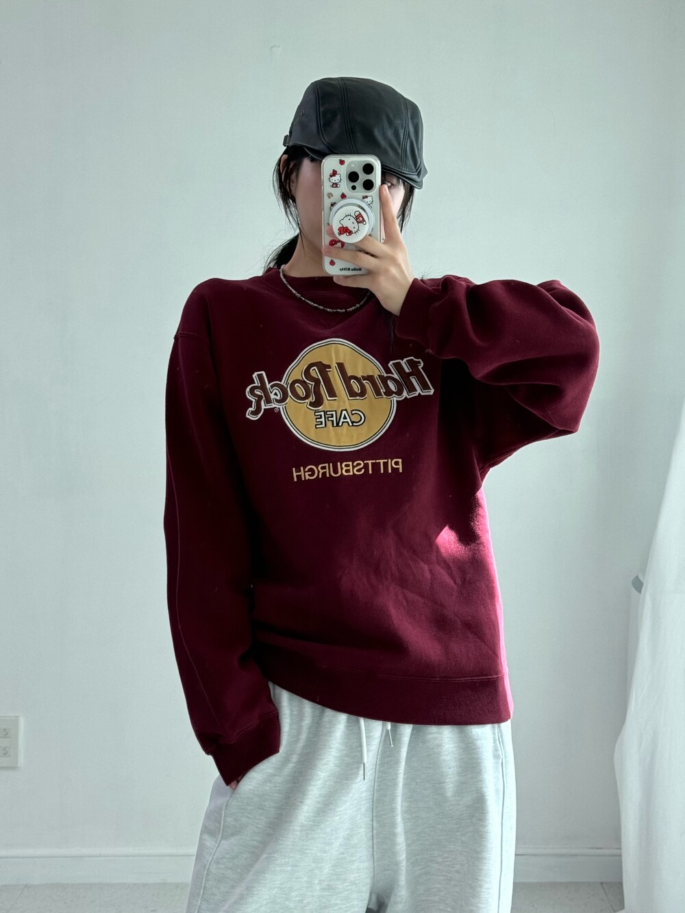 •빈티지미 낭낭 하드락카페 맨투맨이에요! 버건디 컬러라 가을에 최적화.. 이거 무조건 가지고 가셔요ㅠ 넘 예뿌다아