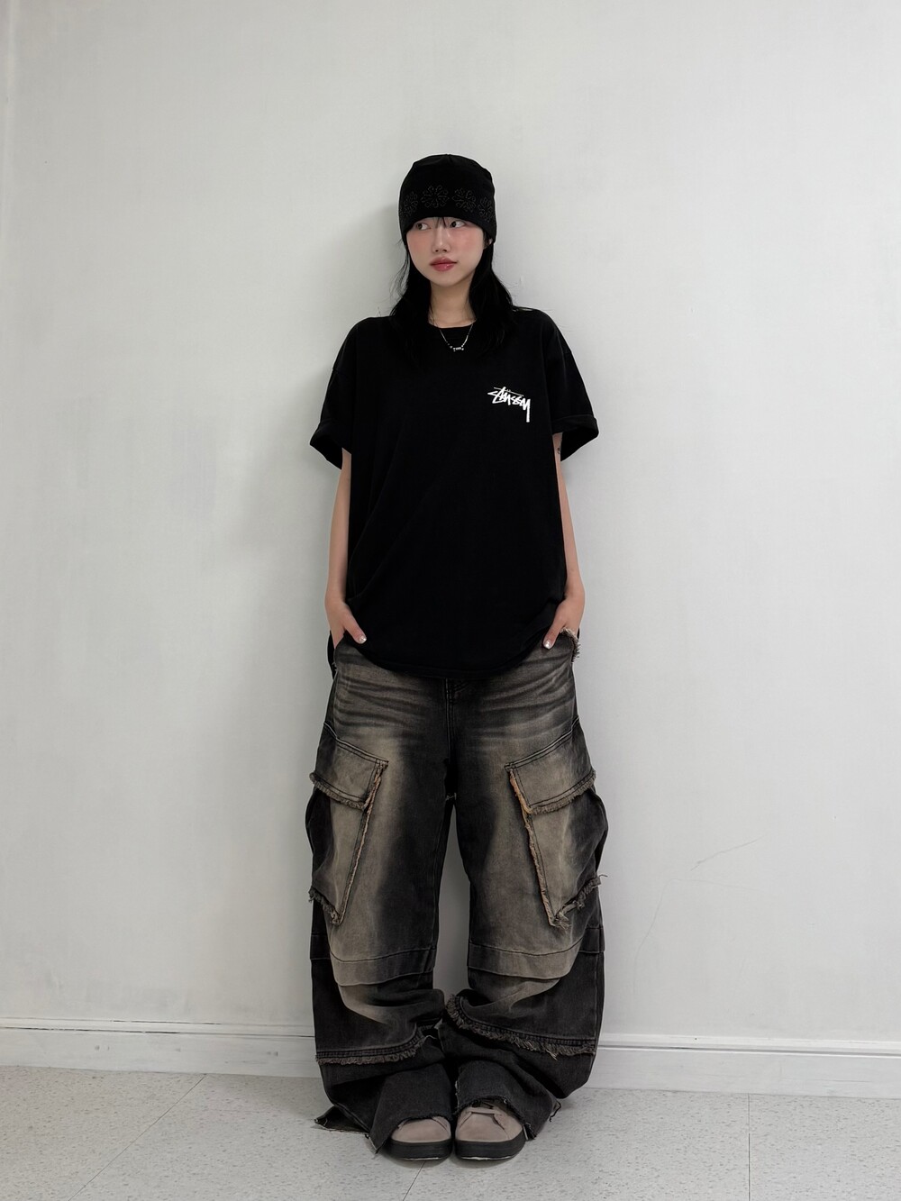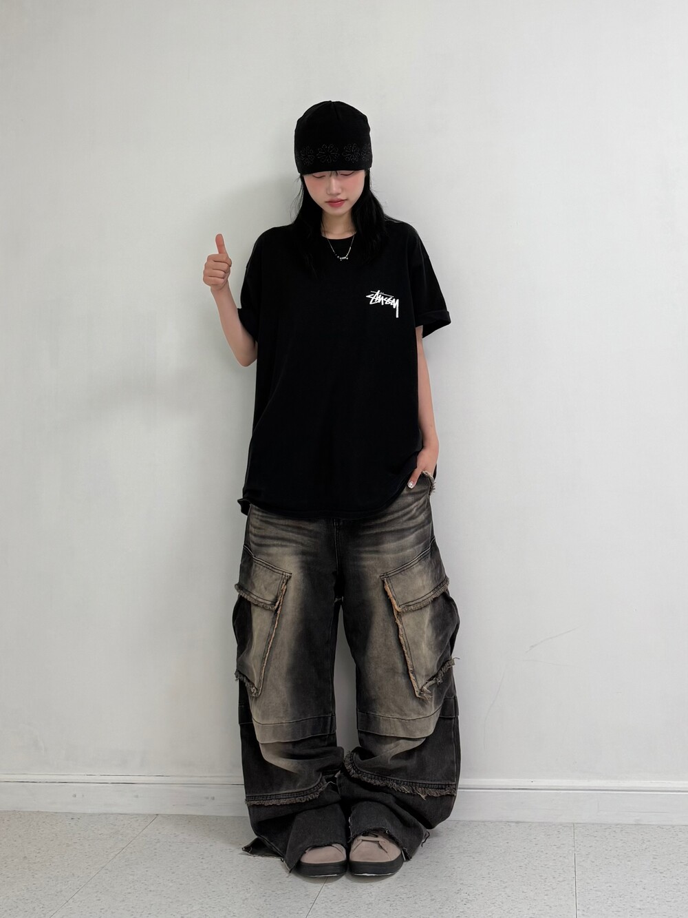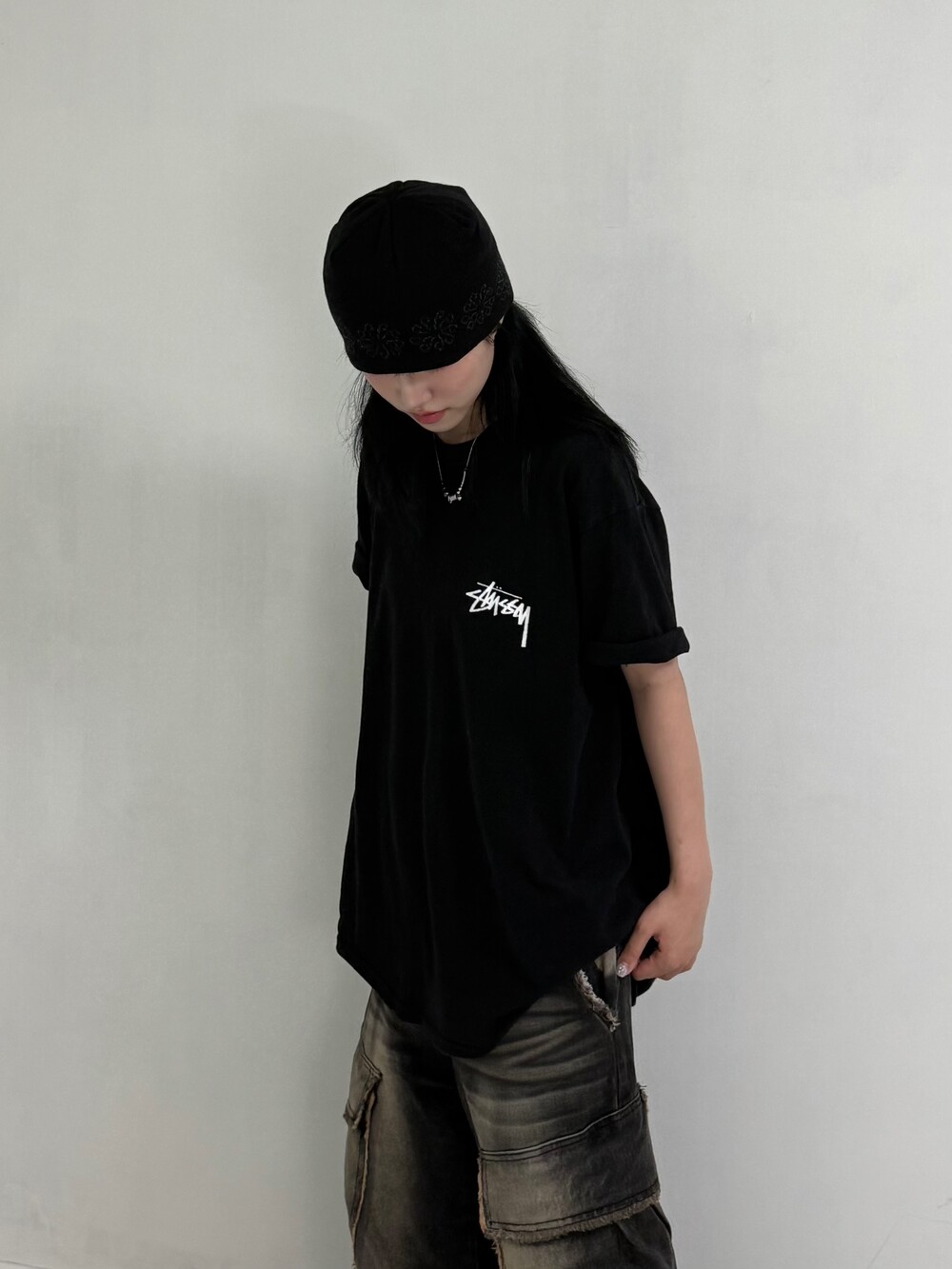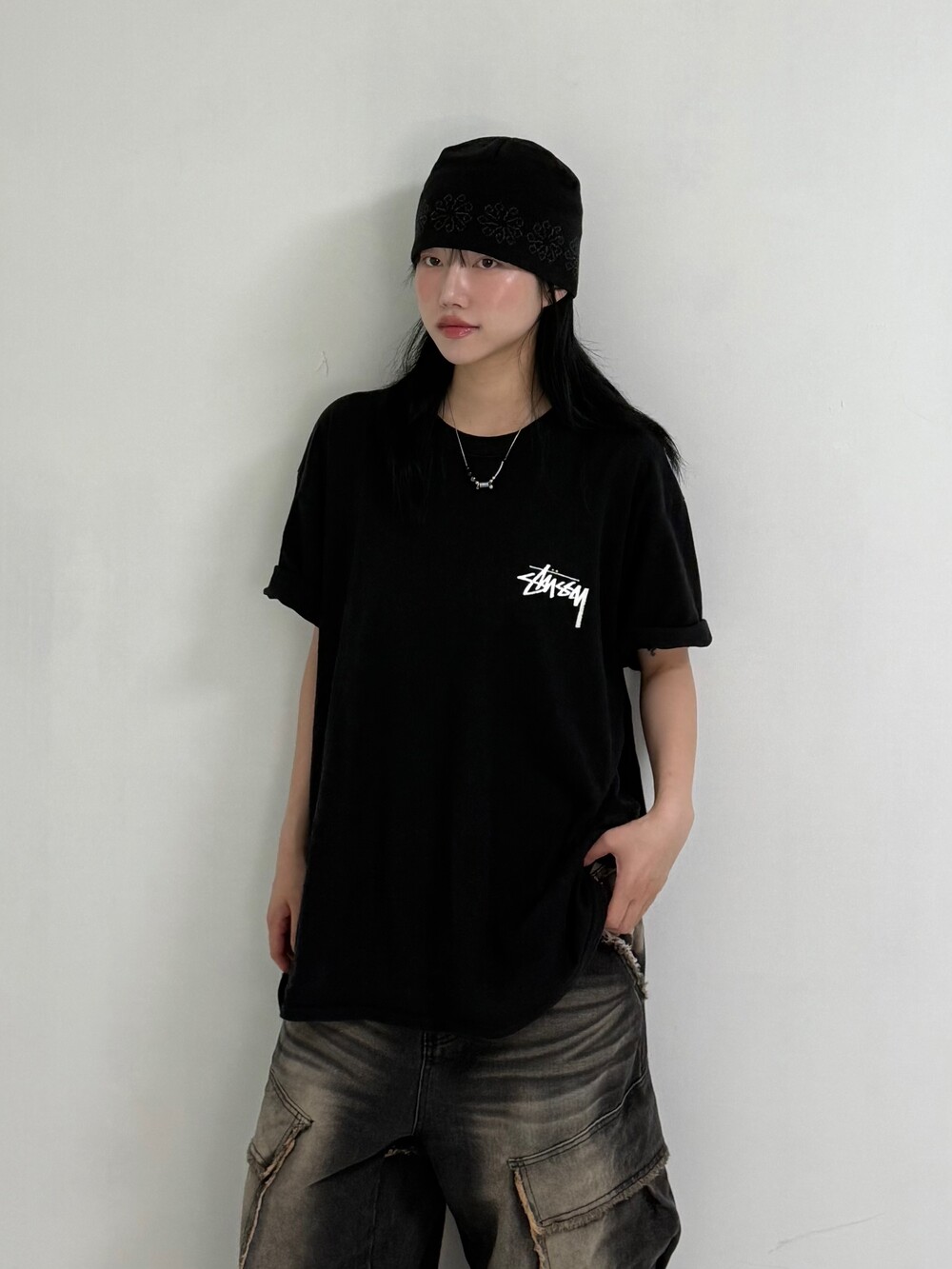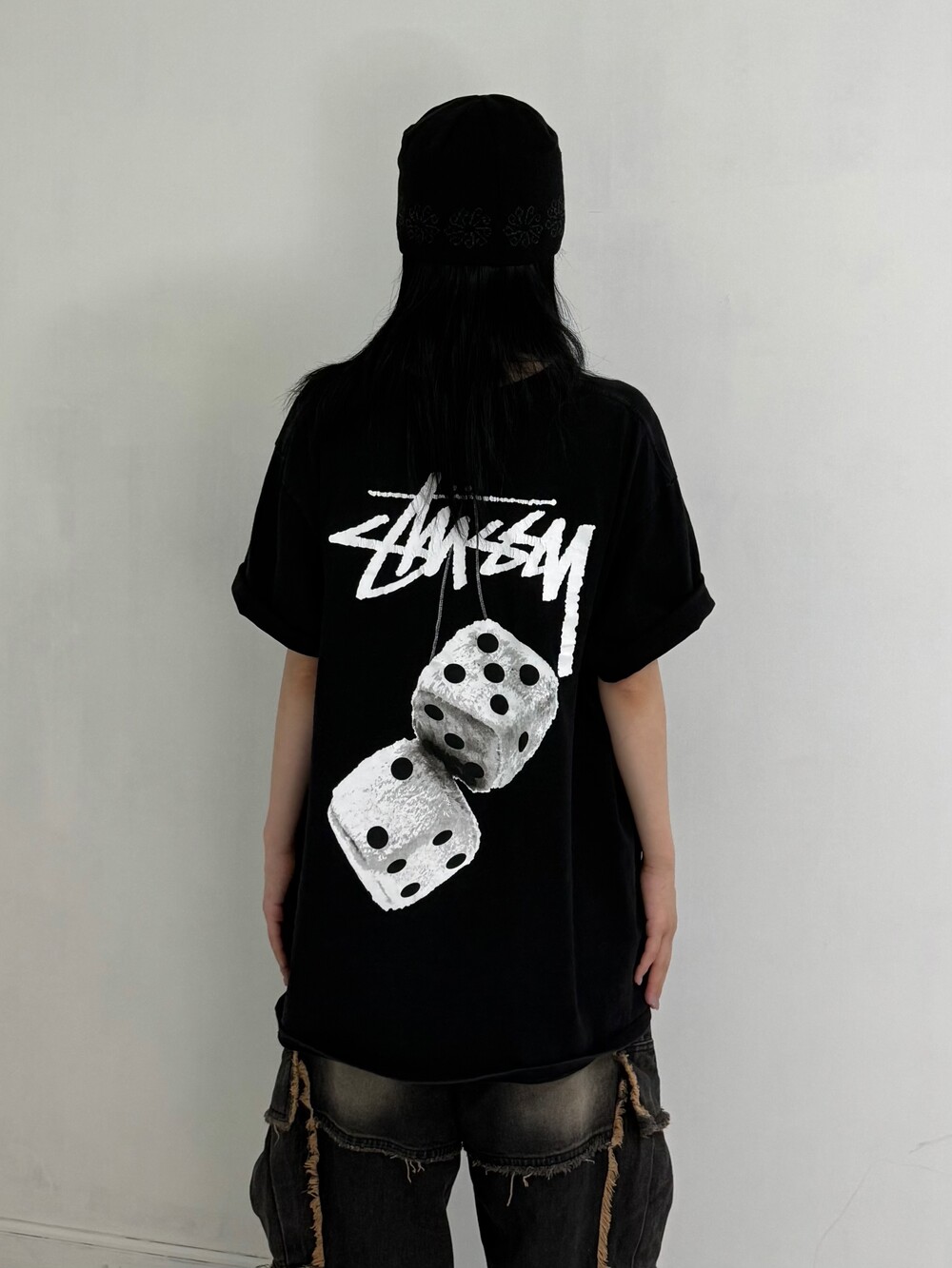 •스투시 fuzzy dice 반팔 입니다! 크림시세 20만원 후반대로 거래되고 있는 아이템이에요, 저처럼 소매 두단 접어주시면 아주 굿 ㅎㅎ