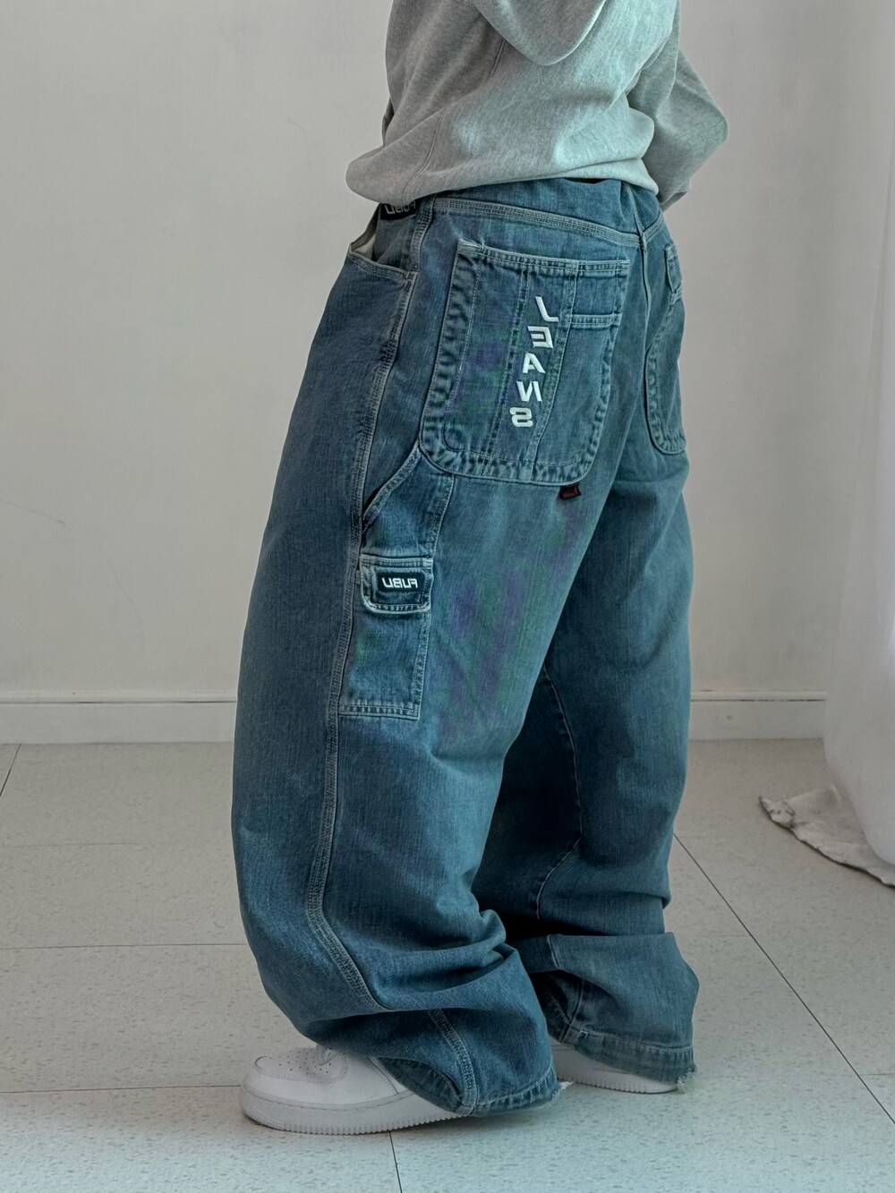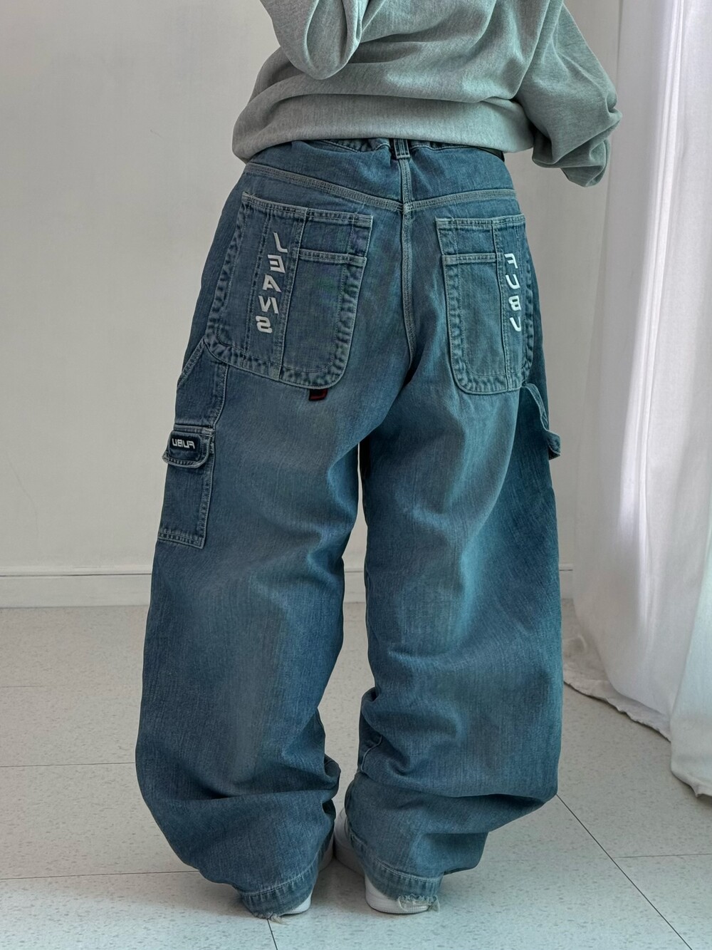 •후부 데님 카펜터 입니다! 와이드 후리추리 핏에 묵직한 느낌까지.. 진짜 넘 예쁜 제품이에요! 엉덩이에 후부 로고가 포인트에요!