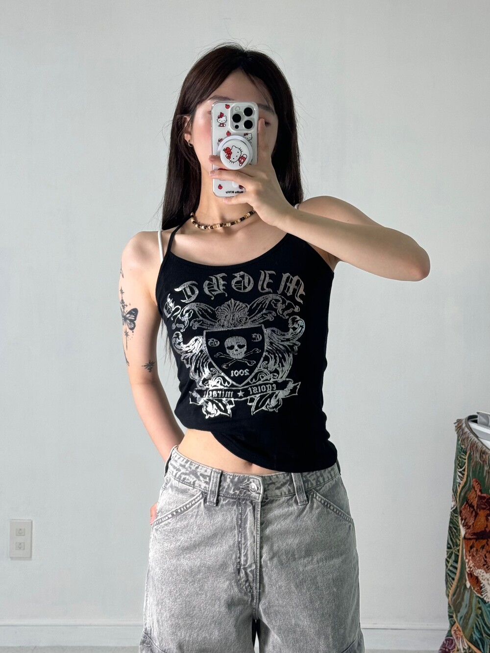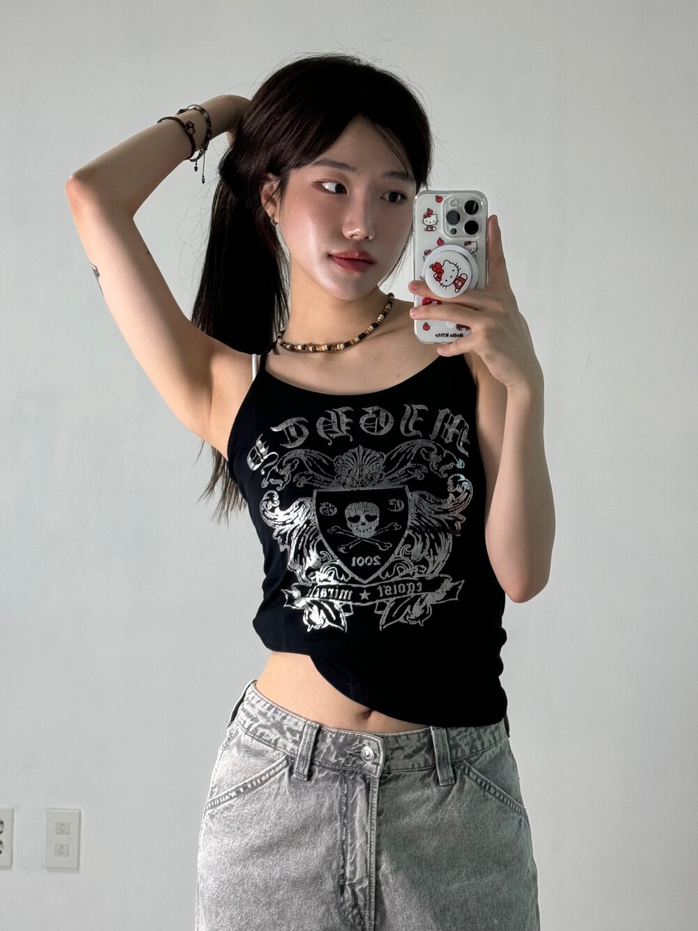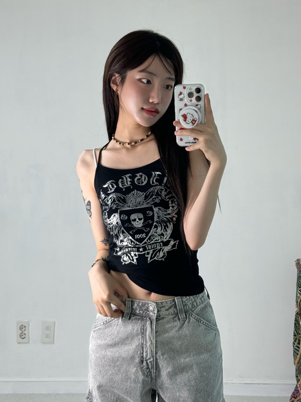 힙한 무드의 나시! 딱붙핏이라 핏도 예쁘구 앞에 프린팅이 넘 예뻐서 강추 드립니다👍🏻