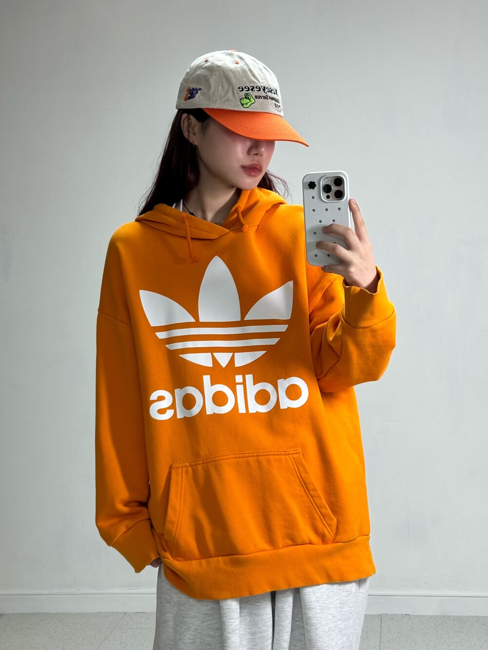 •왕아방 사이즈의 귀여운 오렌지 컬러 후디에요! 빅파이어버드 디자인이 아주 매력적이죠>,< 묵직한 핏감이라 핏감도 넘 예쁘고 포인트로 싹 입어주시면 아주 굿 입니다👍🏻