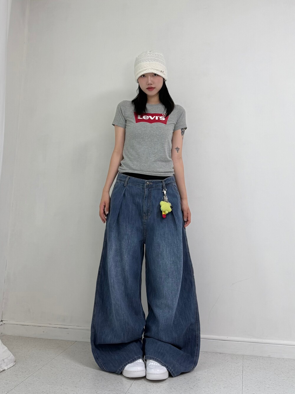 •허리 핀턱 디테일과 와이드한 핏, 얇은 데님! 여름에 무조건 입어주셔야합니다.. 완전 강추템-