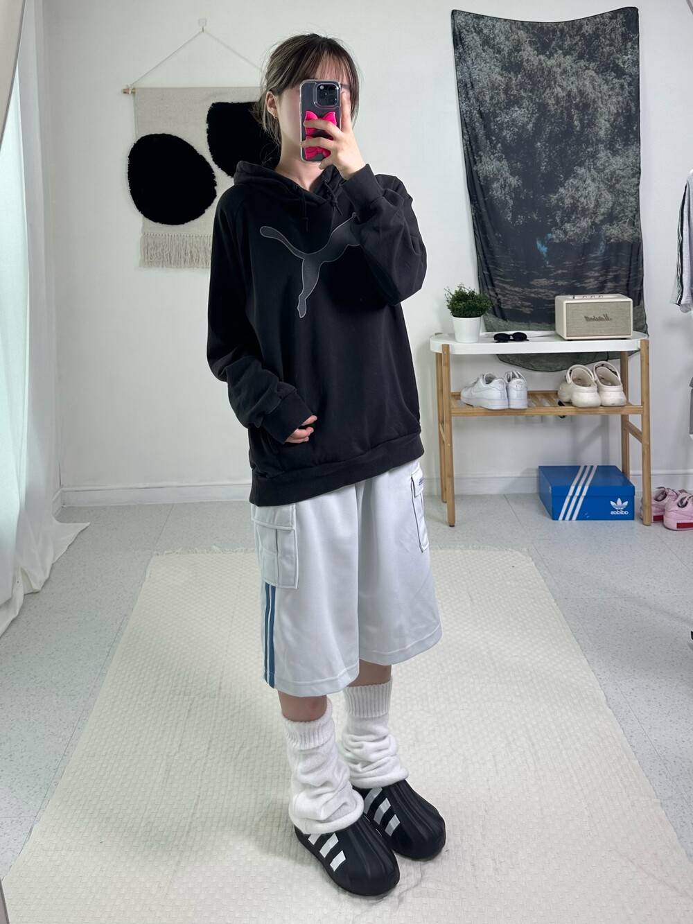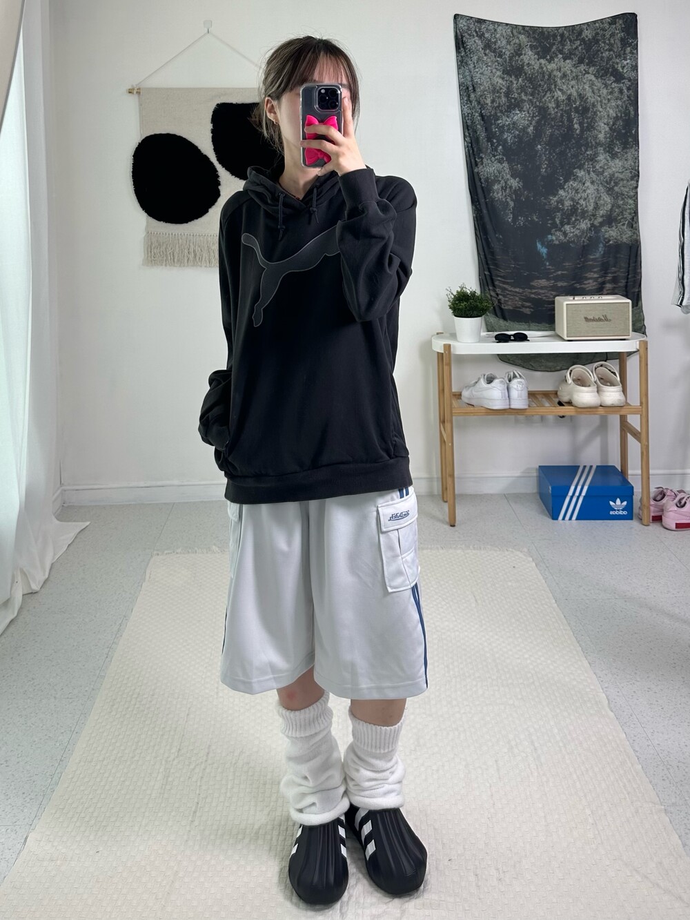 •사이즈와 핏감이 너무 마음에 들었던 올드스쿨 퓨마 후드- 후드 안감이 메쉬원단으로 되어 있어 더욱 디테일이 돋보였던 제품이고, 퓨마 로고가 대왕만하게 있어서 더 귀여운거 있죠<3 착한가격으로 차차 가을,겨울 준비하시라고 업데이트 합니다아🖤✌🏻