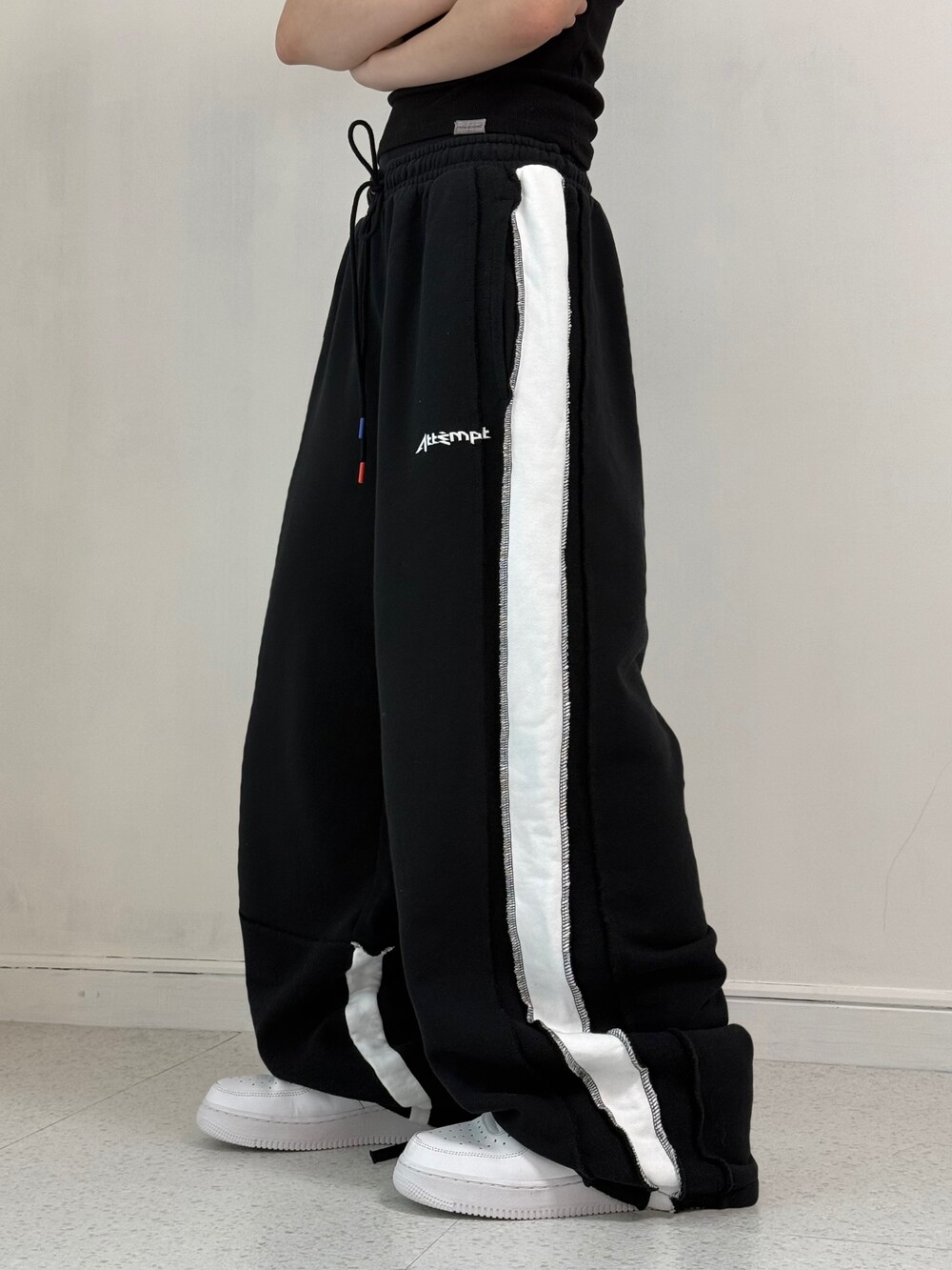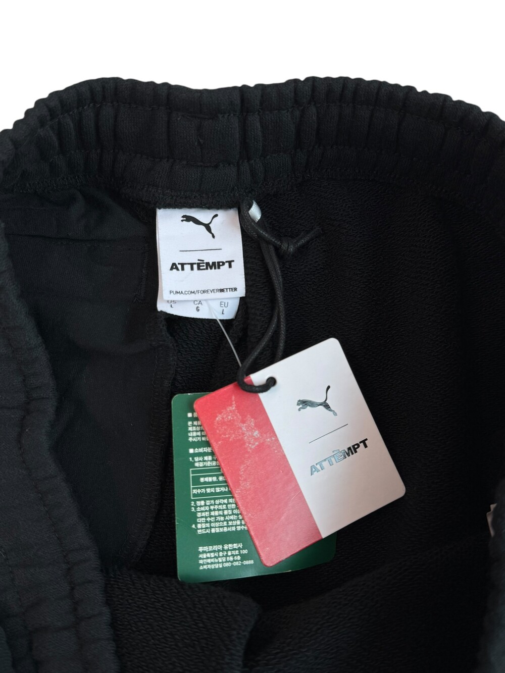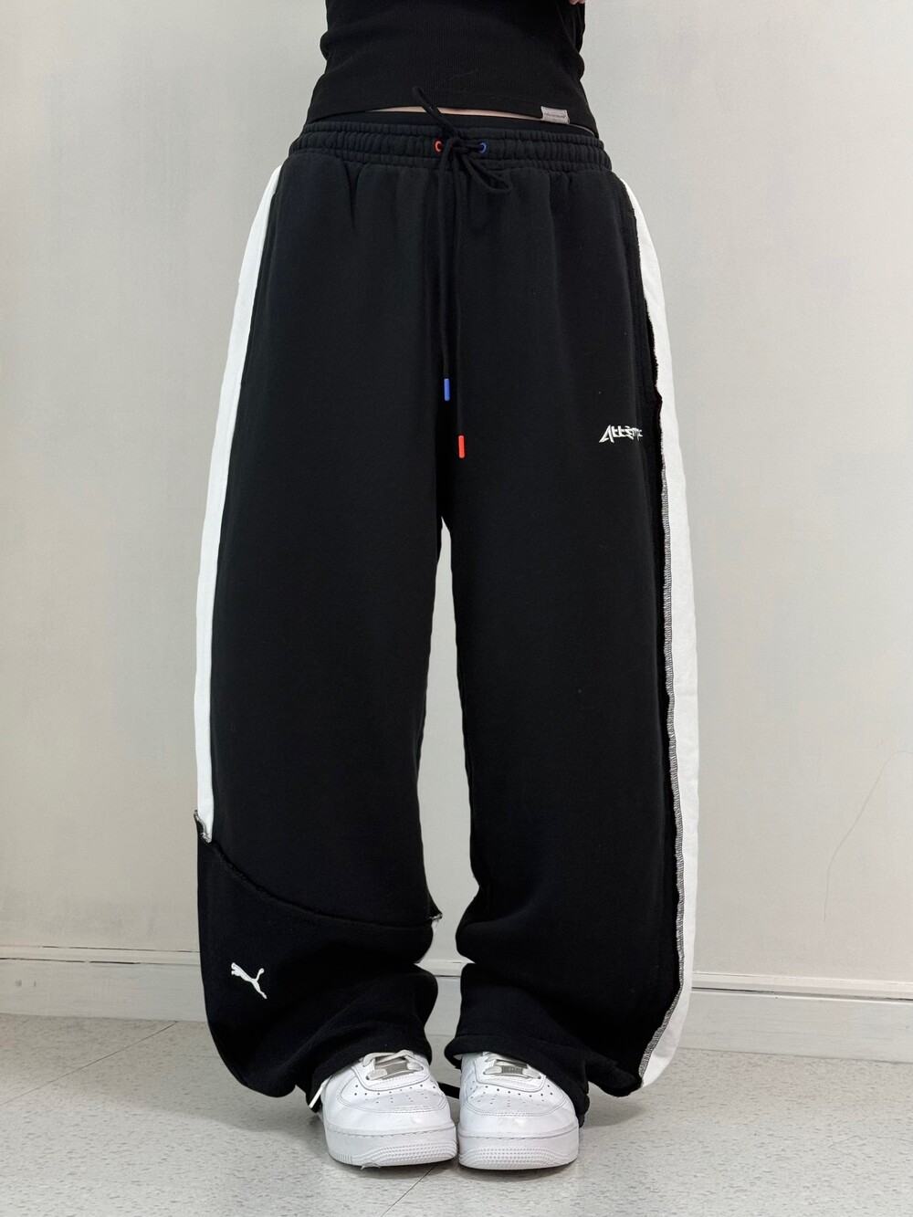•푸마와 어템트 콜라보 팬츠 입니다! 깔끔한 흰검 조합이라 데일리로 입어주시기 좋고 밑단 푸마 로고가 포인트..><