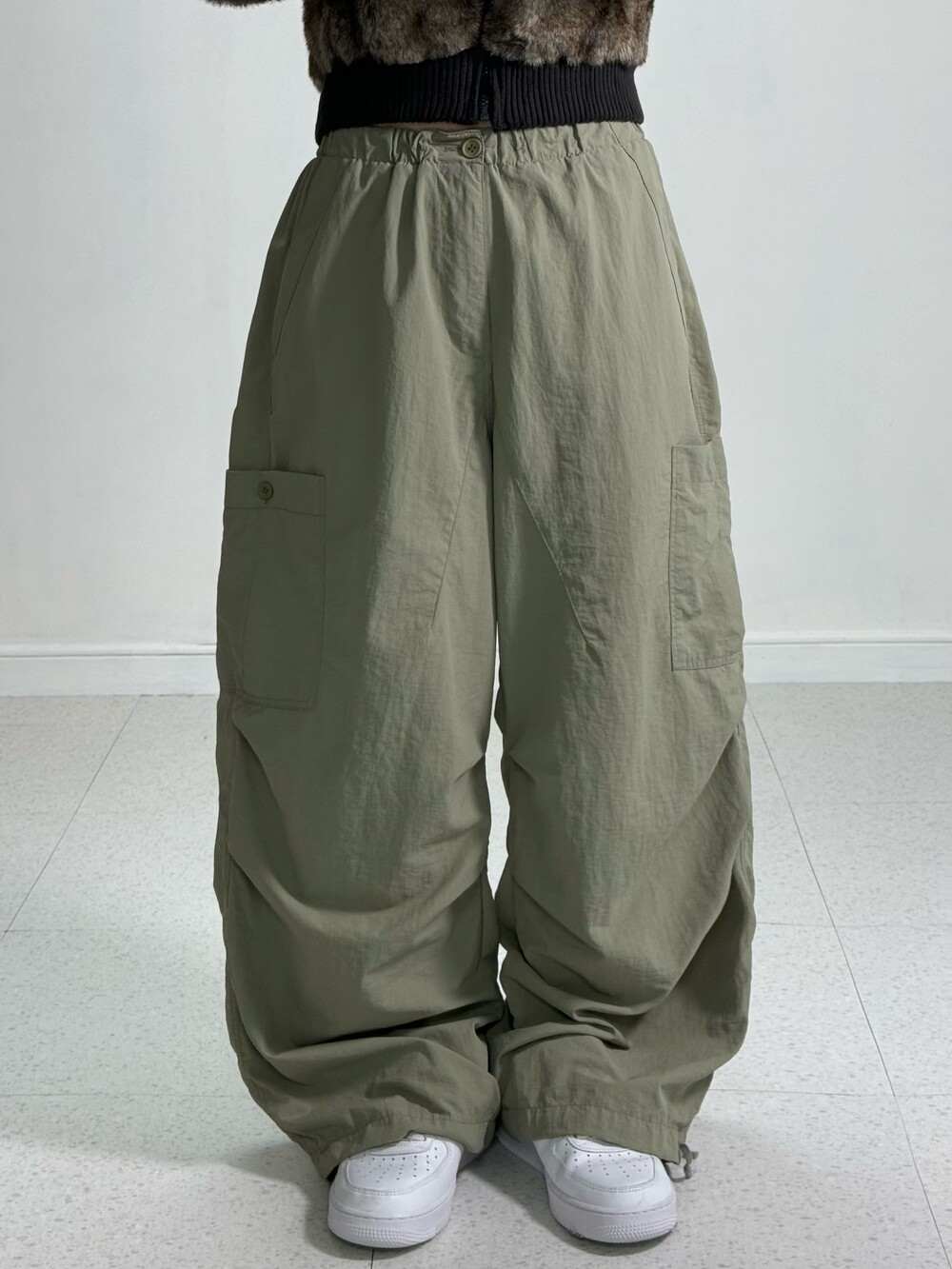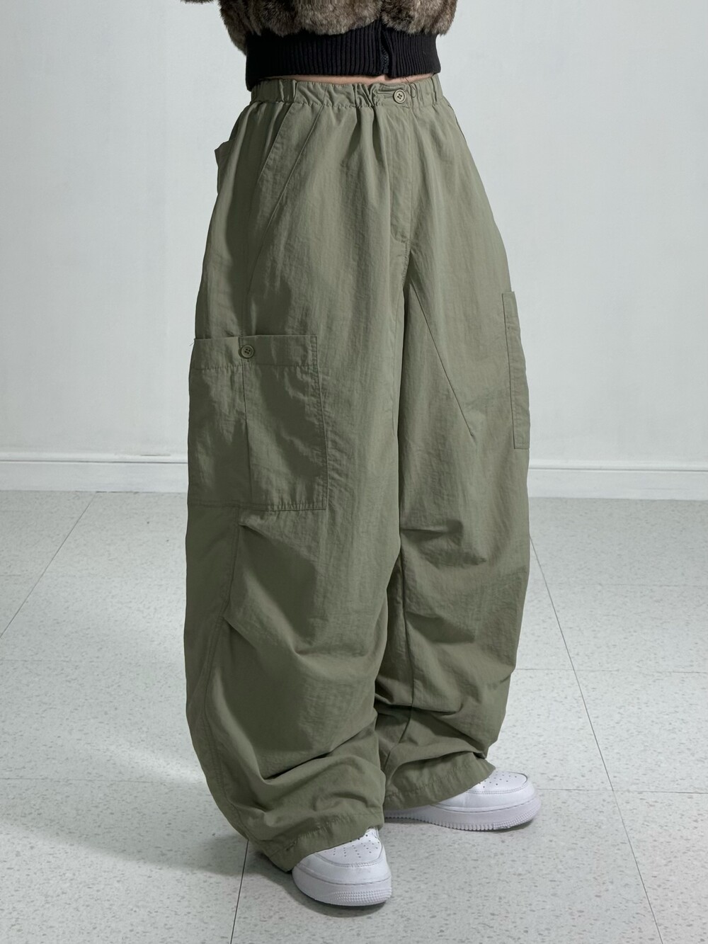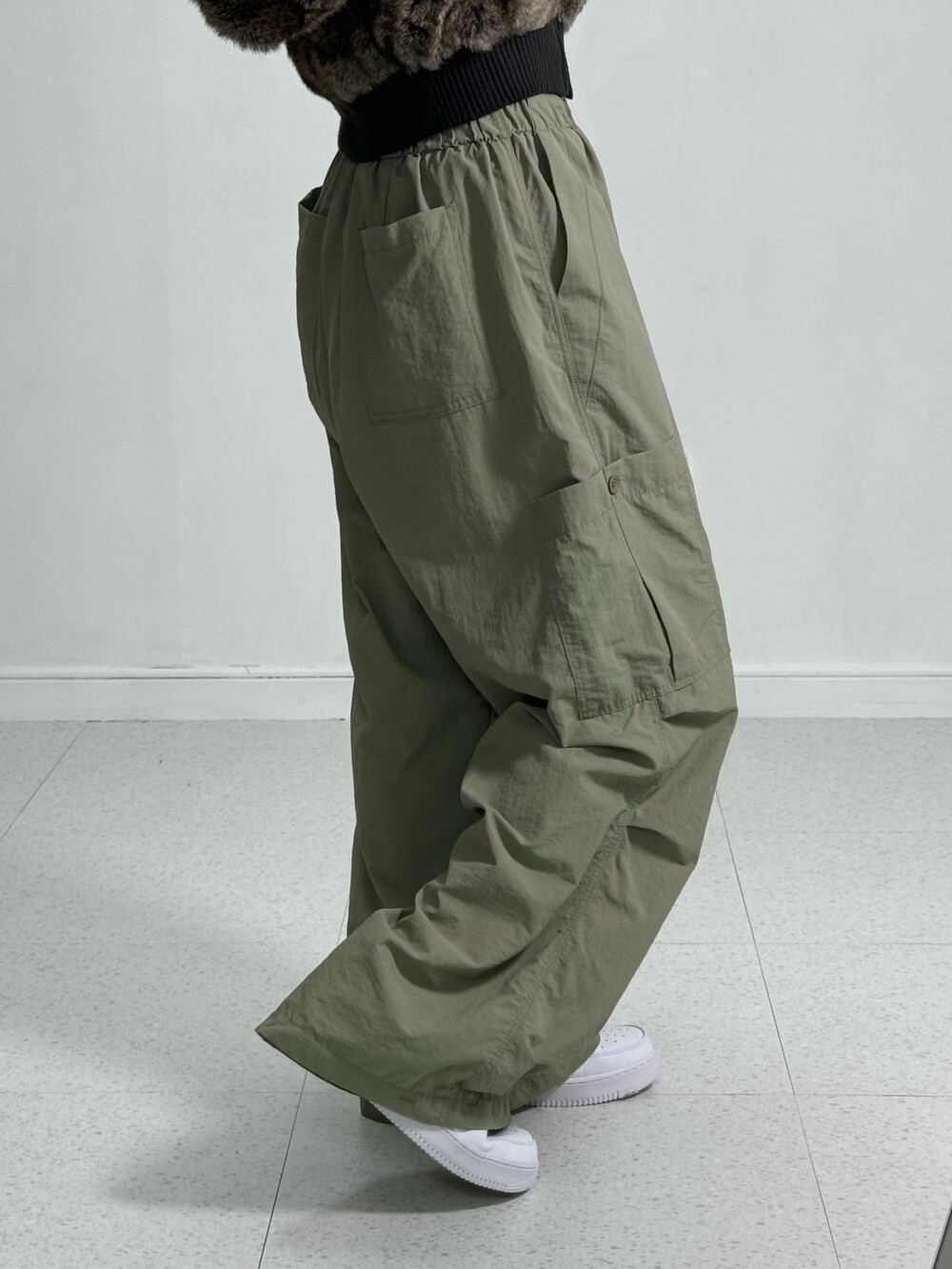 •나일론 카키카고팬츠-! 사이드에 빅포켓 디자인 들어가있어서 더 아방방해보이는 효과까지-! 밑단 조거연출도 가능하셔요ㅎㅎ 허리는 밴딩이라 아주 착용감 굿 루즈핏이 예쁘답니닷
