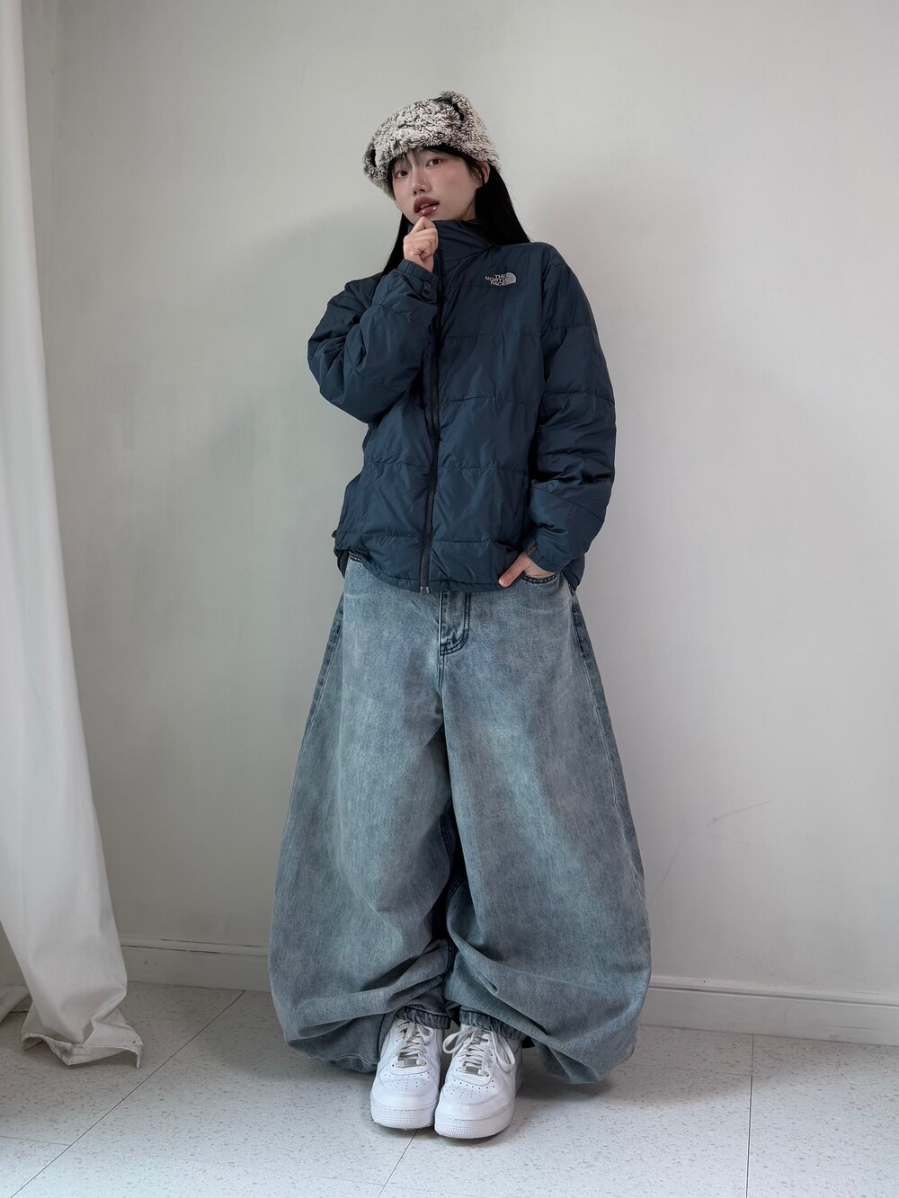 •애드오프의 워싱 벌룬 팬츠에요! 기장이 긴 편이라 걱정하시겠지만 밑단이 좁아서 끌리지 않게 착용가능하세요ㅎㅎ 디자인도 독특하고 핏은 넘 예쁜 벌룬데님.. 진짜 사랑이돠.. . ㅋ