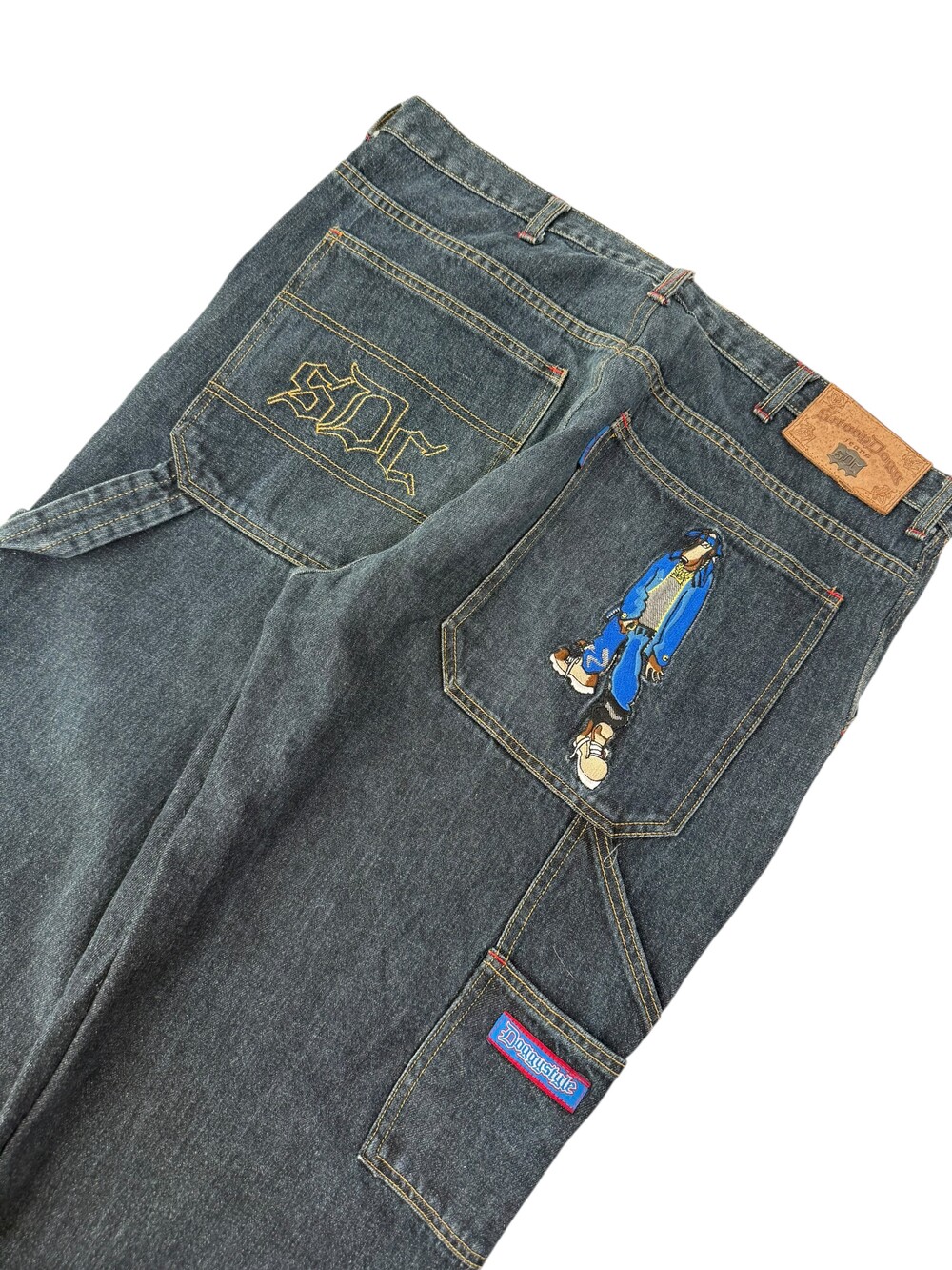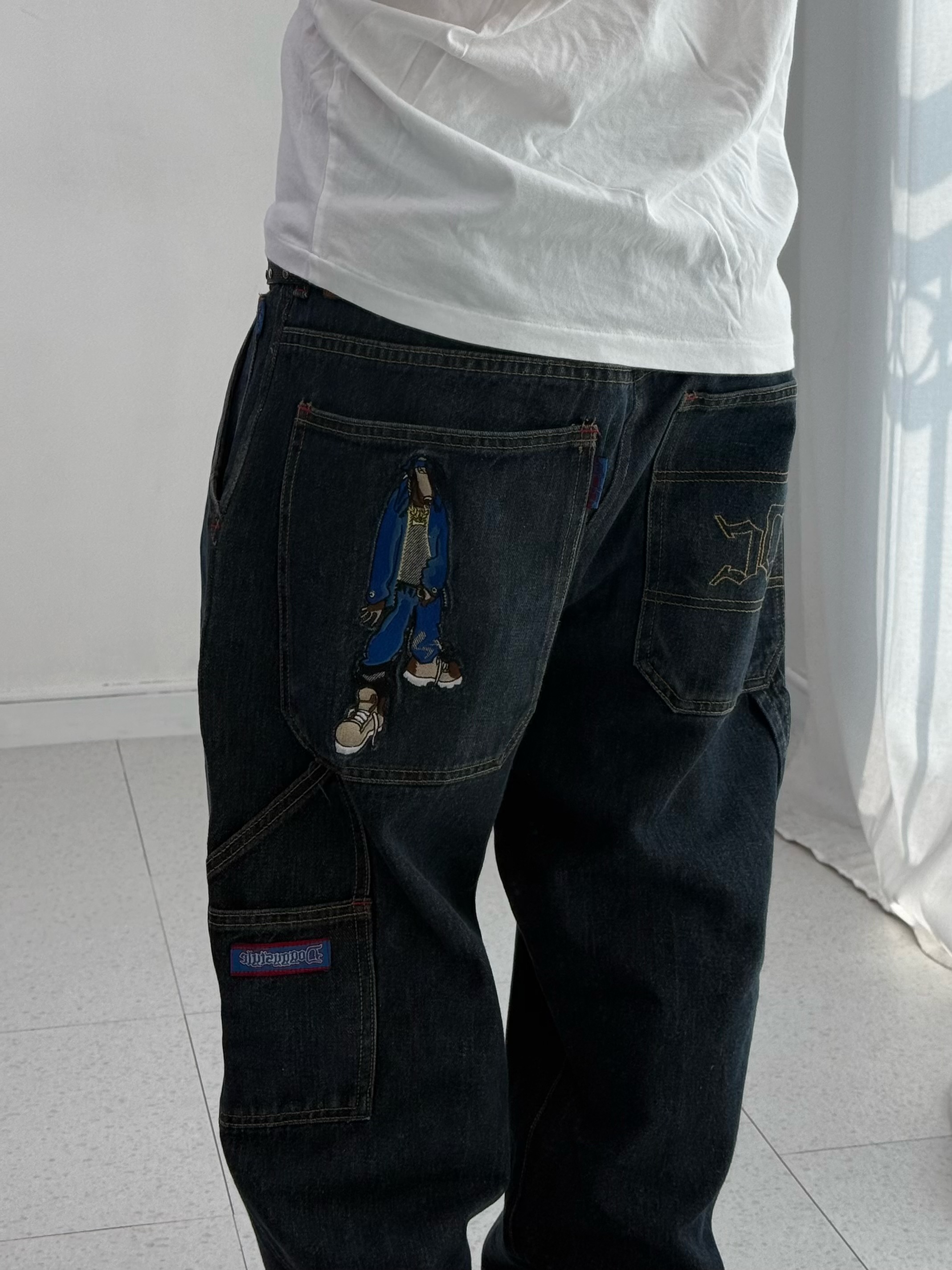 •스눕독 엠브로이드 데님 팬츠 입니다! 전부 자수 디테일에 엉덩이가 무진장 멋드러져서,, 멋쟁이가 꼭 가져갔음 좋겠습니다..