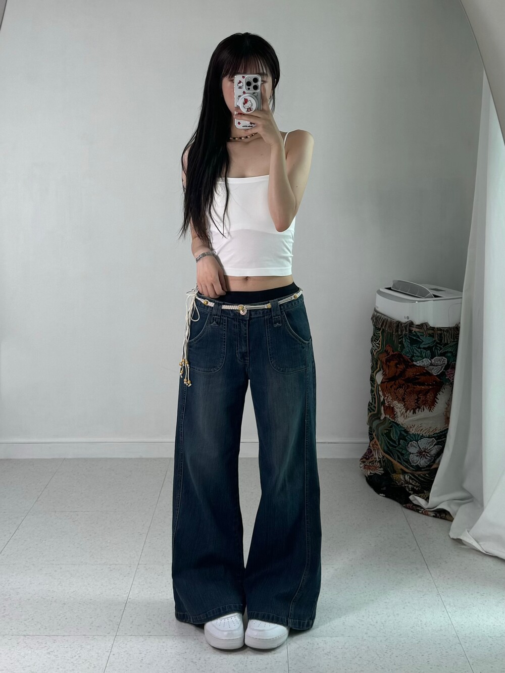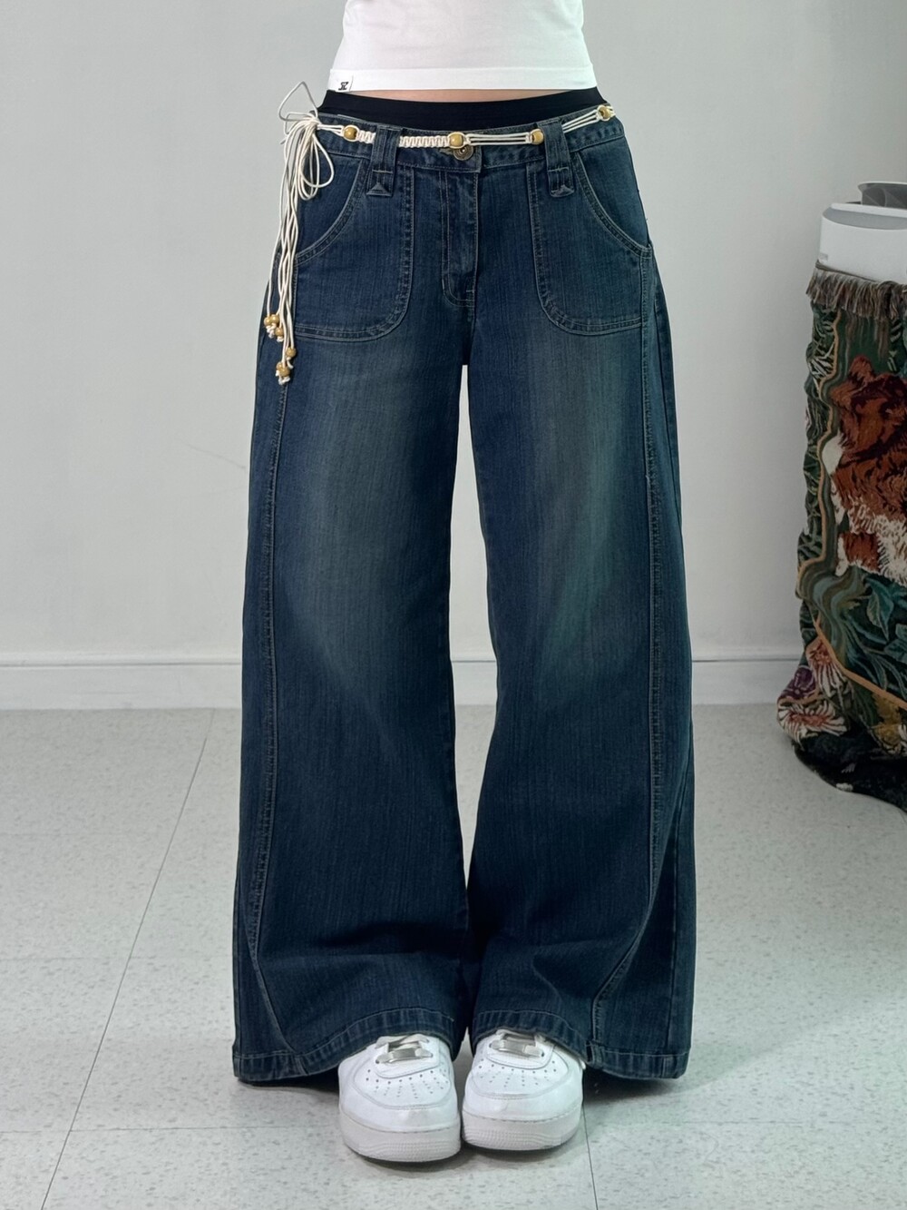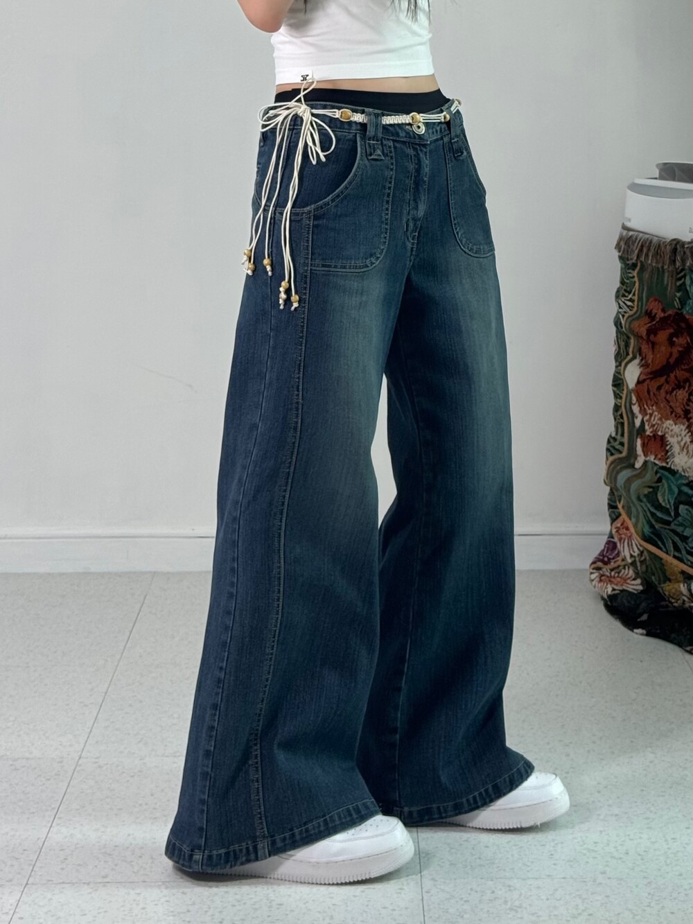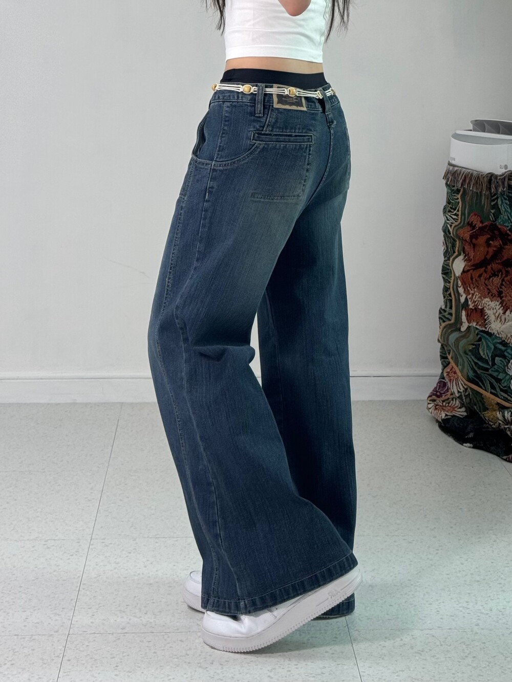 •로우라이즈로 착용해주는 와이드데님팬츠에요! 하체커버에 좋은 아이템이랍니다!