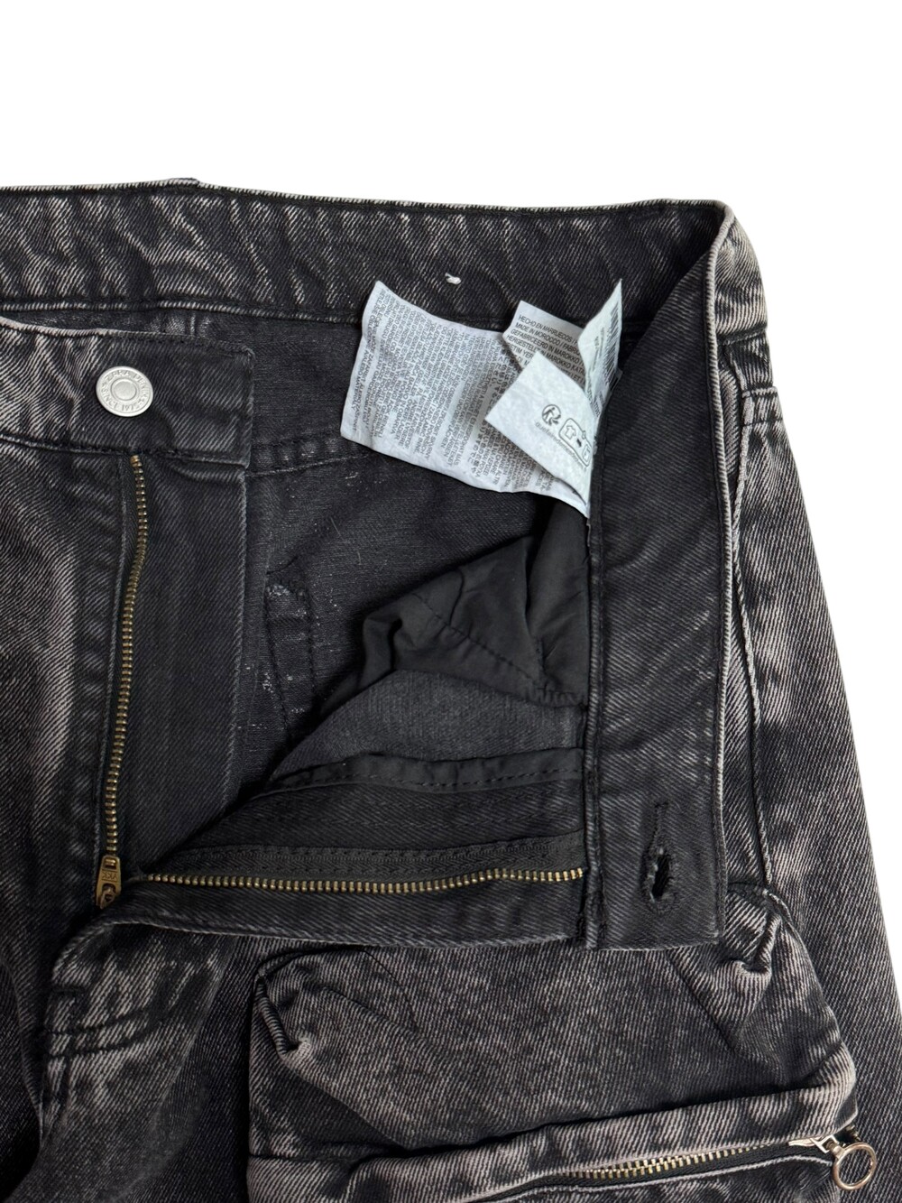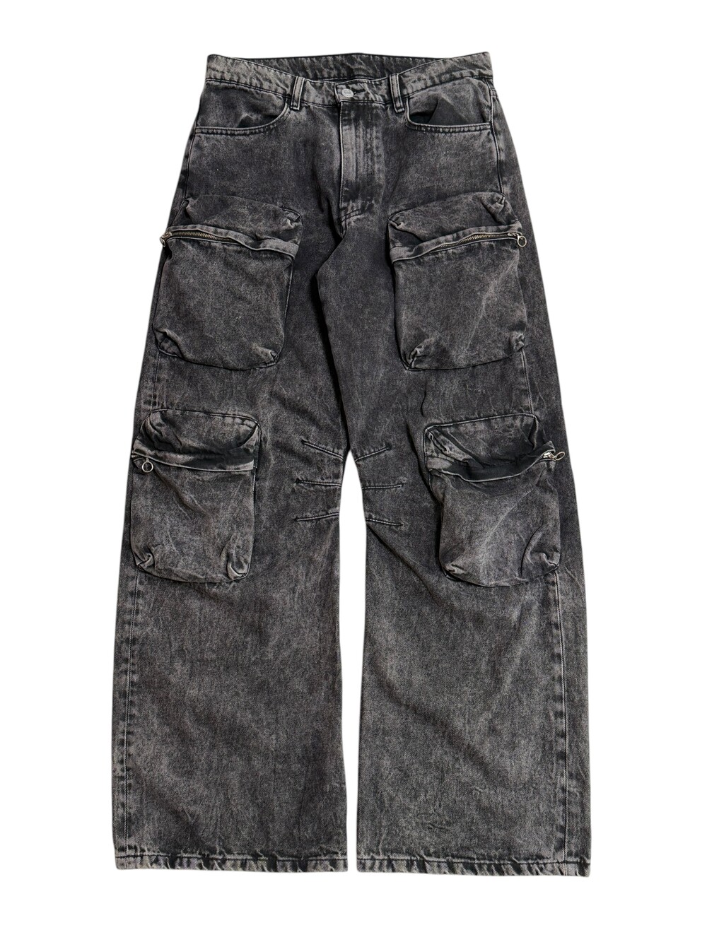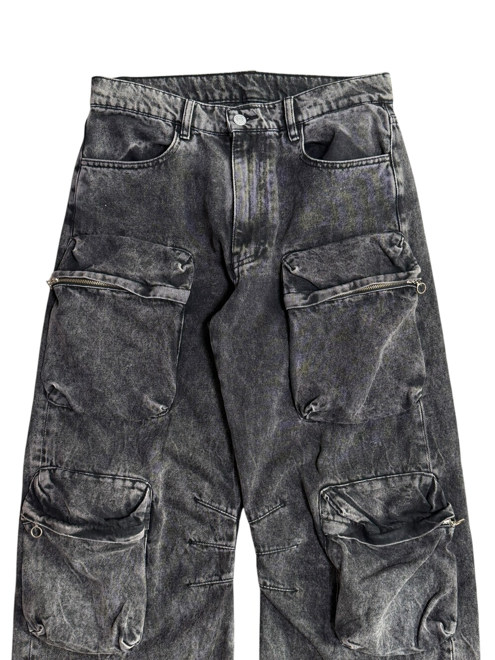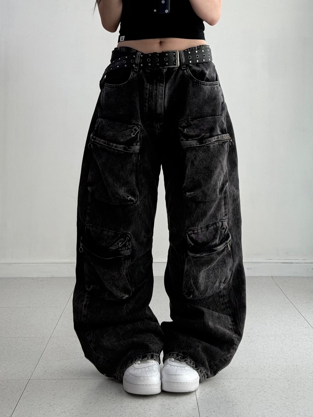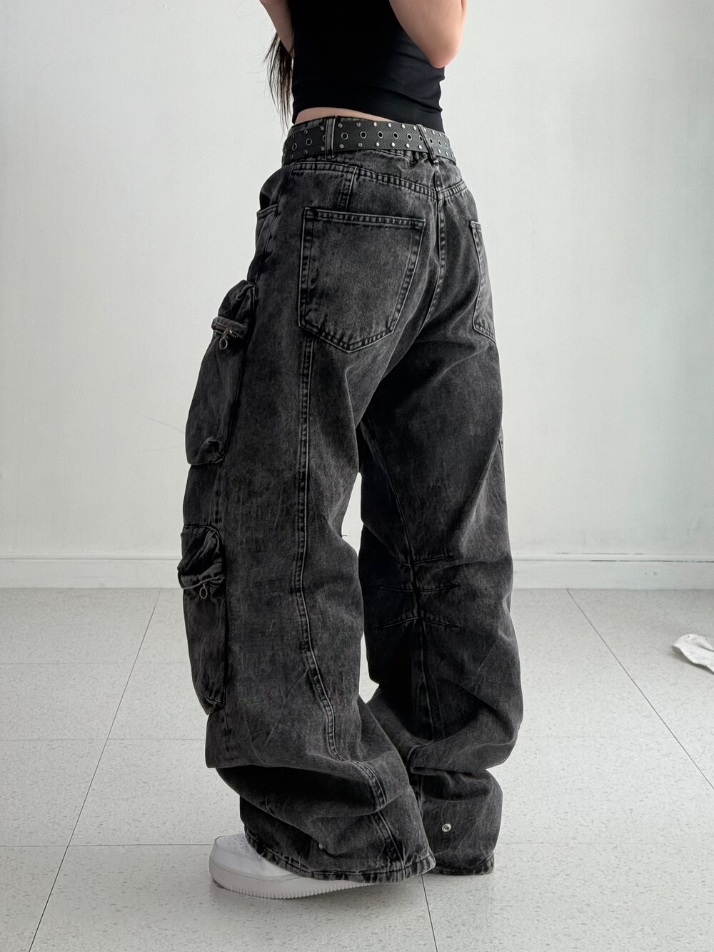 Black washing denim cargo pants