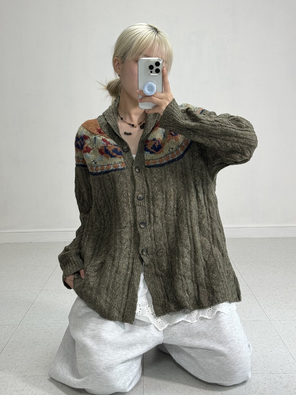 •톤다운 된 카키컬러와 빈티지스러운 디자인까지- 겨울에도 귀여운 느낌 낭낭하게 즐기실 수 있는 가디건이에요! 단추 몇개 풀어주시면 루즈한 느낌으로 착용해주시기 좋아요💕