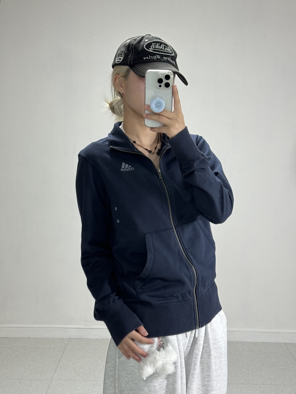 •데일리하게 착용하기 좋은 네이비 에센셜 로고 집업이에요! 코튼원단이라 착용감도 좋고 패딩안에 날 풀리면 단독으로, 지금은 패딩 안에 겹겹이 입어주세요!