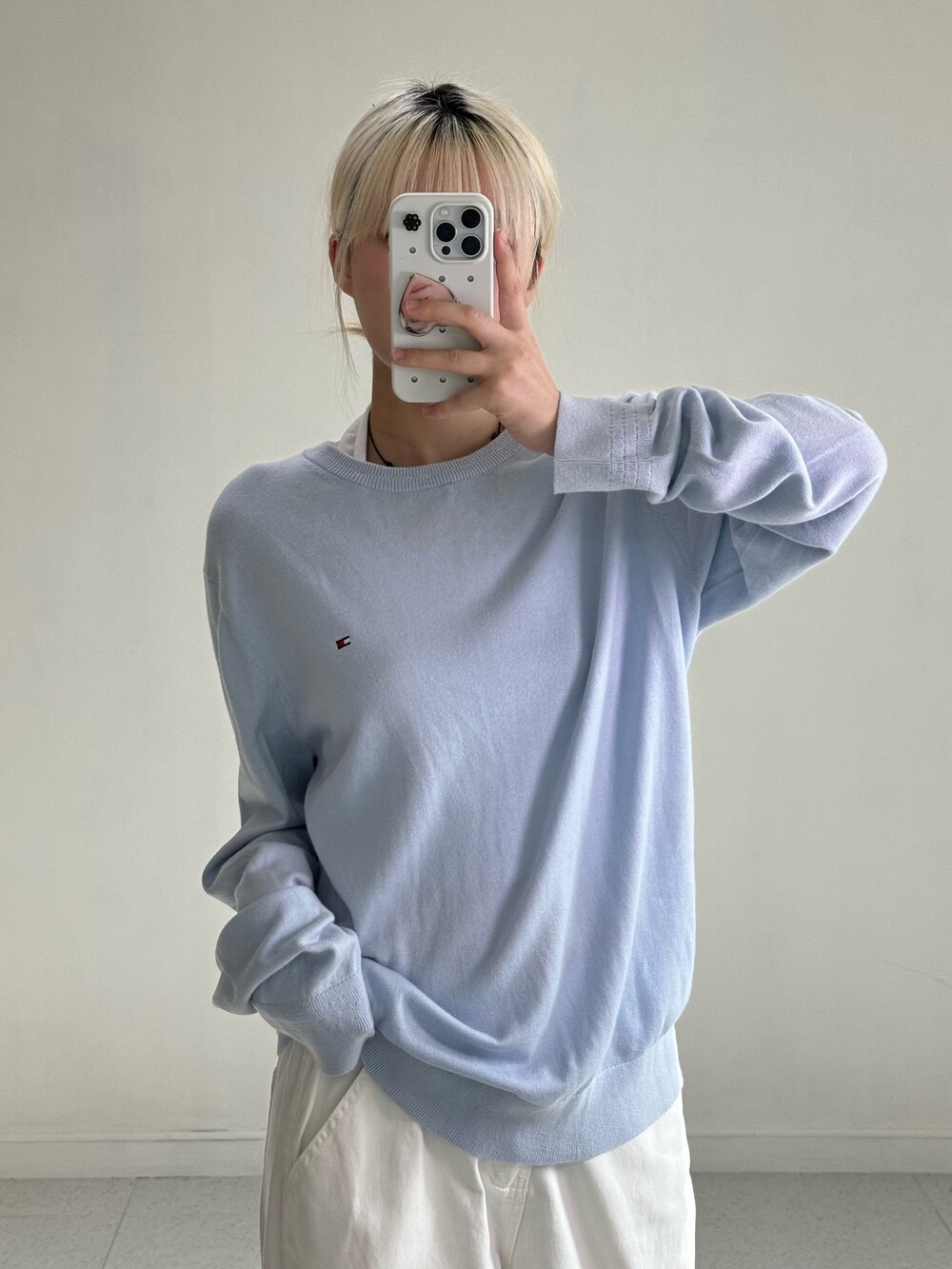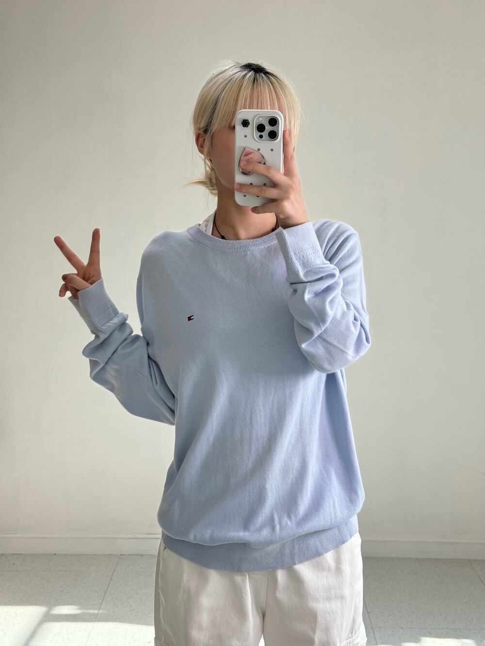 •보자마자 솜사탕 시나모롤이 생각나는 니트랍니다🖤 루즈 낭낭한 핏감에 멋스럽게 툭 입어주시기 좋은 제품이라 너무 추천드리고 싶어요! 사이즈가 널널해서 66-77사이즈 분들도 충분히 착용가능하셔요 😎