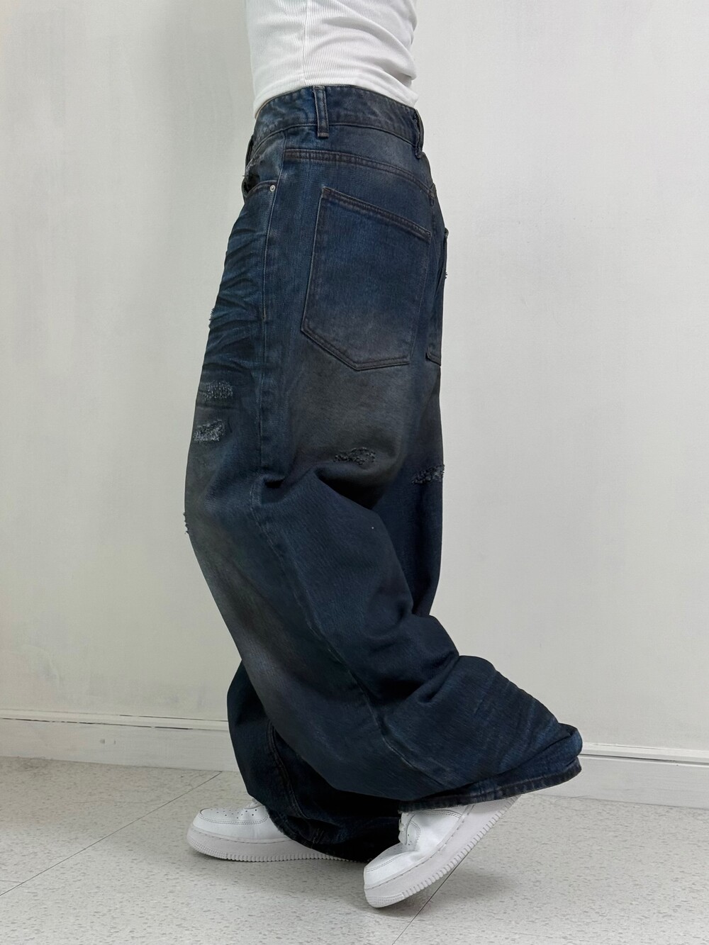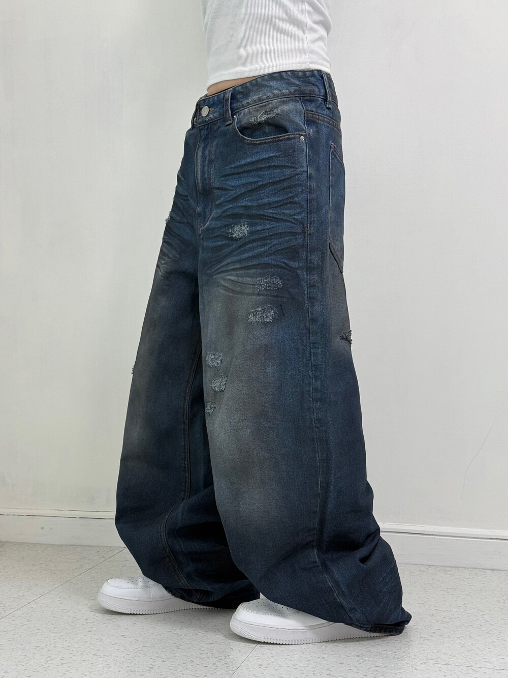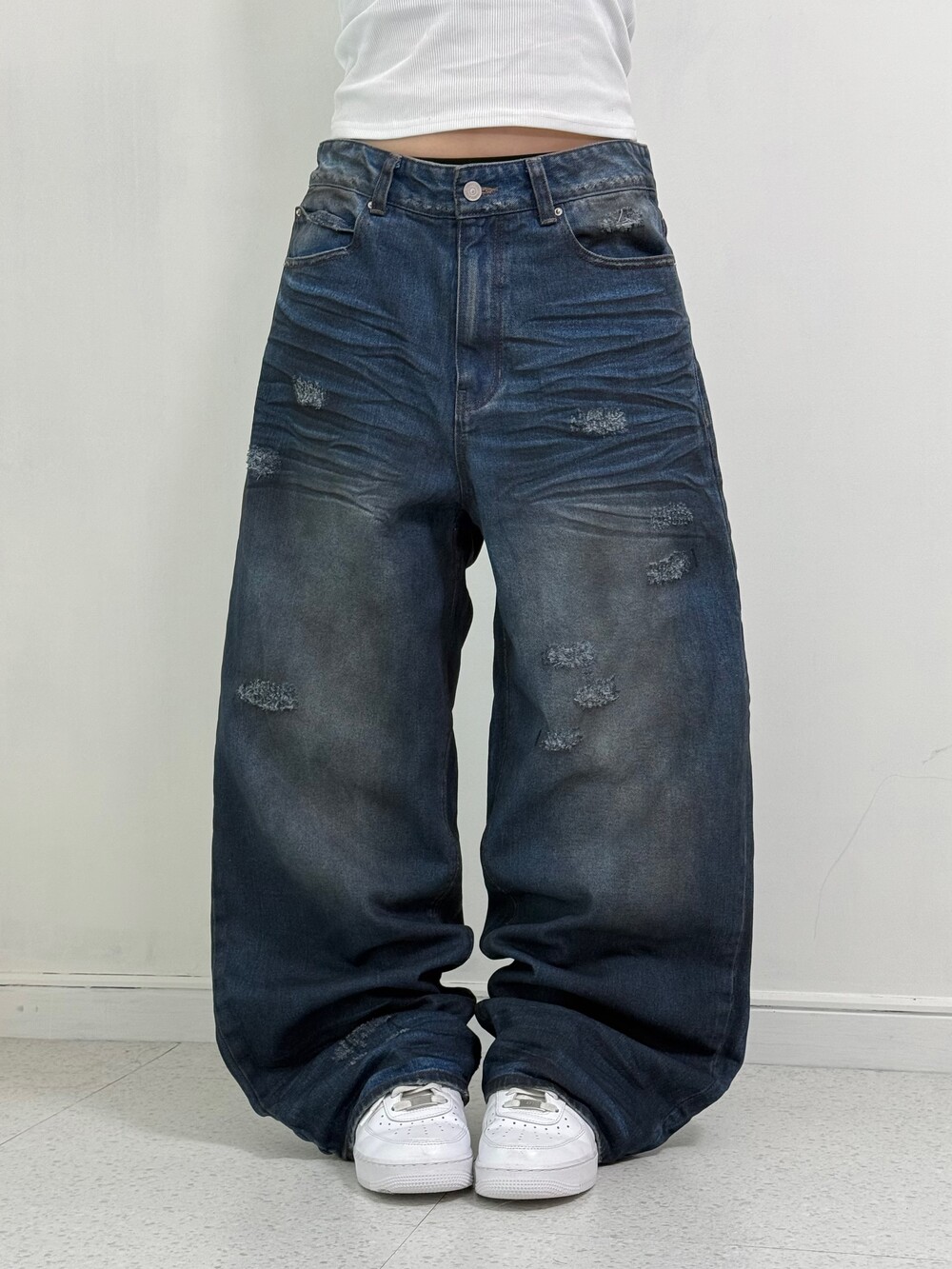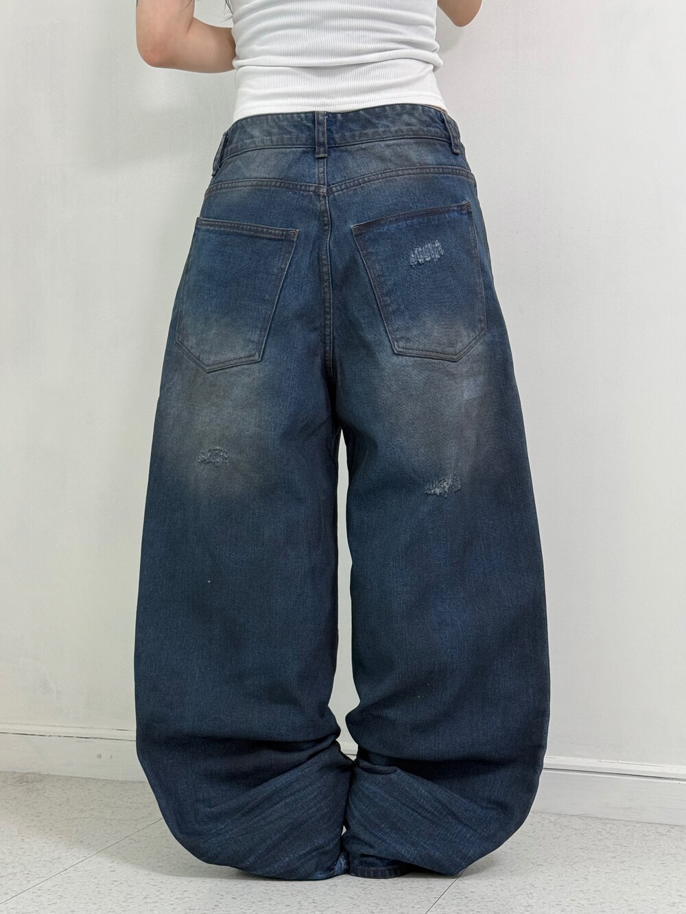 •워싱+데미지 디테일이 매력적인 요녀석ㅎㅎ 피팅할때 위에 흰색 나시만 입어줬는데도 왠지 멋스러운 핀터언니가 된 기분이더라구요ㅋㅋ. 역시 예쁜팬츠는 다다익선