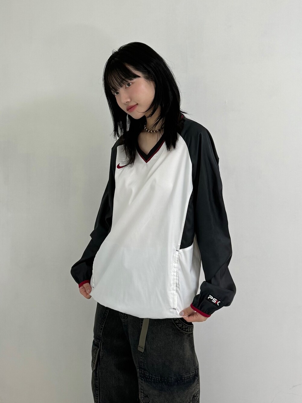 •나이키 화이트 버건디 차콜 조합의 웜업 입니다- 개인적으로 밑단 시보리와 스우시 로고가 버건디인게 킥 이라고 생각합니다..^^