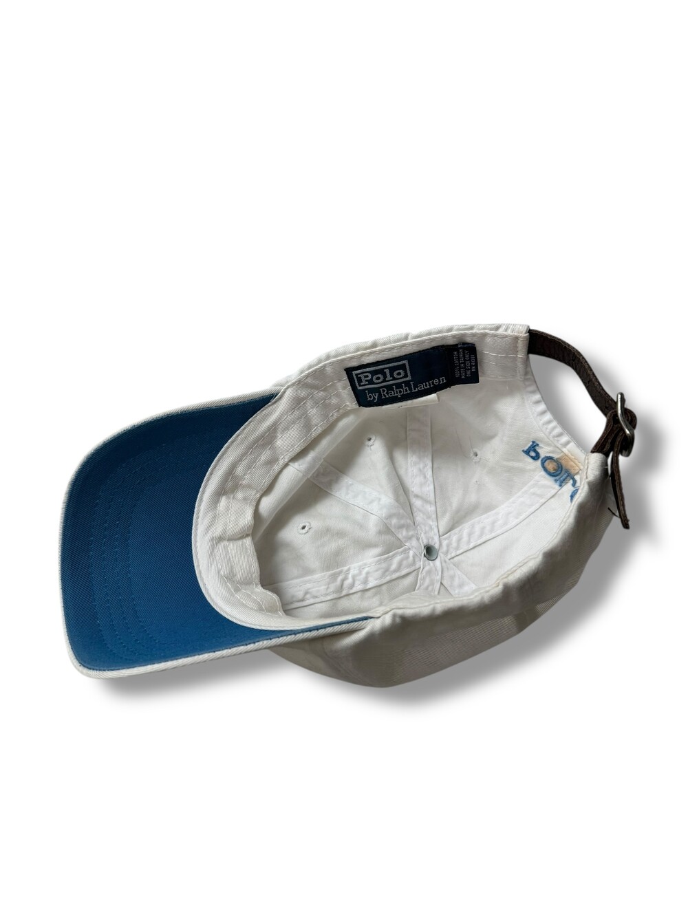 폴로 화이트+스카이블루 조합의 캡 입니다. 깔끔하게 슥 착용해주시기 좋아요!