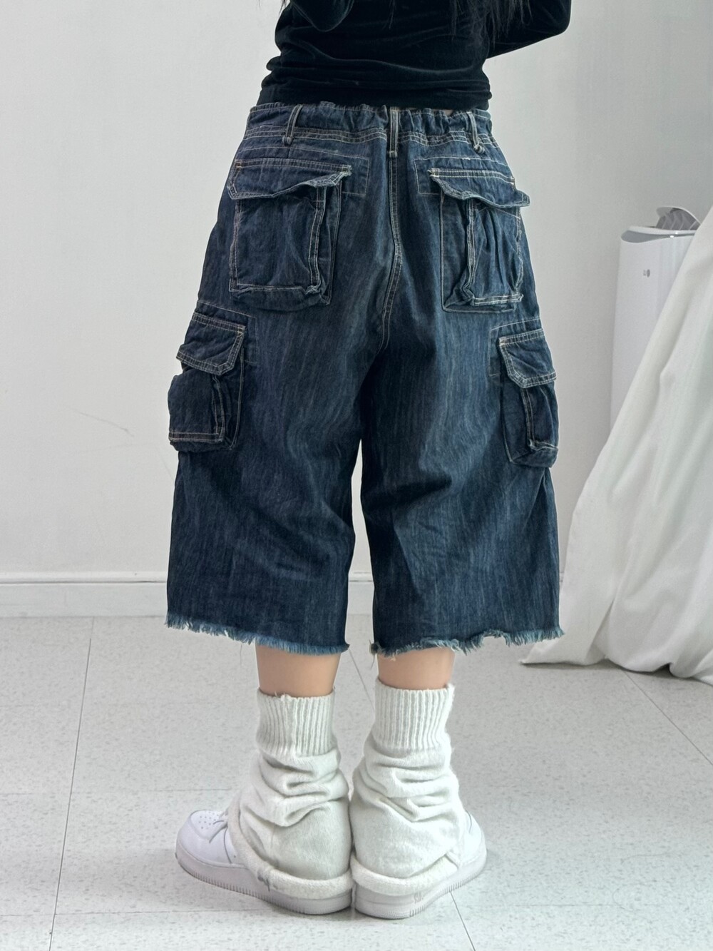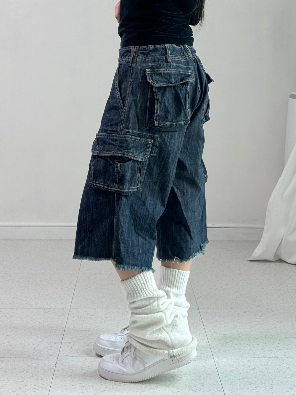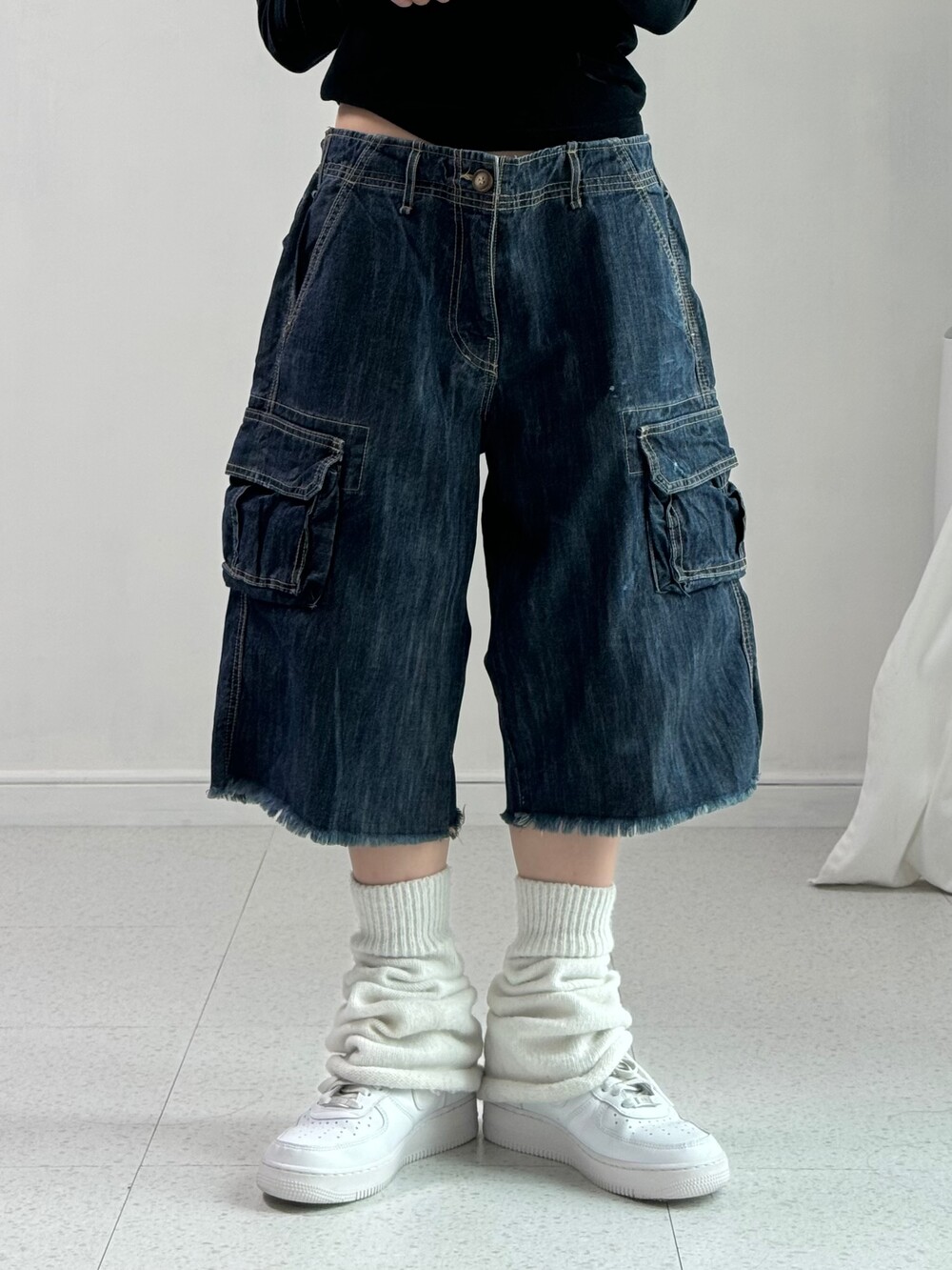 •밑단 데미지 컷팅이 매력적인 빈티지 데님 버뮤다 입니다! 와이드루즈한 핏이라 말해뭐해 핏까지 넘 예쁘답니다ㅎㅋㅋ🖤