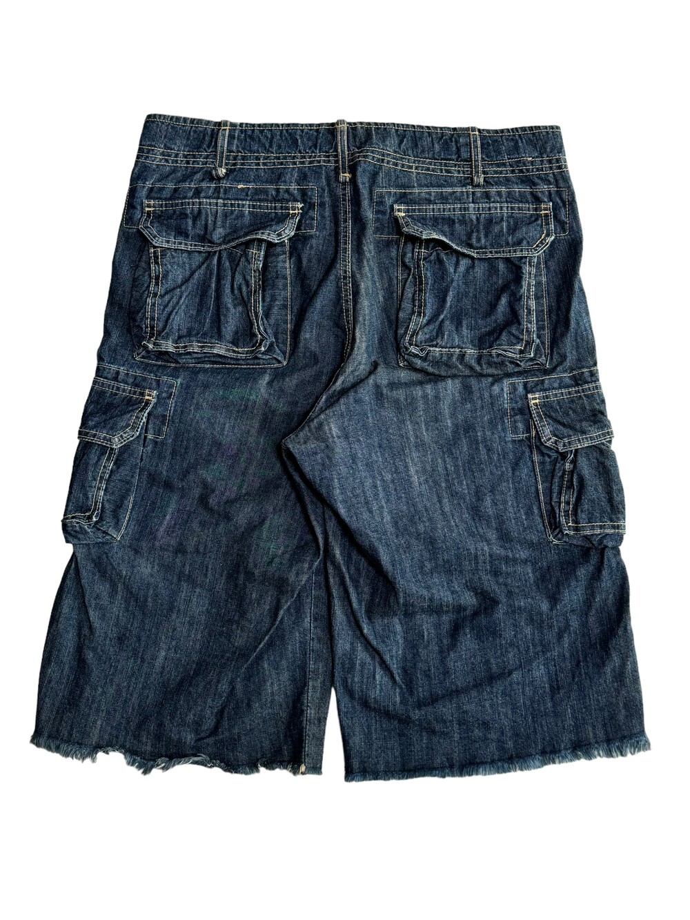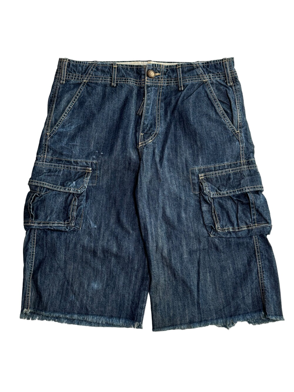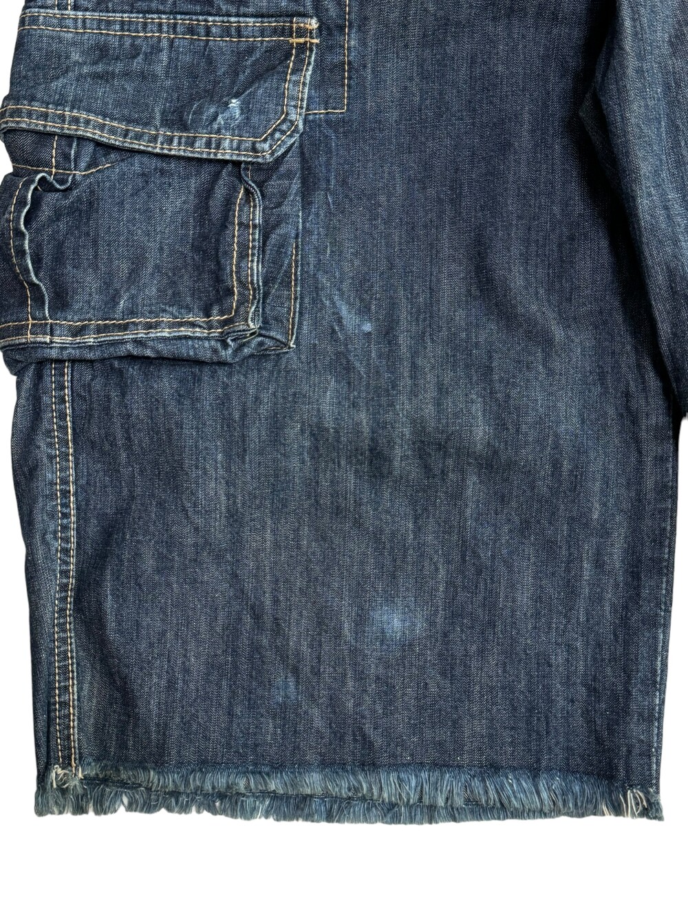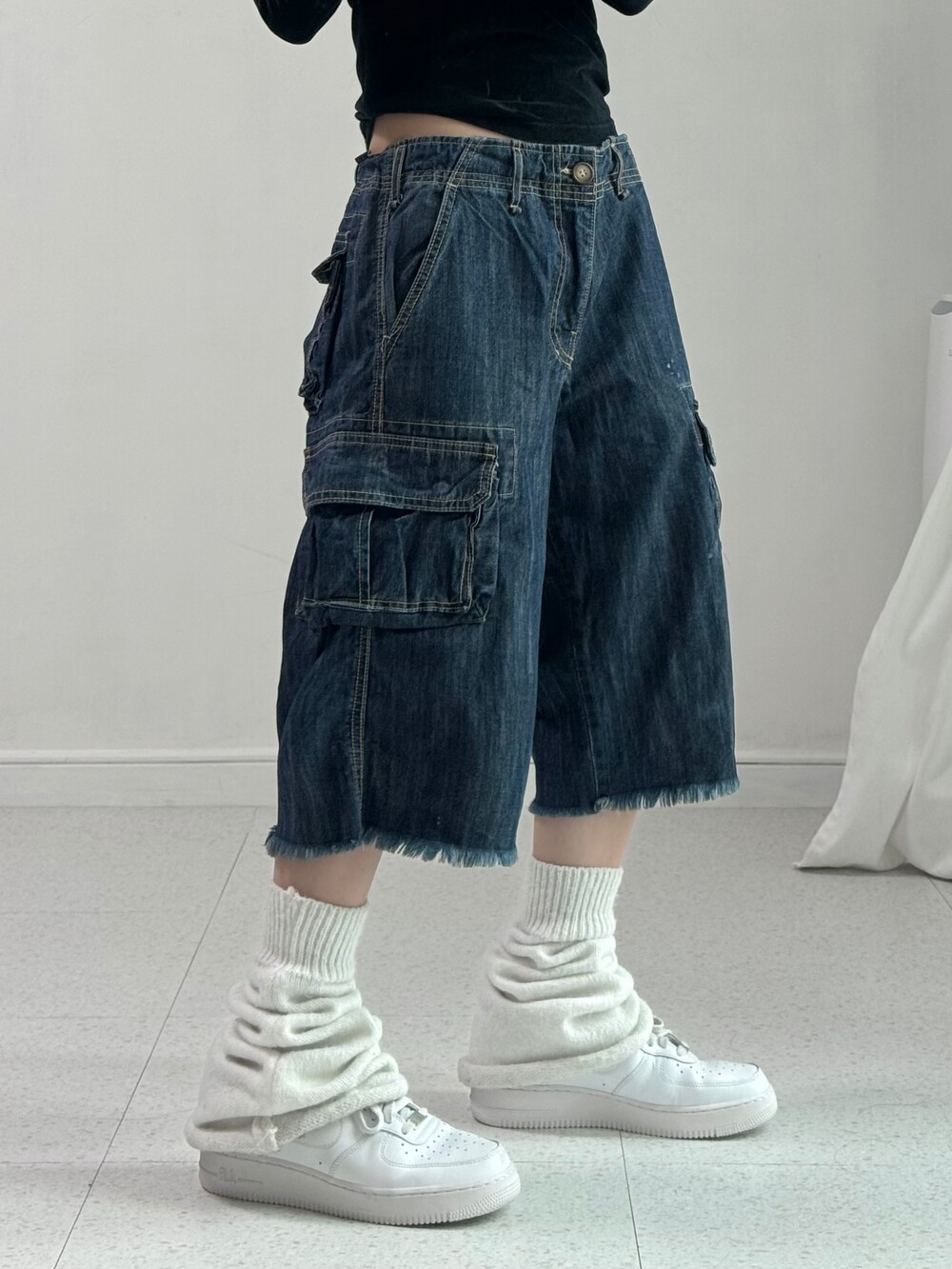 •밑단 데미지 컷팅이 매력적인 빈티지 데님 버뮤다 입니다! 와이드루즈한 핏이라 말해뭐해 핏까지 넘 예쁘답니다ㅎㅋㅋ🖤
