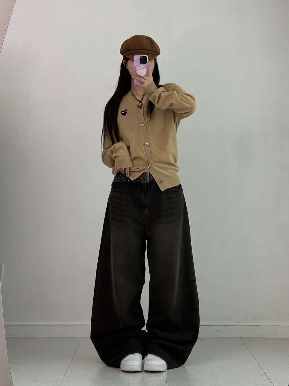 •묵직하면서 와이드한 핏에 은은한 워싱 디테일이 들어가있는 팬츠에요! 입자마자 이건 무조건 식구님들께서 좋아하시겠다 싶었던ㅎㅎ 무난한것 같고 흔하게 보일 수 있는 아이템 같지만 전혀! 입을수록 빈티지스러움이 뿜뿜하는 팬츠라구요-!