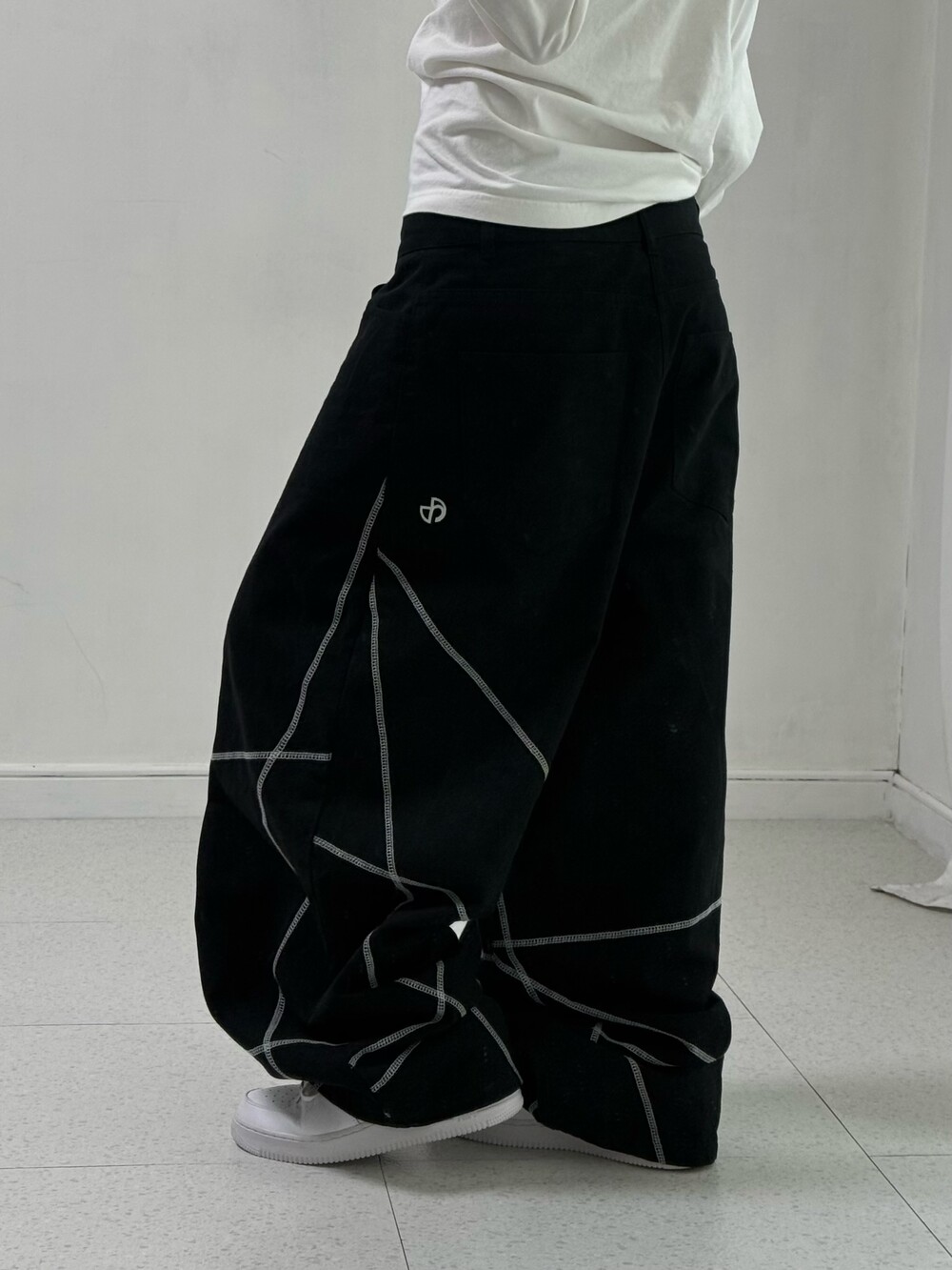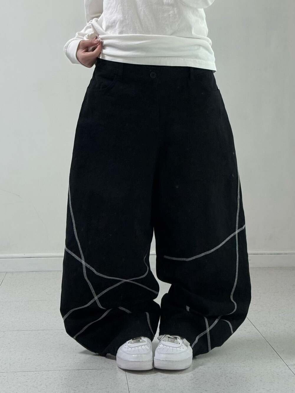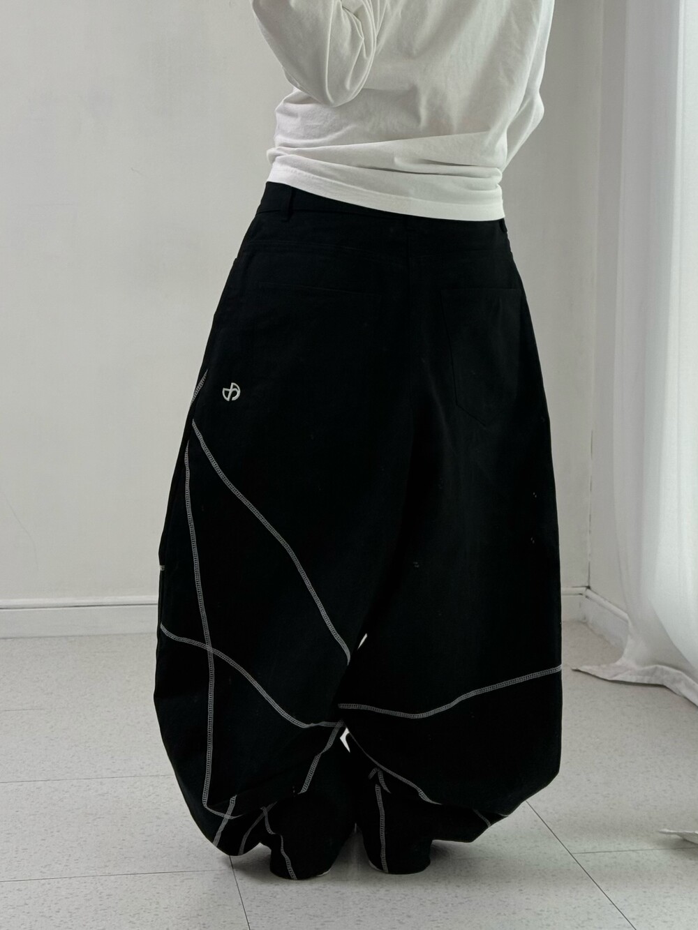 •노메뉴얼 화이트 스티치 벌룬팬츠 입니다. 가벼운 원단이지만 핏이 아방루즈해서 더 마음에 드는거 있죠>,<