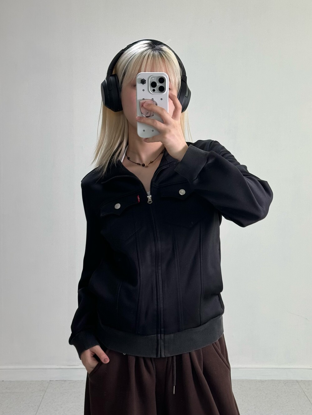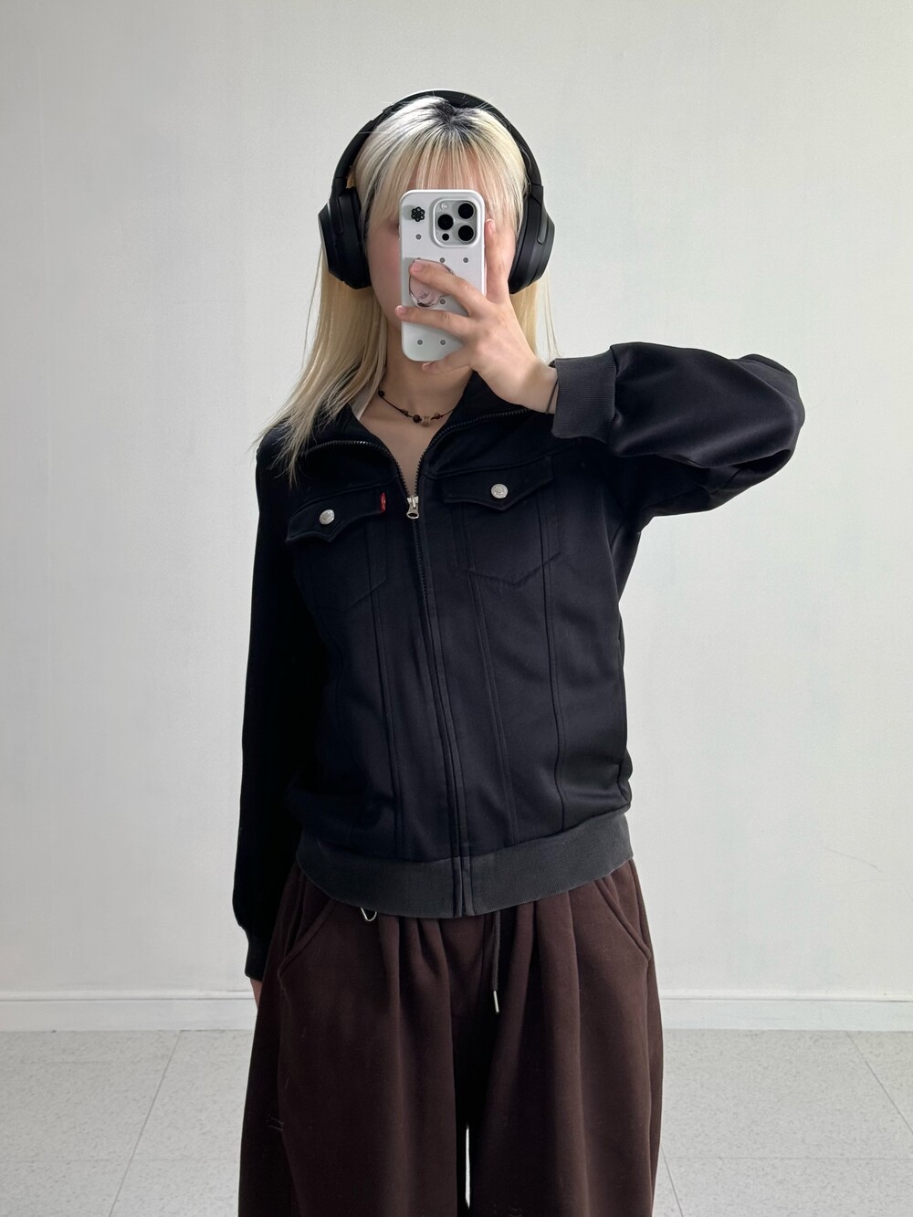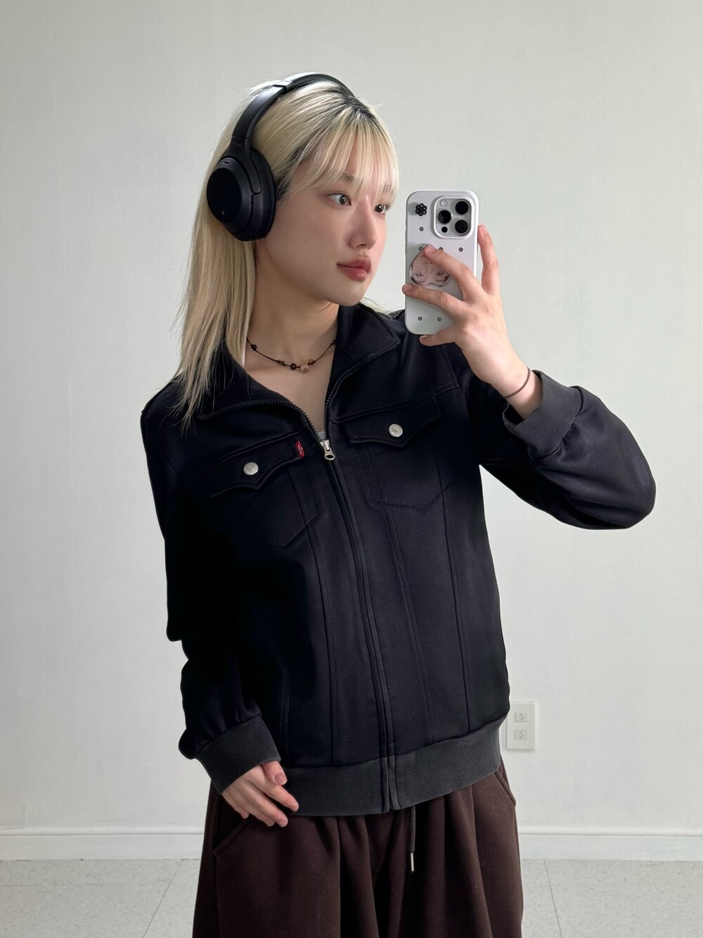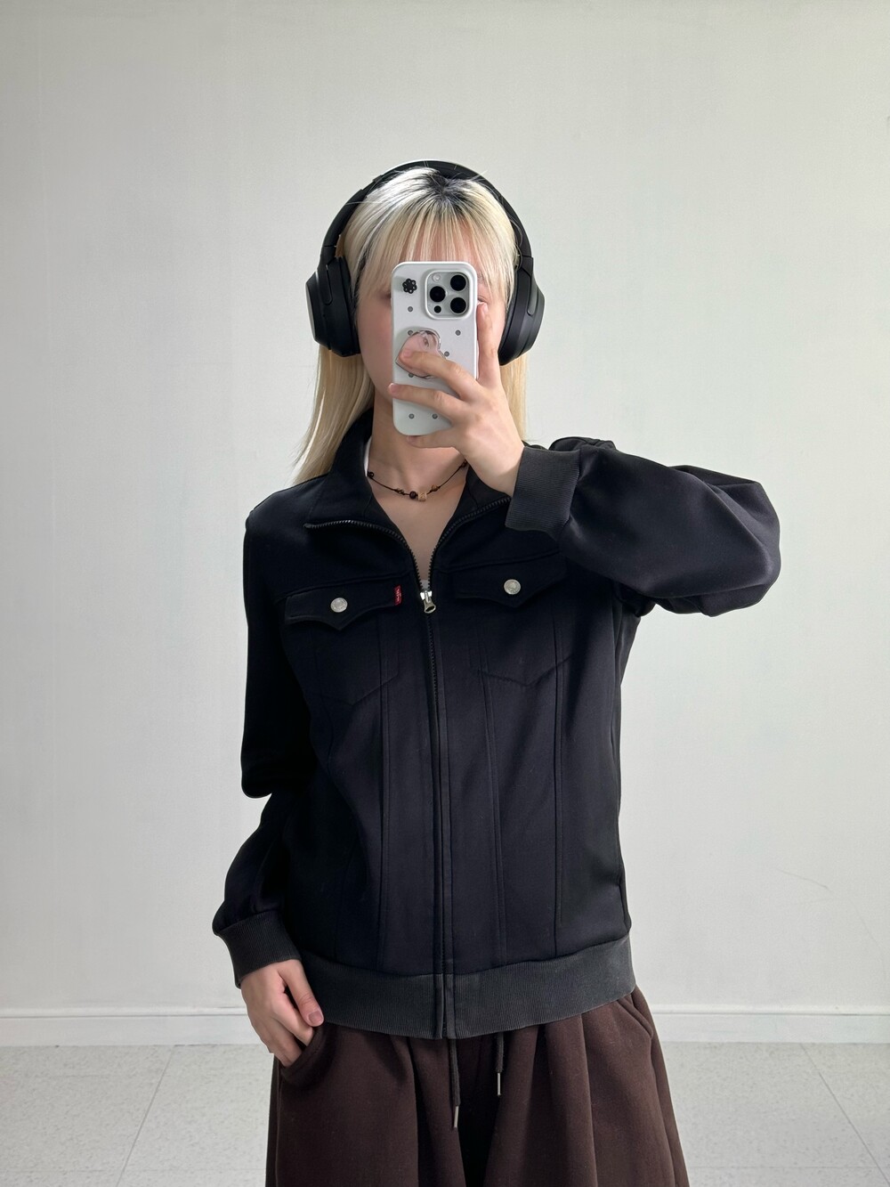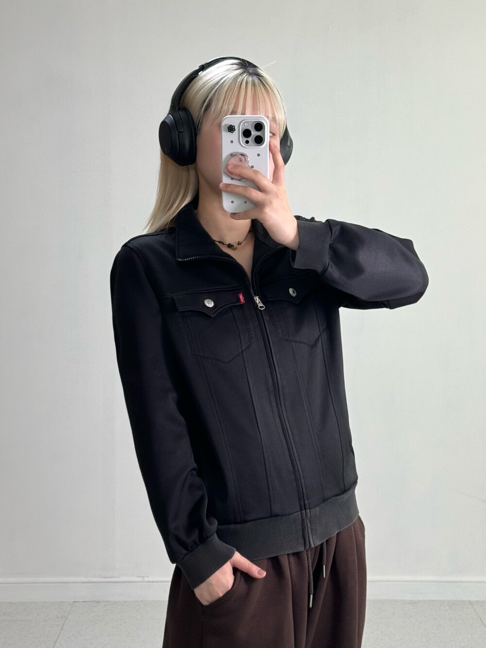 •식구님들 🖤 진짜 어쩜이리 야물딱진 집업이 있을까요..? 블랙컬러에 실버 단추 포인트가 들어가 더 세련되어 보이구 정핏+살짝의 루즈함이 들어가있는 핏감이라 제가 너무 좋아하는 스타일이에요 흑흑. 올블랙 착장으로 맞춰두 예쁠듯해요!