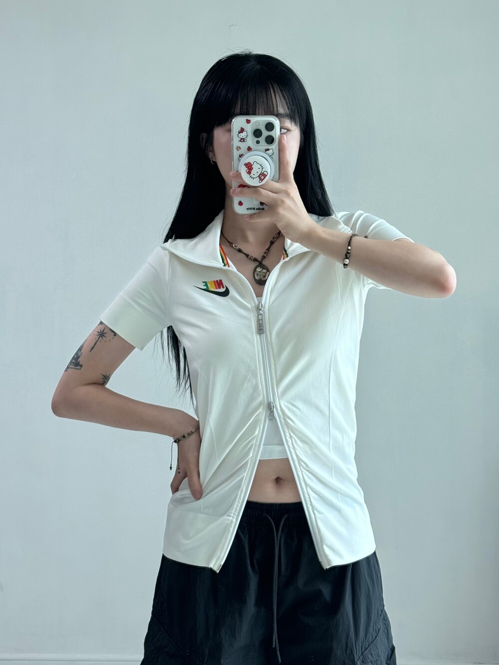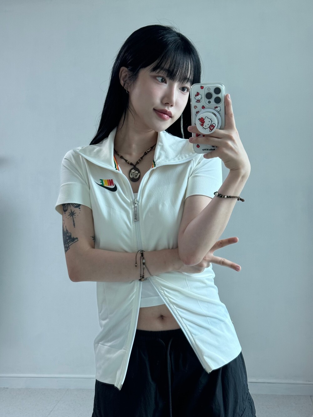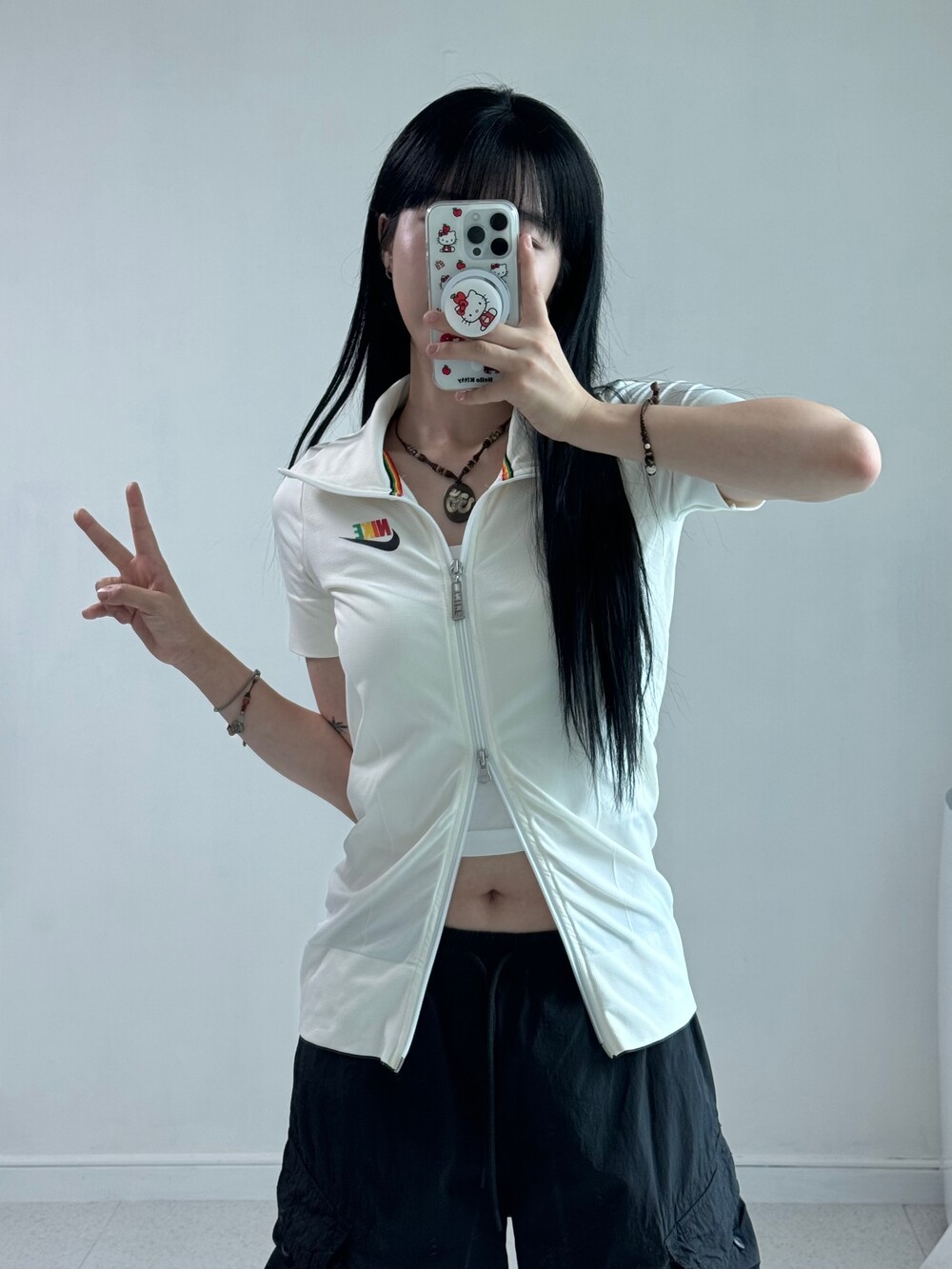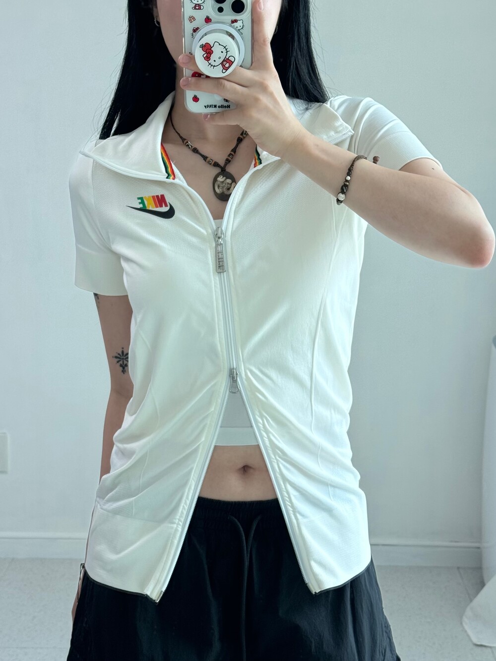 •아이보리 컬러의 나이키 투웨이 반팔 져지! 나이키 로고도 귀엽게 무지개로 뿅뿅ㅎㅎ 특히 지퍼 디테일 좀 봐주셔요..👍🏻