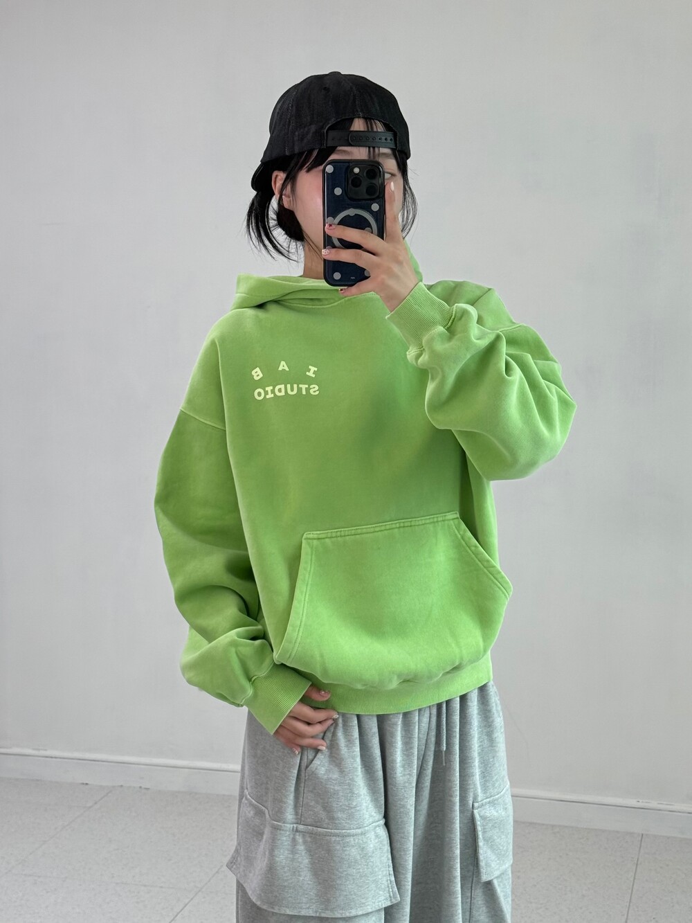 •아이앱스튜디오 피그먼트 애플그린 후드티 입니다! 색감 넘 귀엽쥬,,